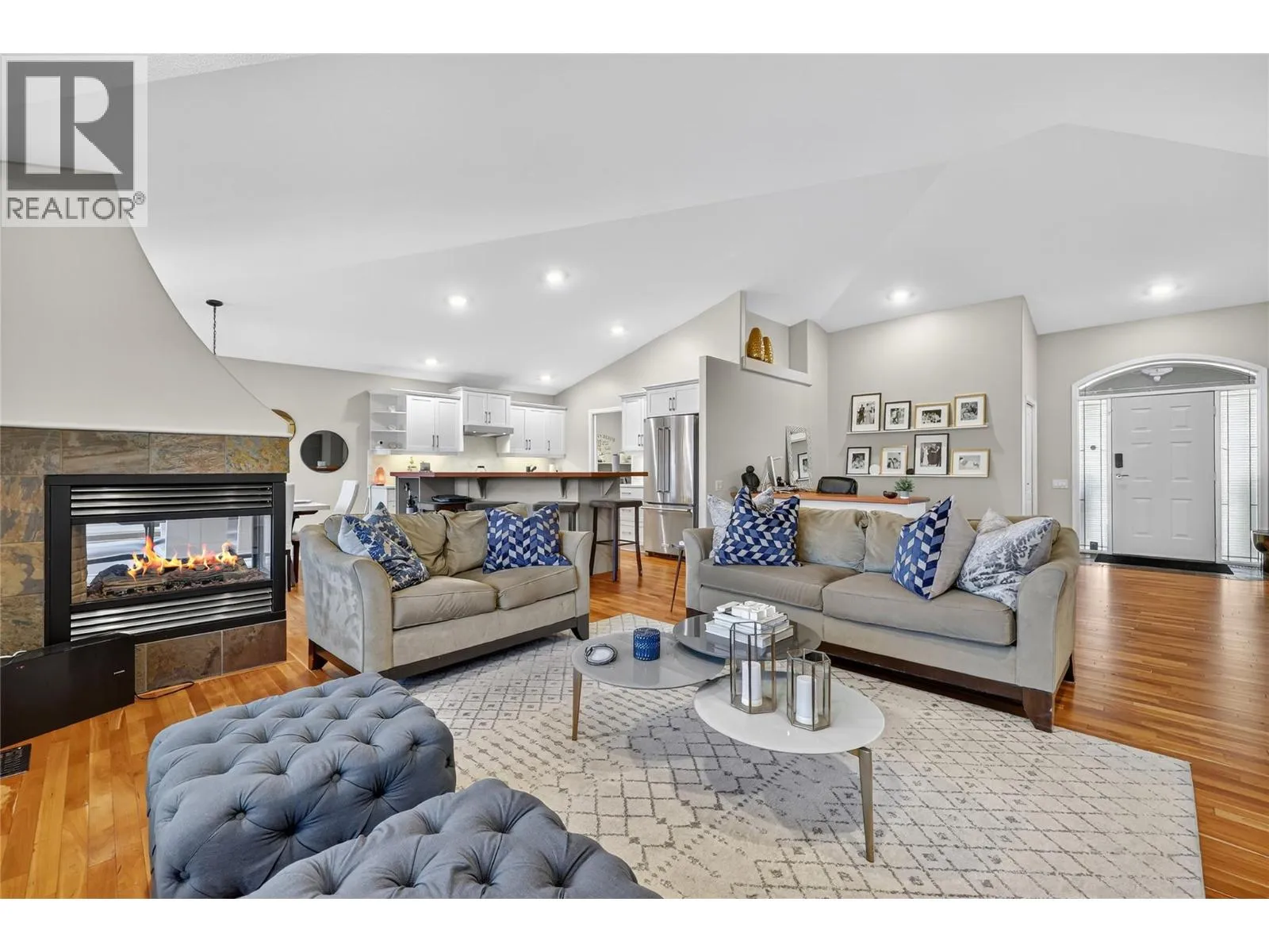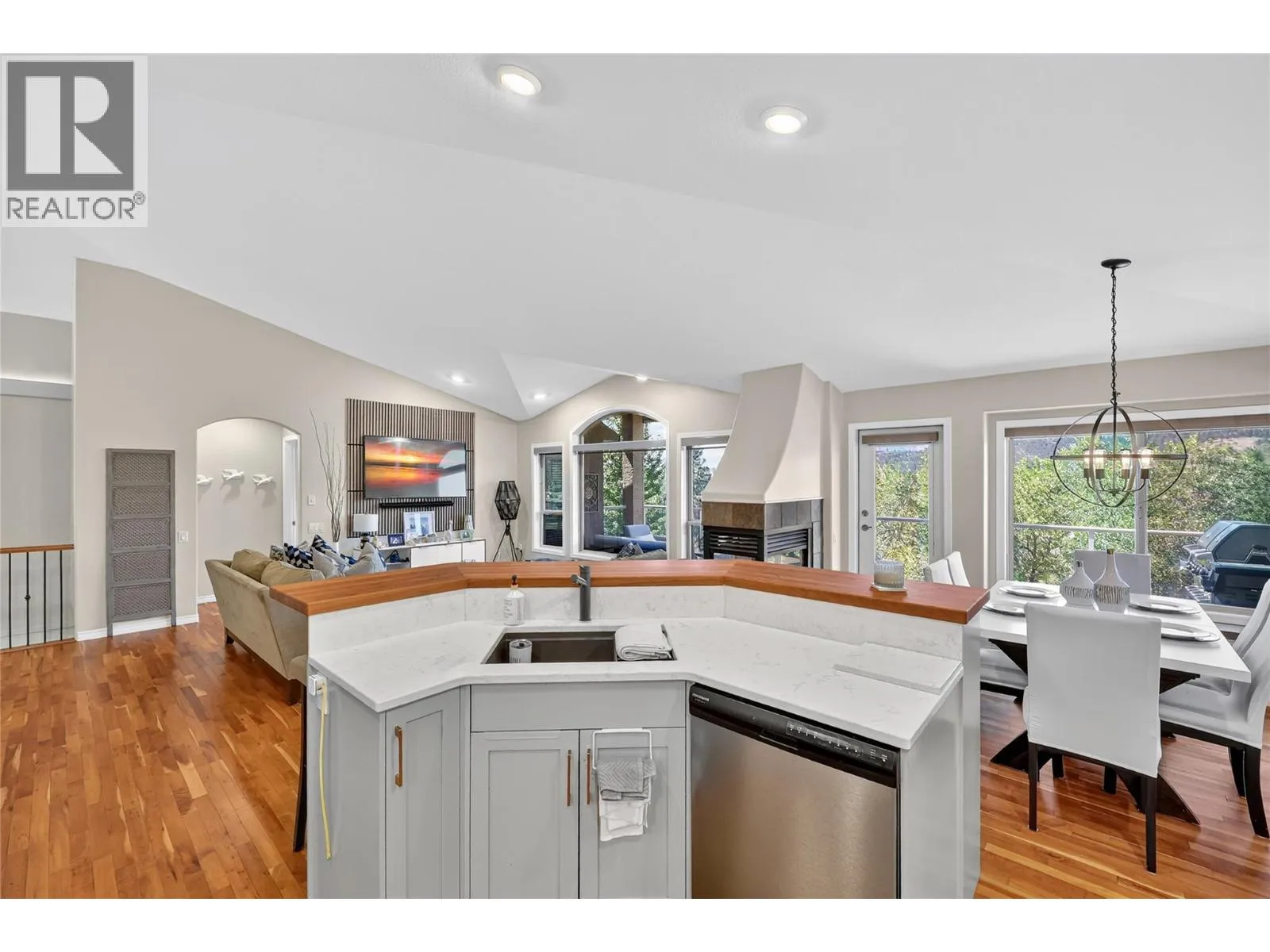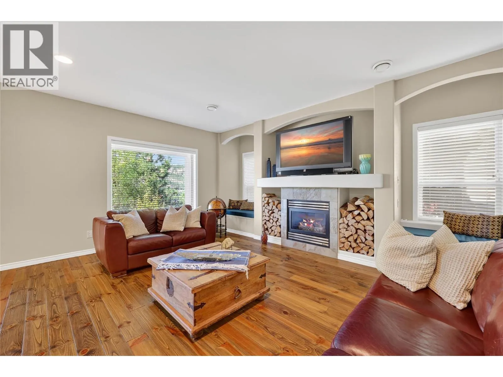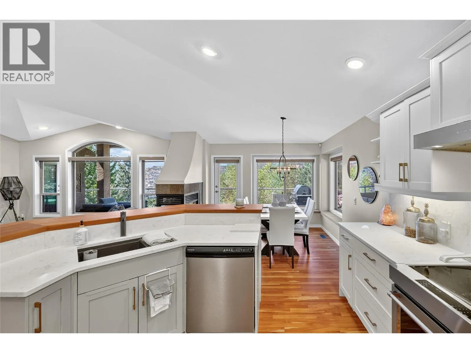 Absolutely stunning 3,200 sqft walk-out rancher on sought-after Dilworth Mountain, offering breathtaking 180° views of mountains, orchards, and Lake Okanagan. This stylish Dilworth Homes built home boasts a bright, flowing open plan with vaulted ceilings, large windows, and top-end finishes. The main level features 3 bedrooms, a 3 sided gas fireplaces, and a spacious kitchen with stainless steel appliances and quartz countertops. The lower level offers 2 additional bedrooms, a wet bar, a gas fireplace, and a huge rec roomâperfect for entertaining. Enjoy the outdoors with a large covered patio with sunshade, a covered deck, and a private, zeroscaped backyard with a gas fire-pit. Double garage with oversized driveway and extra parking pad. Natural gas BBQ hookup. Close to Lake Okanagan, downtown Kelowna, beaches, golf, and shoppingâthis home delivers luxury, comfort, and location in one perfect package. (id:27476)