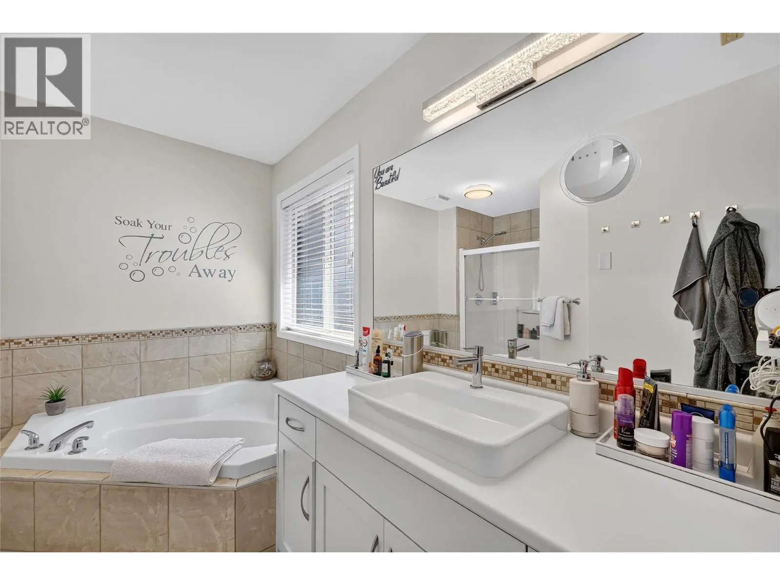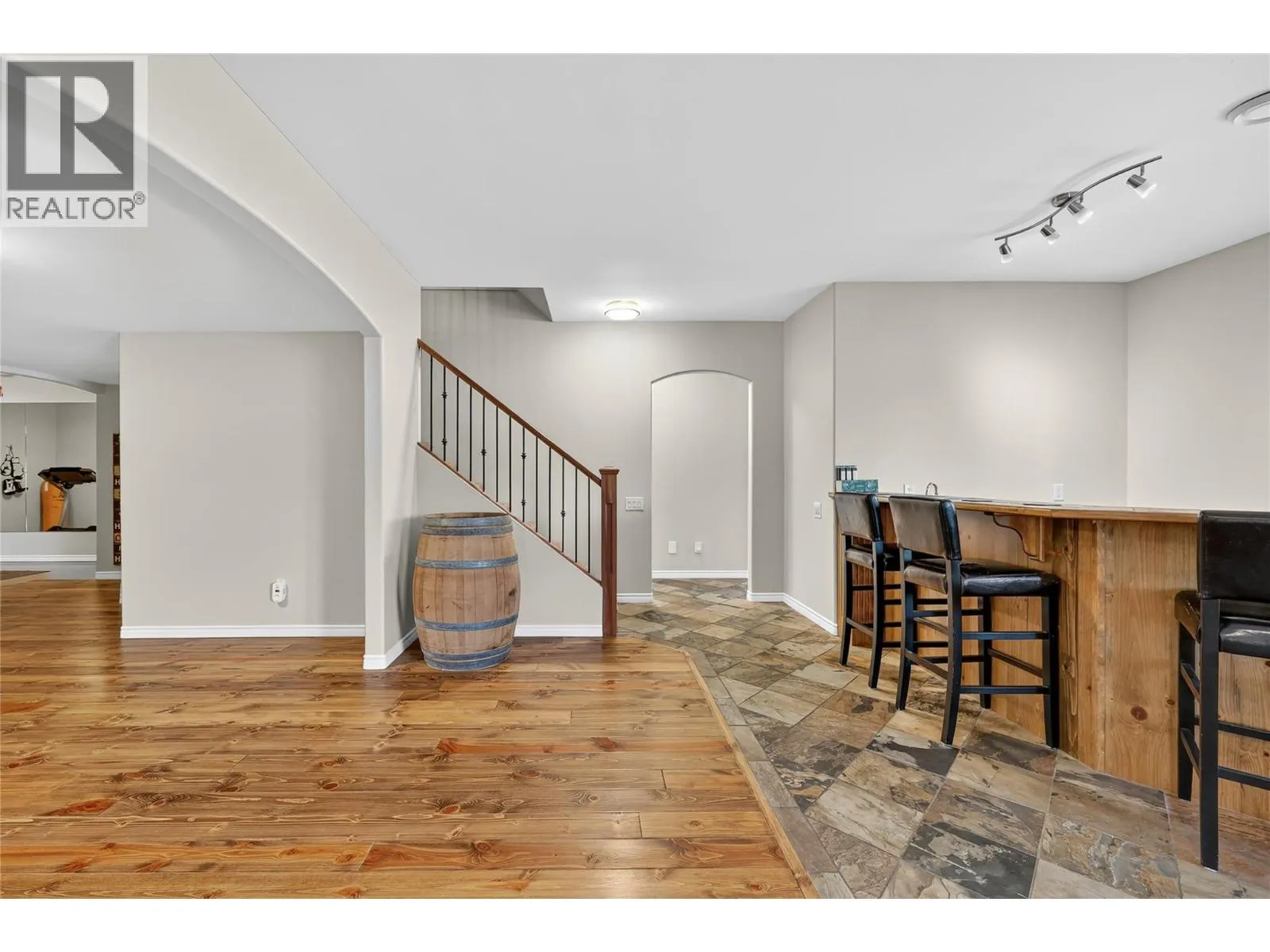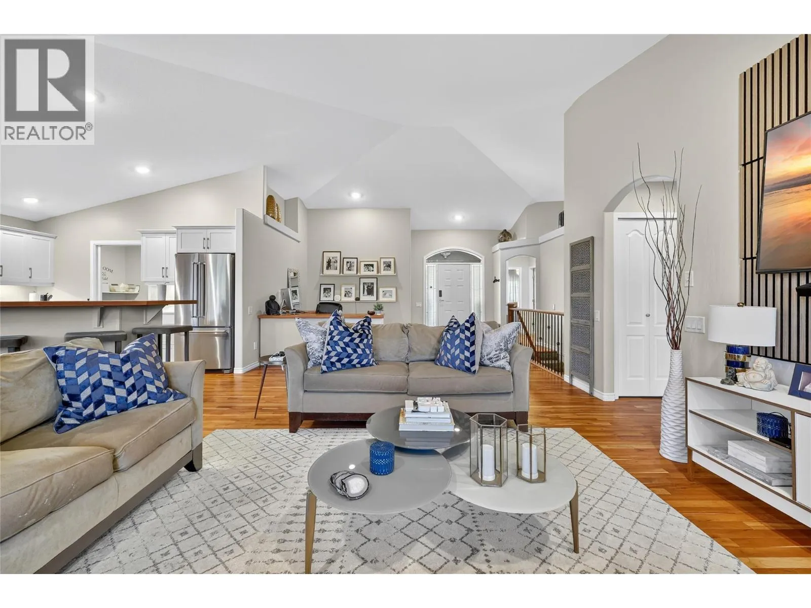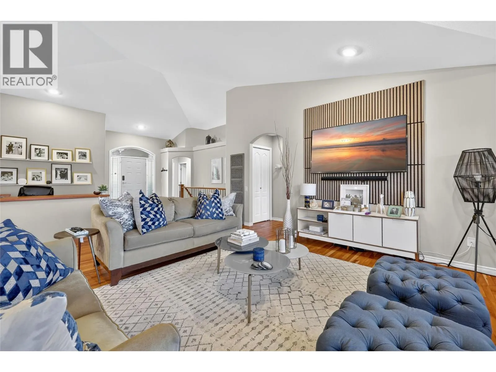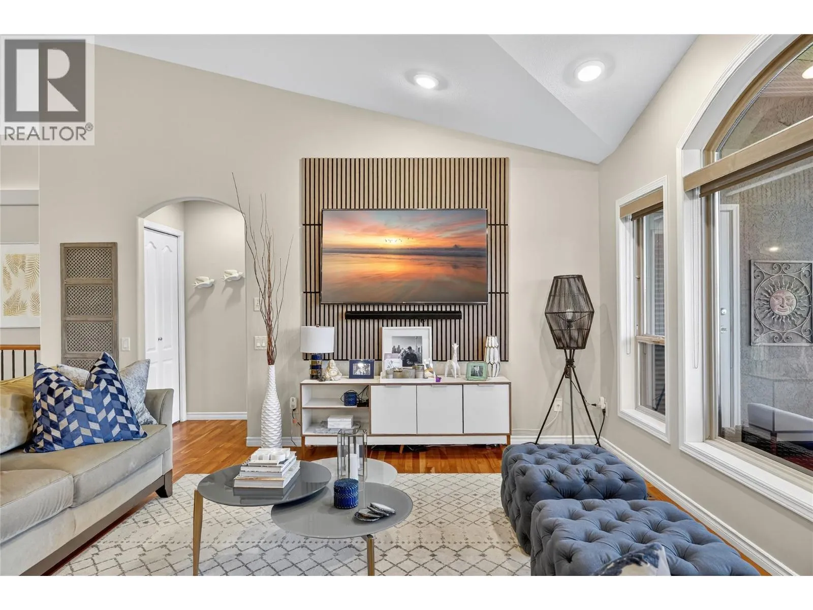 Absolutely stunning 3,200 sqft walk-out rancher on sought-after Dilworth Mountain, offering breathtaking 180° views of mountains, orchards, and Lake Okanagan. This stylish Dilworth Homes built home boasts a bright, flowing open plan with vaulted ceilings, large windows, and top-end finishes. The main level features 3 bedrooms, a 3 sided gas fireplaces, and a spacious kitchen with stainless steel appliances and quartz countertops. The lower level offers 2 additional bedrooms, a wet bar, a gas fireplace, and a huge rec roomâperfect for entertaining. Enjoy the outdoors with a large covered patio with sunshade, a covered deck, and a private, zeroscaped backyard with a gas fire-pit. Double garage with oversized driveway and extra parking pad. Natural gas BBQ hookup. Close to Lake Okanagan, downtown Kelowna, beaches, golf, and shoppingâthis home delivers luxury, comfort, and location in one perfect package. (id:27476)