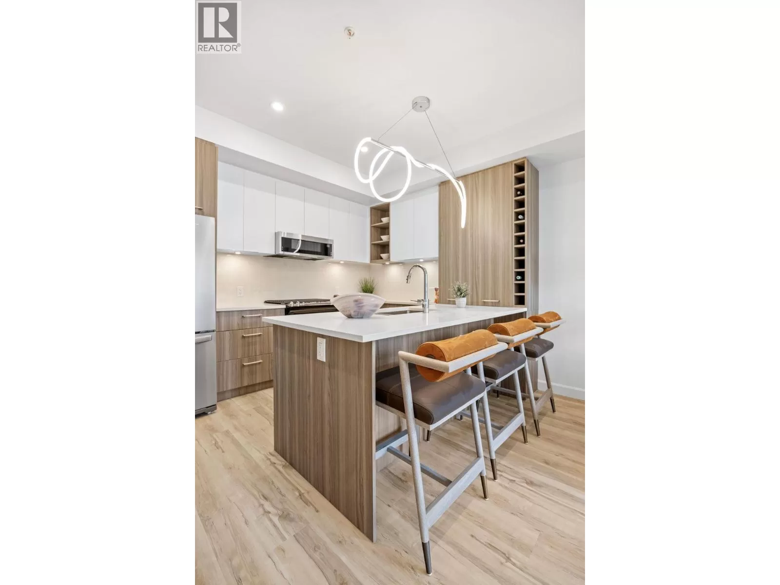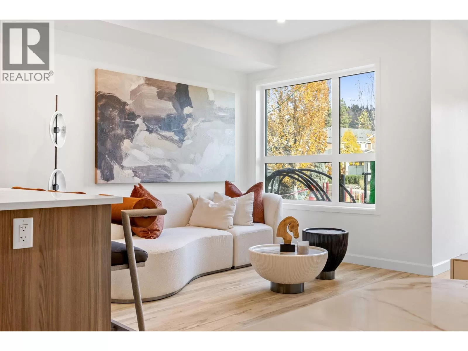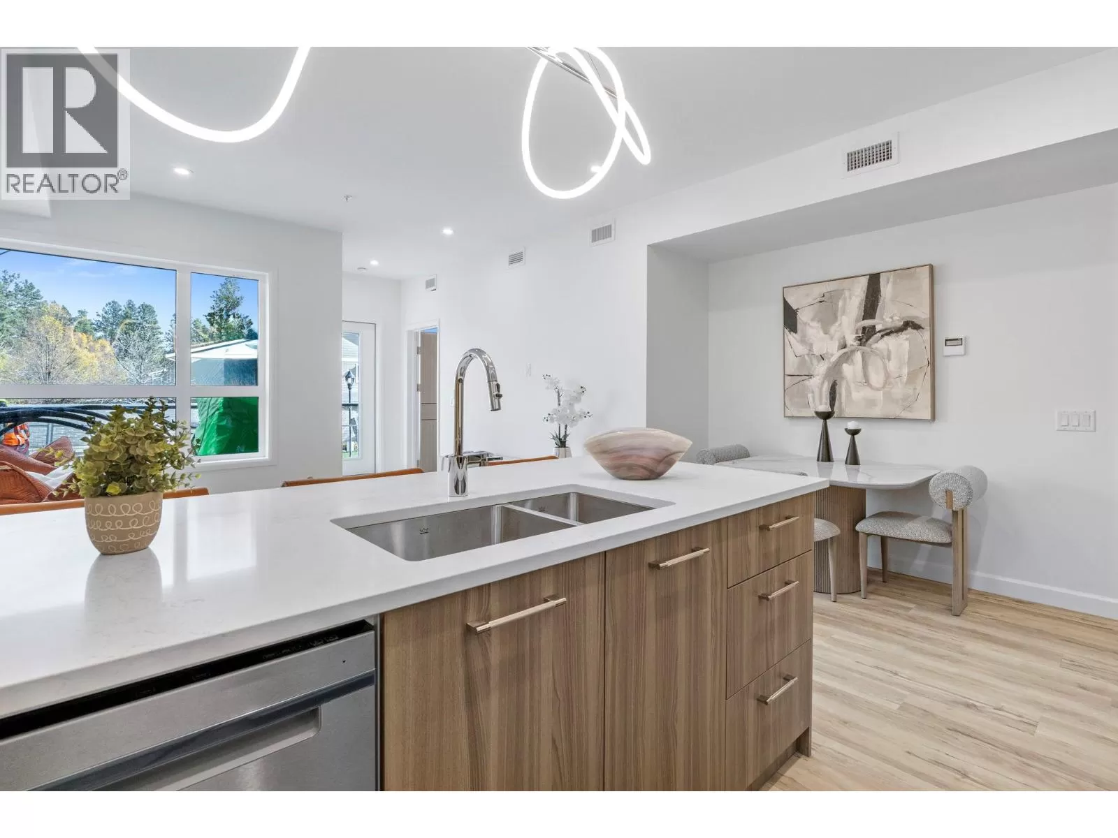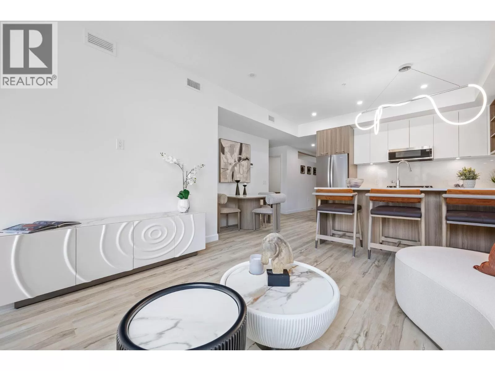 Welcome to the Summit at Eminence at Knox Mountain! The striking natural backdrop of Knox Mountain is the inspiration for Eminenceâs upscale, modern mountain architecture and prominent streetscape, working in harmony with the prestigious, well-established neighbouring communities, Highpointe and Magic Estates. This charming well appointed two bedroom, two bathroom and den, offers 987 square feet of modern living space. This beautifully designed home features high-end finishes, including sleek stainless steel appliances and a stunning quartz backsplash that adds both style and durability to the kitchen. The elegant two-toned soft-close cabinets provide ample storage while maintaining a sophisticated, contemporary aesthetic. Eminence is rich in resort inspired amenities which include The Lodge an exclusive owners lounge, outdoor pool and hot tub, fitness centre, off leash dog park and direct access to Knox Mountain's hiking trail system. Whether youâre cooking, relaxing, or entertaining, this home offers the perfect balance of comfort and functionality. Donât miss out on this ideal blend of luxury and practicality in a perfect location! Estimated completion September 2025. (id:27476)