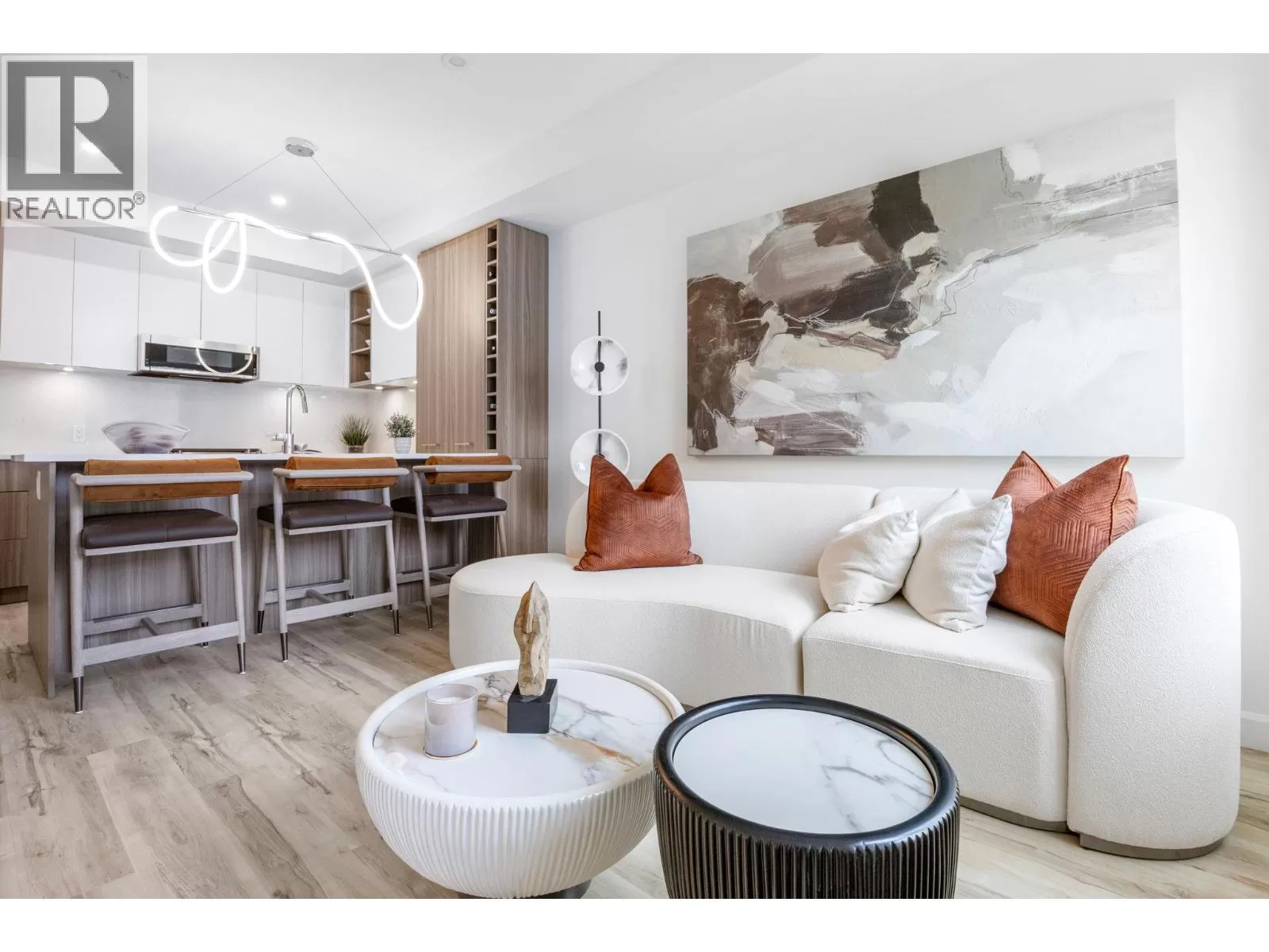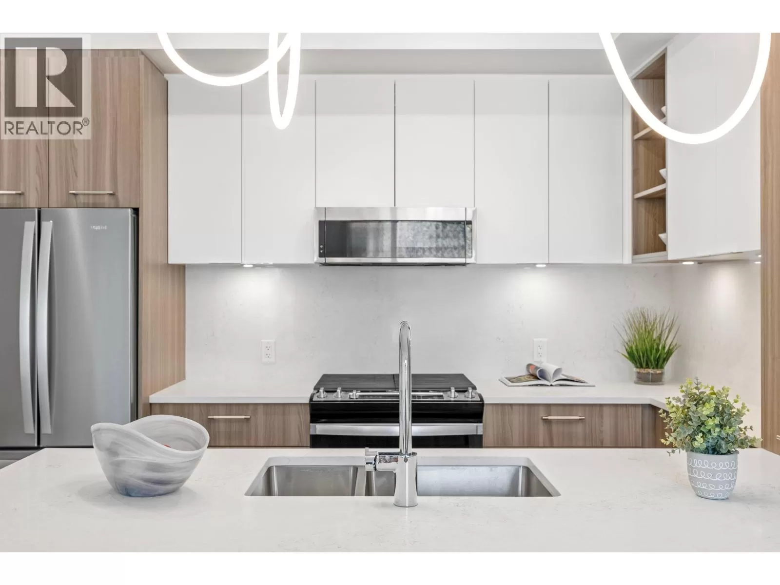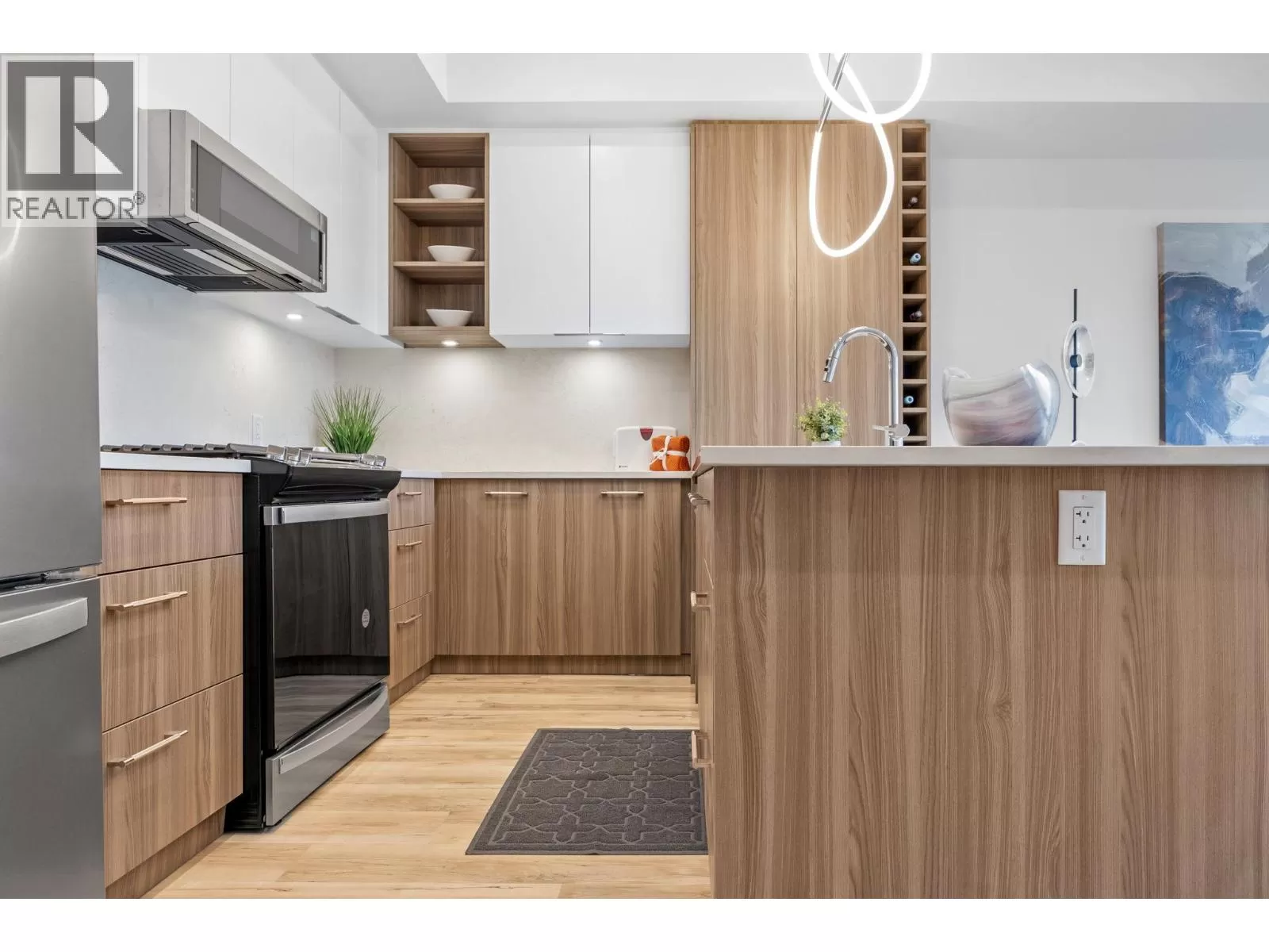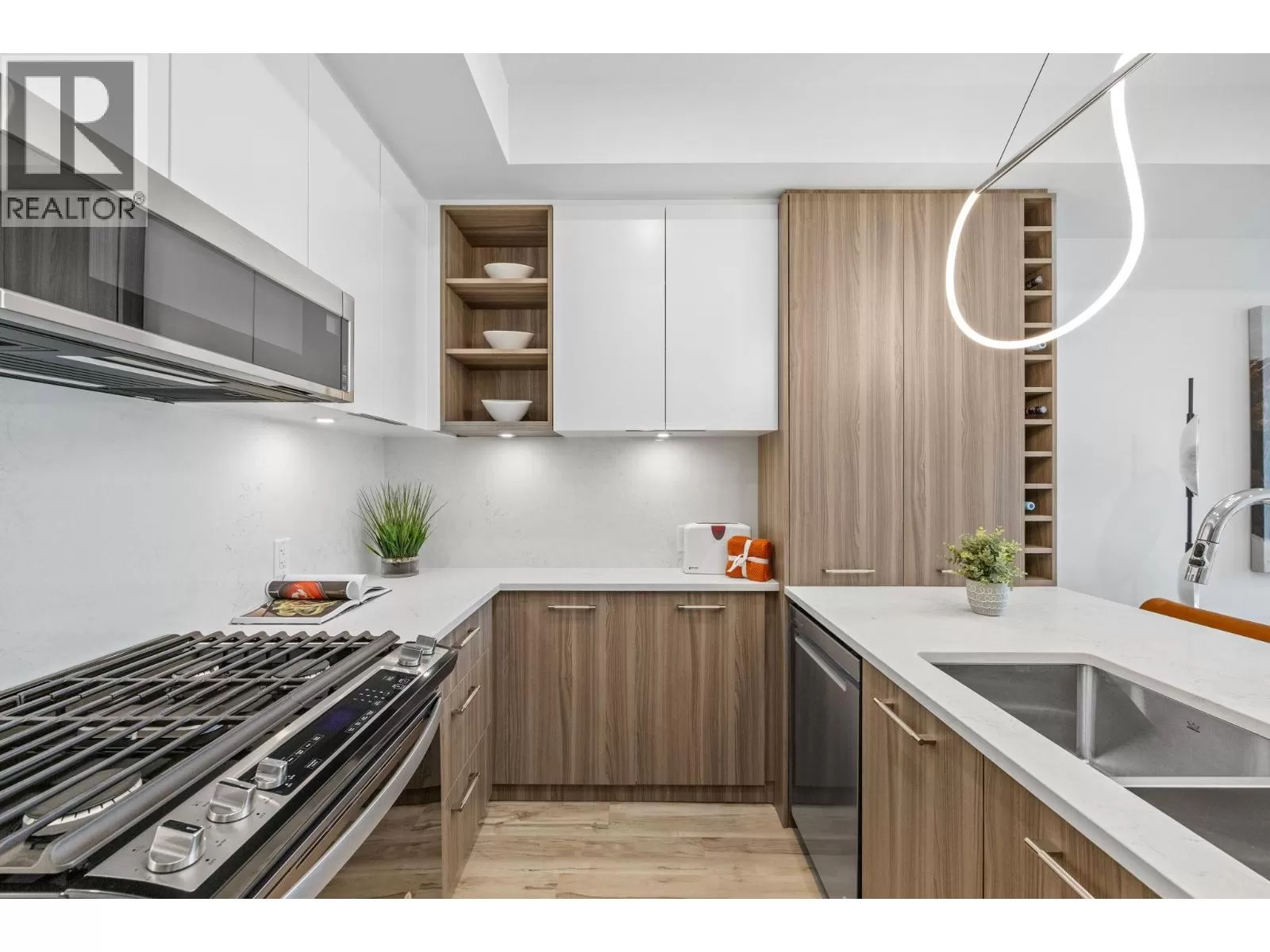Welcome to the Summit at Eminence at Knox Mountain! The striking natural backdrop of Knox Mountain is the inspiration for Eminenceâs upscale, modern mountain architecture and prominent streetscape, working in harmony with the prestigious, well-established neighbouring communities, Highpointe and Magic Estates. This charming well appointed two bedroom, two bathroom and den, offers 987 square feet of modern living space. This beautifully designed home features high-end finishes, including sleek stainless steel appliances and a stunning quartz backsplash that adds both style and durability to the kitchen. The elegant two-toned soft-close cabinets provide ample storage while maintaining a sophisticated, contemporary aesthetic. Eminence is rich in resort inspired amenities which include The Lodge an exclusive owners lounge, outdoor pool and hot tub, fitness centre, off leash dog park and direct access to Knox Mountain's hiking trail system. Whether youâre cooking, relaxing, or entertaining, this home offers the perfect balance of comfort and functionality. Donât miss out on this ideal blend of luxury and practicality in a perfect location! Estimated completion September 2025. (id:27476)