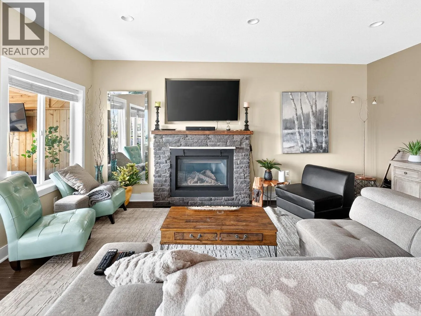 Situated in the sought-after Black Mountain community, this beautifully crafted four bedroom, four bathroom rancher walkout captures sweeping valley and mountain views while offering the convenience of a legal suite. The main level is bright and inviting with an open concept design that blends a kitchen with granite countertops and SS appliances, a spacious dining area, and a comfortable living room ideal for gatherings. The primary suite is a private retreat with a walk-in closet and spa inspired ensuite. Also, on the main is a second bedroom, a large covered patio, full bath, laundry, and a heated garage. The walkout lower level features nearly nine foot ceilings, and a well designed legal suite, complete with its own entrance, laundry, private covered patio and mountain views. Additional highlights include updated flooring, ceiling speakers, Ethernet connectivity, abundant storage throughout, and a professionally zero scaped yard designed for low maintenance living. Just minutes from Black Mountain Golf Club, parks, trails, shopping, and Kelowna International Airport, this home offers the perfect balance of comfort, convenience, and natural beauty. (id:27476)