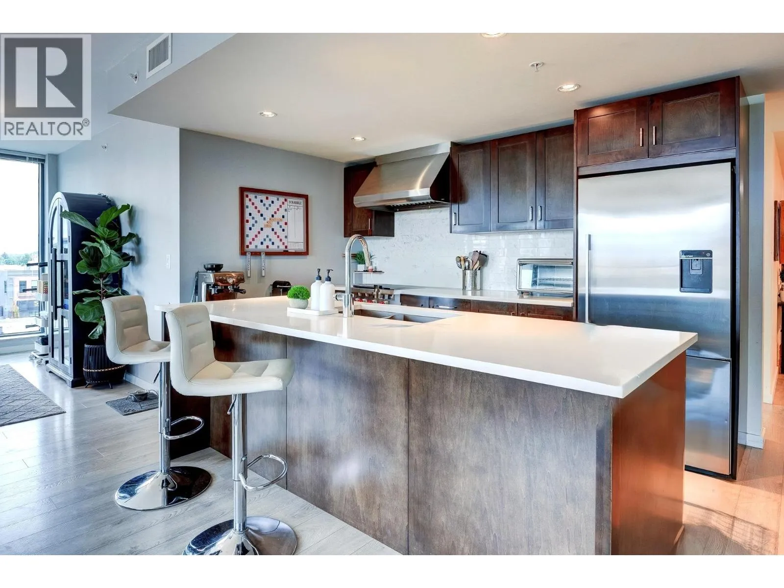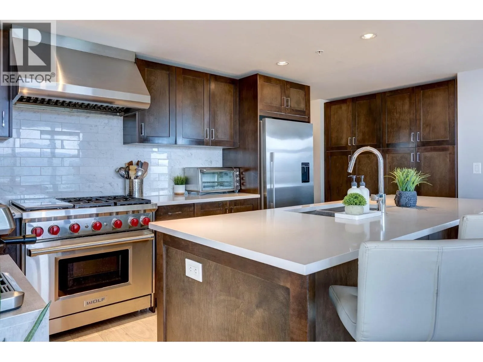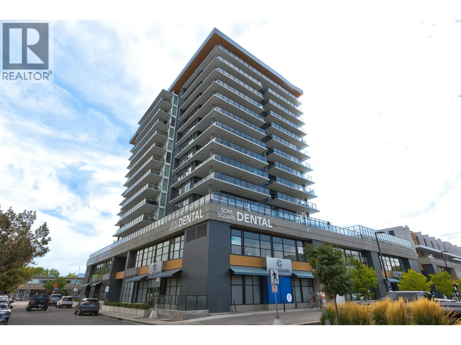 Welcome to luxury living in the heart of Pandosy Village! This beautifully designed 3 bedroom + den condo in the prestigious Sopa Square offers stunning panoramic views of the city, Okanagan Lake, and surrounding mountains. The open concept floor plan boasts a bright and airy living space with walls of floor to ceilings windows. The high end kitchen seamlessly connects to the living room and dining room. With access directly from the living area, enjoy morning coffee or evening sunsets on the spacious wraparound deck, perfect for entertaining or relaxing. High end finishes are used throughout, seen in the kitchen and bathrooms where beautiful dark wood is matched with light stone countertops and stainless steel appliances. The airy interior and stylish mix of natural textures make this condo one of a kind. Secure parking, a gym, meeting room, terrace, pool and hot tub round off this great property. Donât miss the chance to live in one of Kelownaâs most desirable areas only steps from the best beaches, shops, restaurants, and close to many schools. (id:27476)