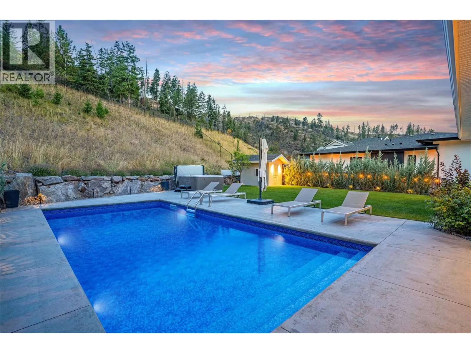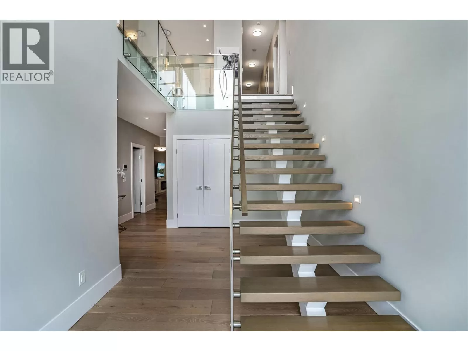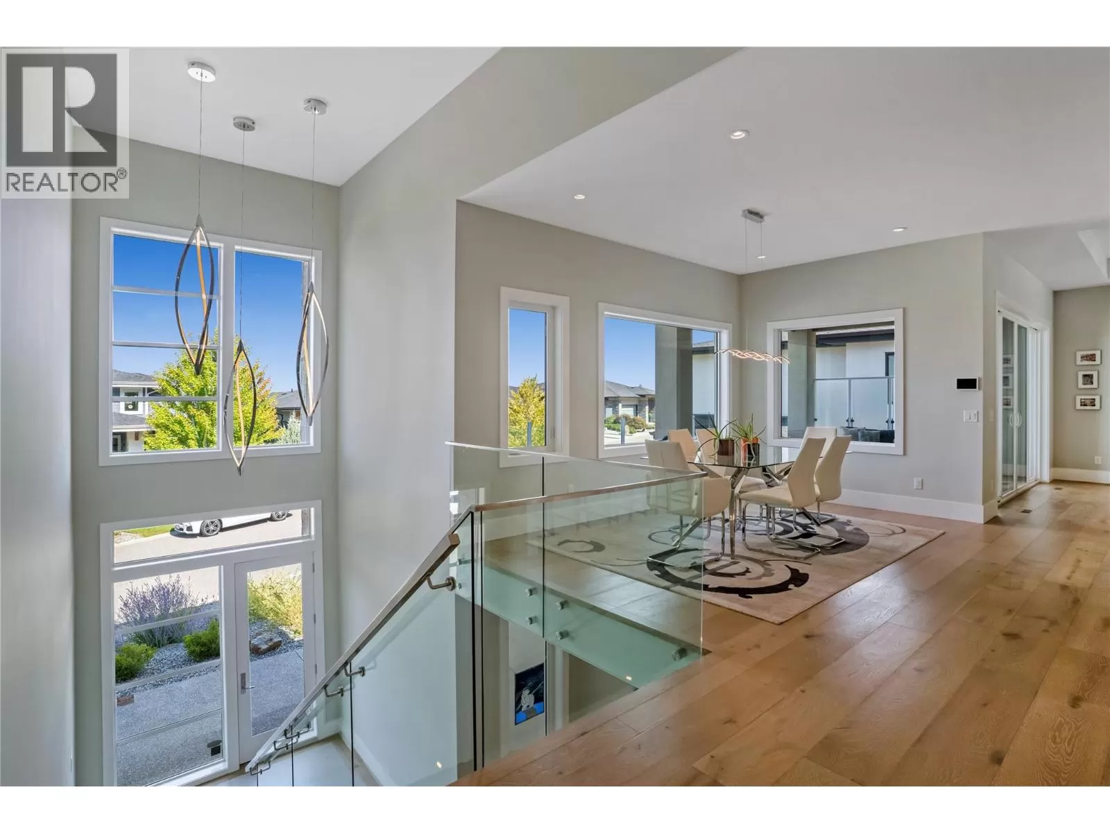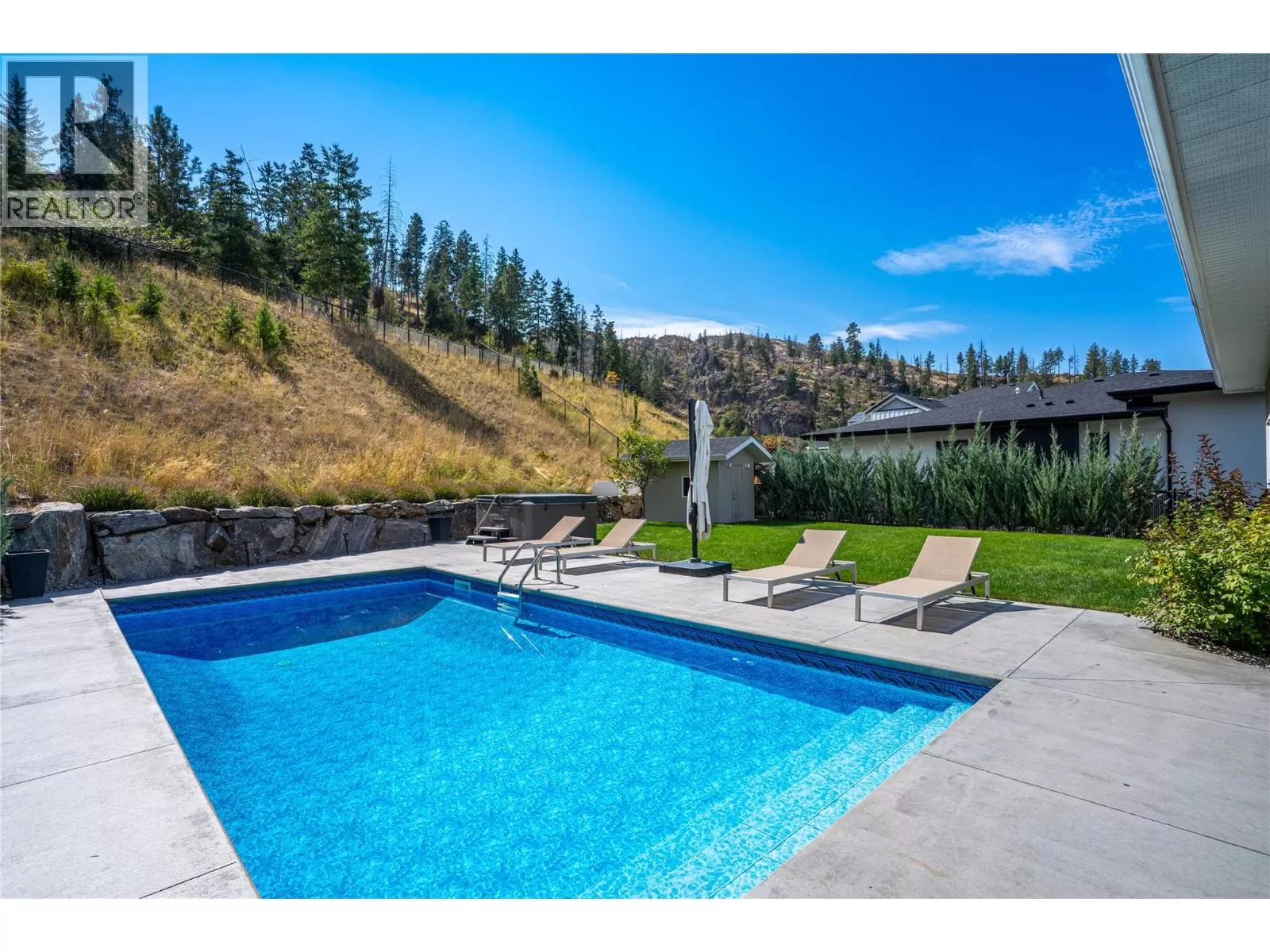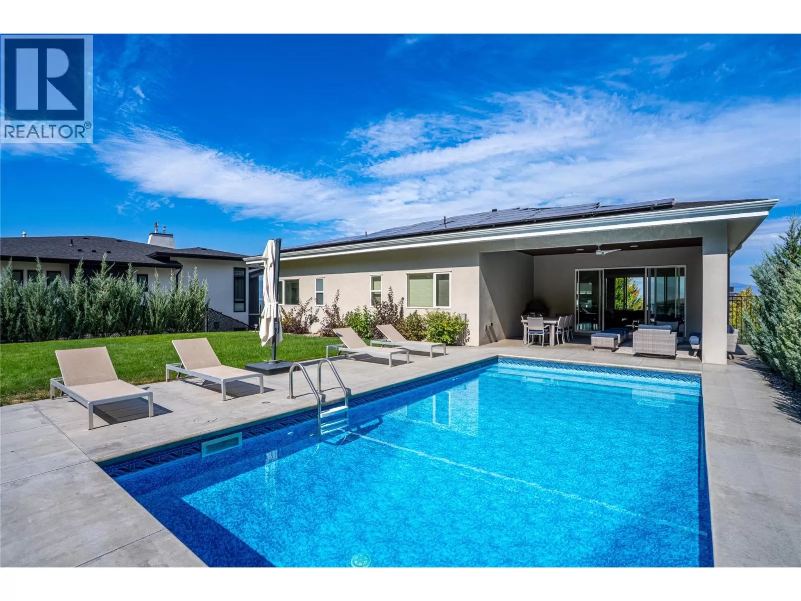 Discover custom-built luxury in this stunning 5-bedroom, 5-bath home featuring a bright, legal 1-bedroom ground-level suite. This high-efficiency smart home boasts soaring vaulted ceilings, a dramatic floating staircase, and rich wide plank wood floors. The open-concept main floor centers around a chefâs kitchen with quartz countertops, custom cabinetry, and a hidden walk-in butlerâs pantry. Flow effortlessly into the spacious dining and living areas warmed by a gas fireplace, then step out onto the front deck to enjoy Okanagan Lake and mountain views. The private backyard is an entertainerâs dream with a heated saltwater pool, hot tub, and ample space to relax or host gatherings. The main-level master suite offers a spa-like retreat with a soaker tub, glass-enclosed shower, and double floating vanity with undermount lighting. Two additional bedrooms share a stylish Jack & Jill bath, with one bedroom featuring a queen Murphy bedâideal for guests or a home office. A large laundry room with abundant counters and cabinetry enhances daily functionality. The lower level features a generous rec room with an electric fireplace, wet bar, guest bedroom, and full bath. The oversized three-car garage easily fits a boat, a car, and plenty of toys. Exceptional millwork, designer fixtures, and quality finishes elevate every room. Enjoy close proximity to top schools, parks, dining, and Okanaganâs renowned wineries. Luxury, comfort, and thoughtful design converge in this remarkable home. (id:27476)