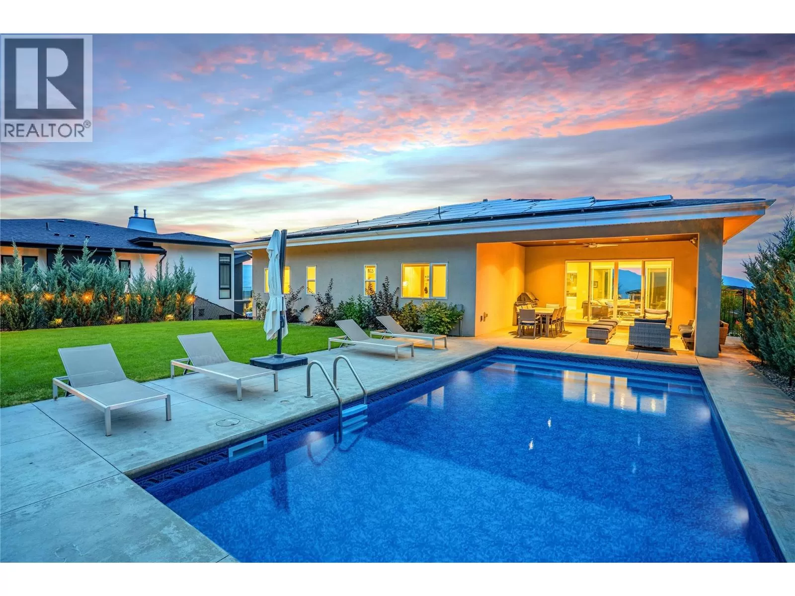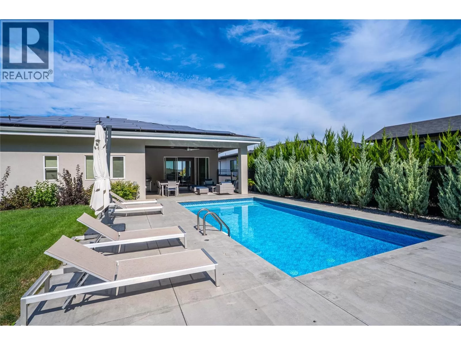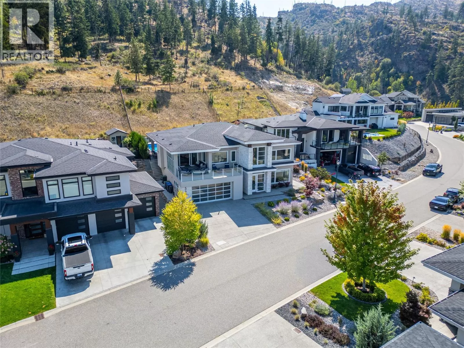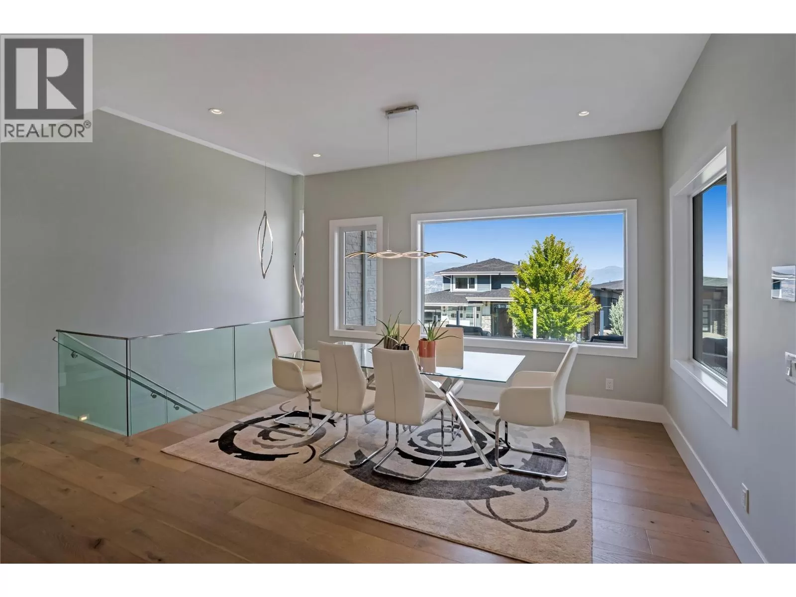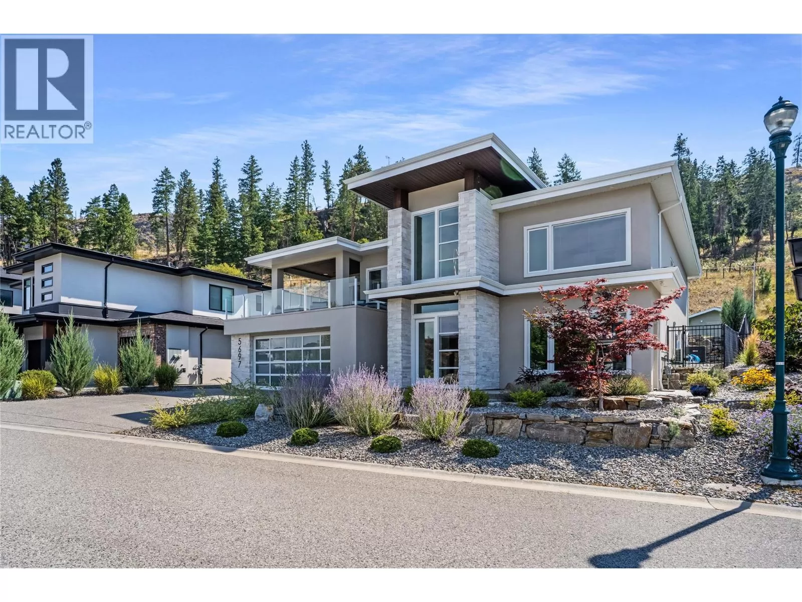 Discover custom-built luxury in this stunning 5-bedroom, 5-bath home featuring a bright, legal 1-bedroom ground-level suite. This high-efficiency smart home boasts soaring vaulted ceilings, a dramatic floating staircase, and rich wide plank wood floors. The open-concept main floor centers around a chefâs kitchen with quartz countertops, custom cabinetry, and a hidden walk-in butlerâs pantry. Flow effortlessly into the spacious dining and living areas warmed by a gas fireplace, then step out onto the front deck to enjoy Okanagan Lake and mountain views. The private backyard is an entertainerâs dream with a heated saltwater pool, hot tub, and ample space to relax or host gatherings. The main-level master suite offers a spa-like retreat with a soaker tub, glass-enclosed shower, and double floating vanity with undermount lighting. Two additional bedrooms share a stylish Jack & Jill bath, with one bedroom featuring a queen Murphy bedâideal for guests or a home office. A large laundry room with abundant counters and cabinetry enhances daily functionality. The lower level features a generous rec room with an electric fireplace, wet bar, guest bedroom, and full bath. The oversized three-car garage easily fits a boat, a car, and plenty of toys. Exceptional millwork, designer fixtures, and quality finishes elevate every room. Enjoy close proximity to top schools, parks, dining, and Okanaganâs renowned wineries. Luxury, comfort, and thoughtful design converge in this remarkable home. (id:27476)