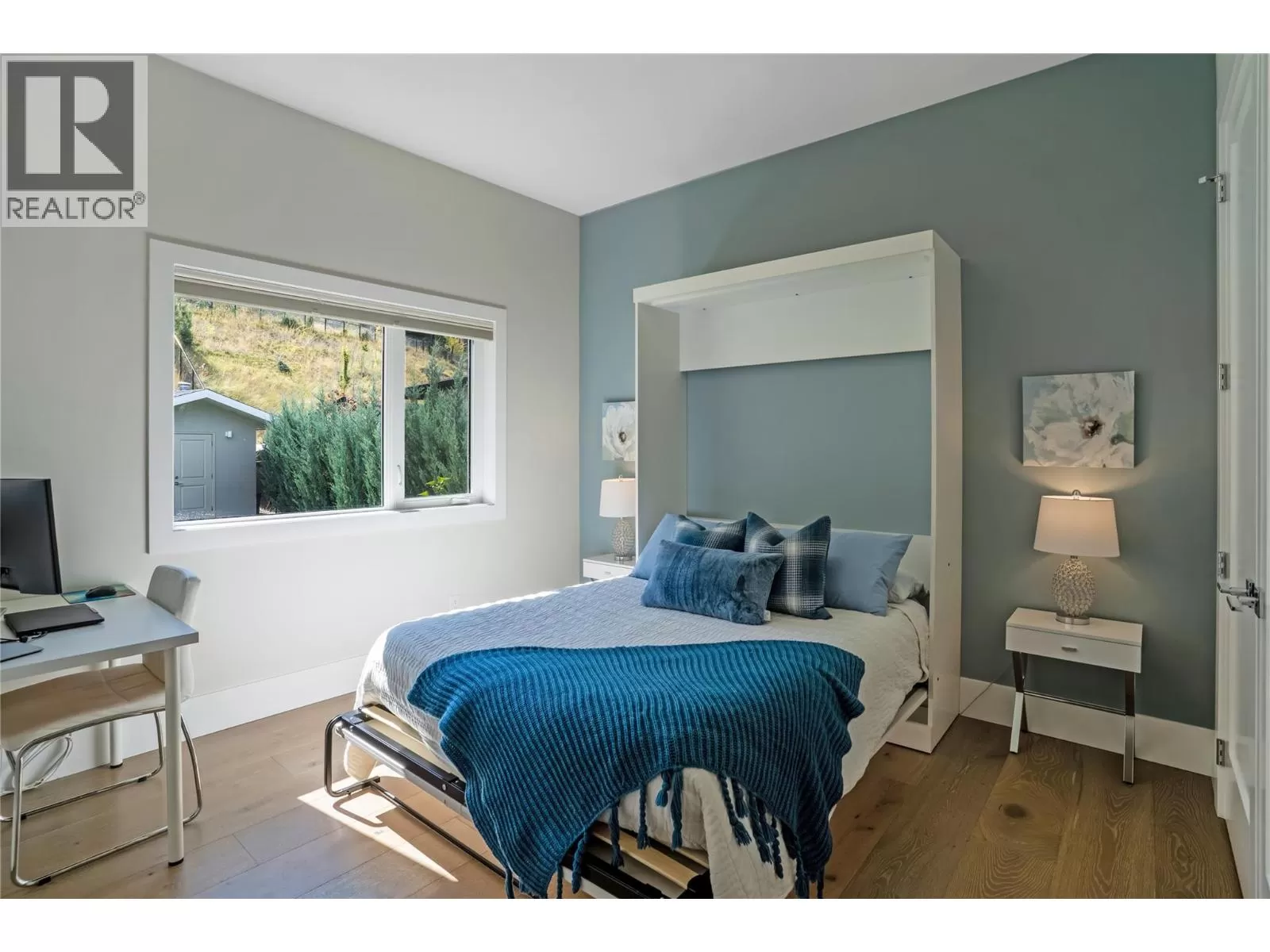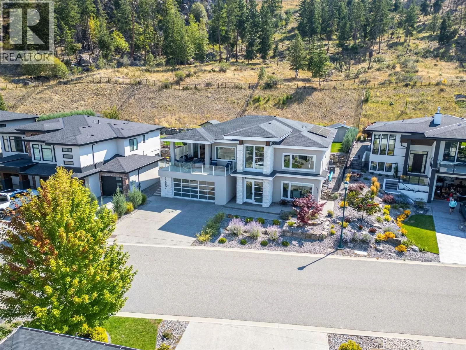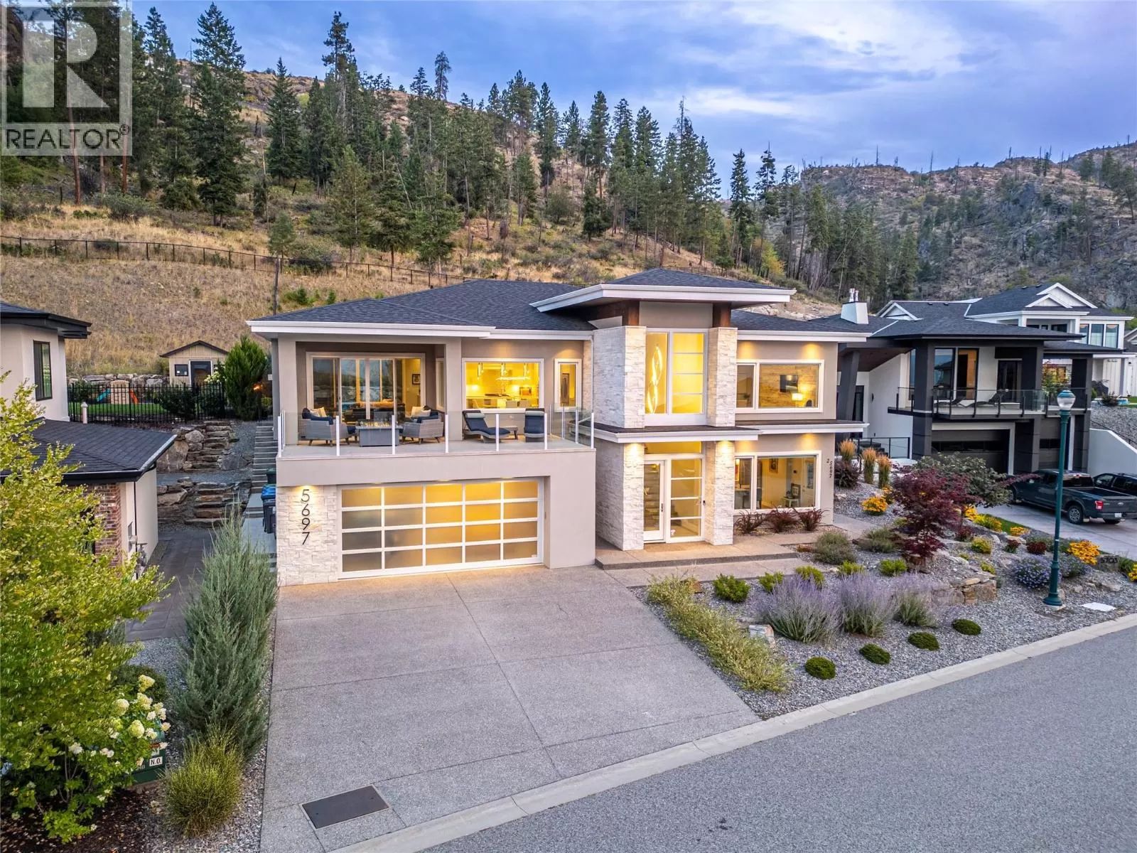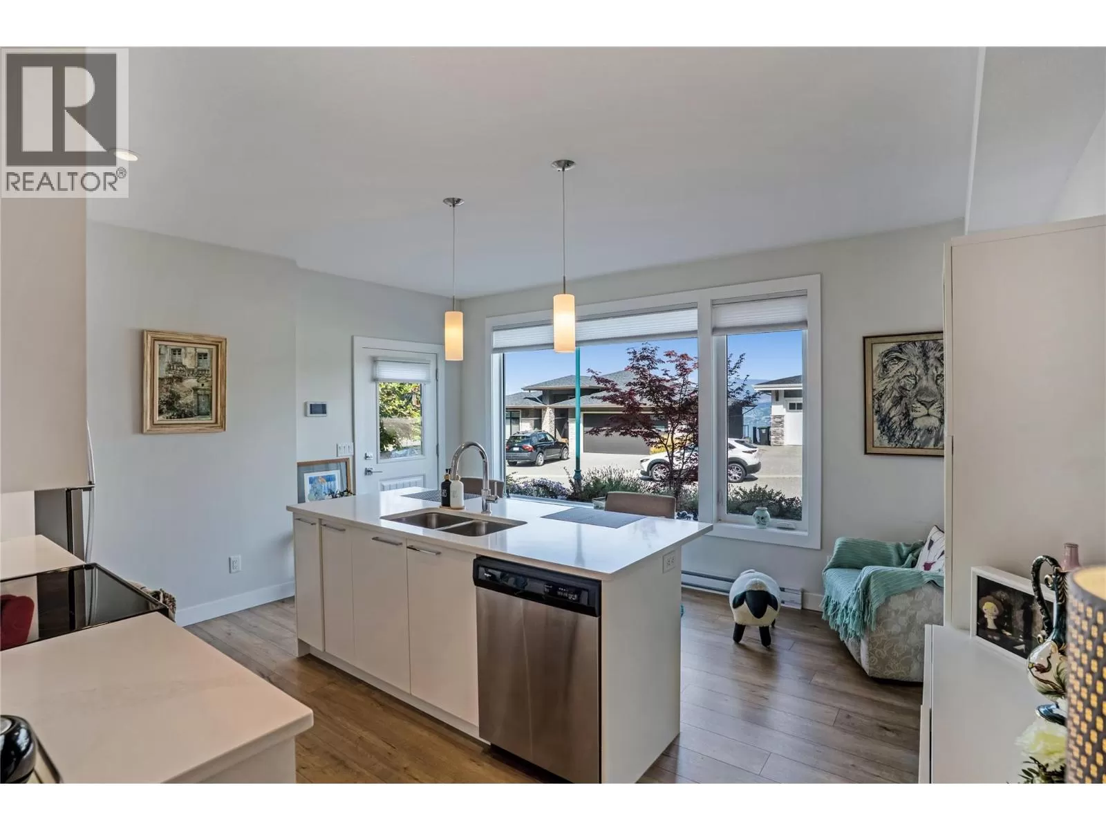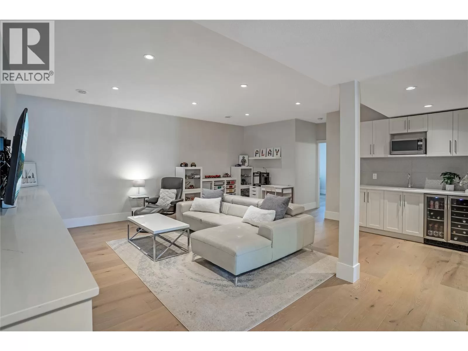 Discover custom-built luxury in this stunning 5-bedroom, 5-bath home featuring a bright, legal 1-bedroom ground-level suite. This high-efficiency smart home boasts soaring vaulted ceilings, a dramatic floating staircase, and rich wide plank wood floors. The open-concept main floor centers around a chefâs kitchen with quartz countertops, custom cabinetry, and a hidden walk-in butlerâs pantry. Flow effortlessly into the spacious dining and living areas warmed by a gas fireplace, then step out onto the front deck to enjoy Okanagan Lake and mountain views. The private backyard is an entertainerâs dream with a heated saltwater pool, hot tub, and ample space to relax or host gatherings. The main-level master suite offers a spa-like retreat with a soaker tub, glass-enclosed shower, and double floating vanity with undermount lighting. Two additional bedrooms share a stylish Jack & Jill bath, with one bedroom featuring a queen Murphy bedâideal for guests or a home office. A large laundry room with abundant counters and cabinetry enhances daily functionality. The lower level features a generous rec room with an electric fireplace, wet bar, guest bedroom, and full bath. The oversized three-car garage easily fits a boat, a car, and plenty of toys. Exceptional millwork, designer fixtures, and quality finishes elevate every room. Enjoy close proximity to top schools, parks, dining, and Okanaganâs renowned wineries. Luxury, comfort, and thoughtful design converge in this remarkable home. (id:27476)