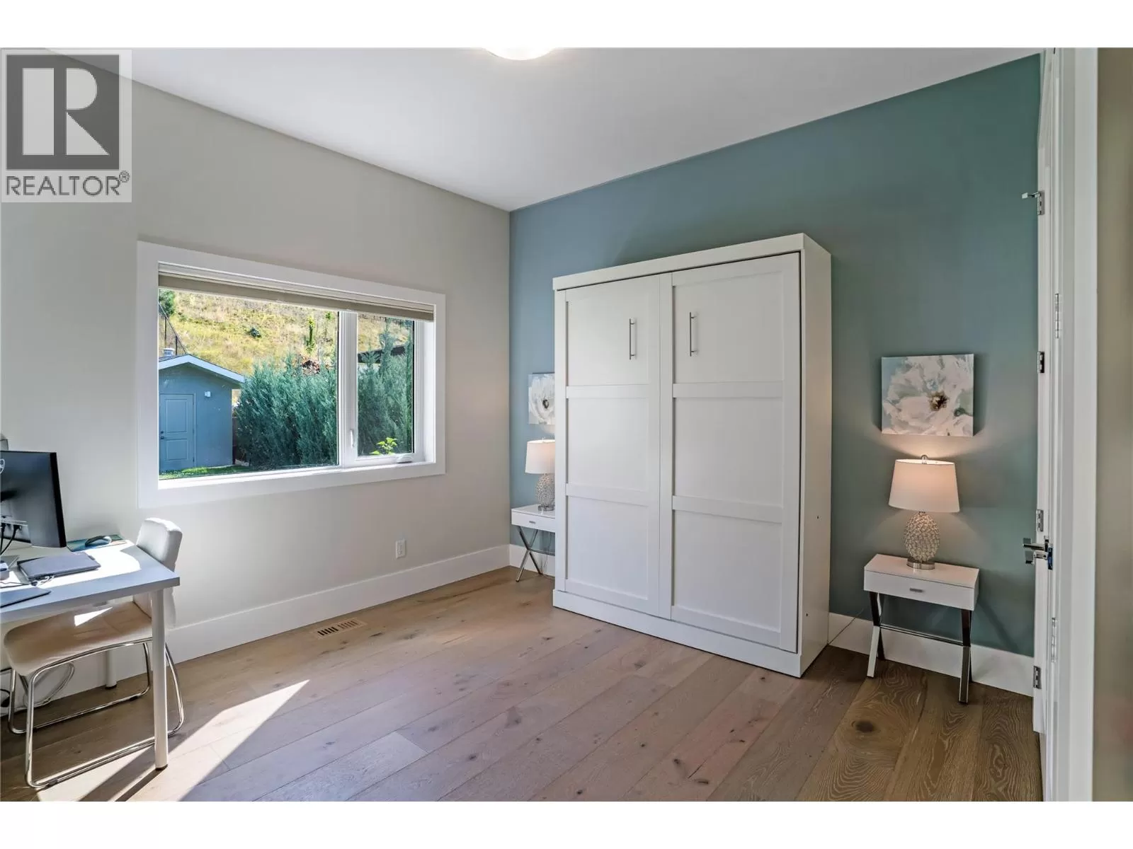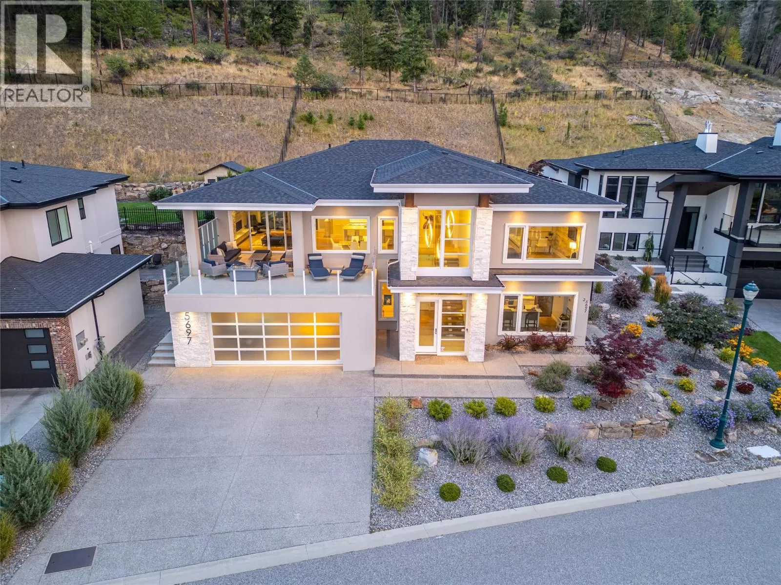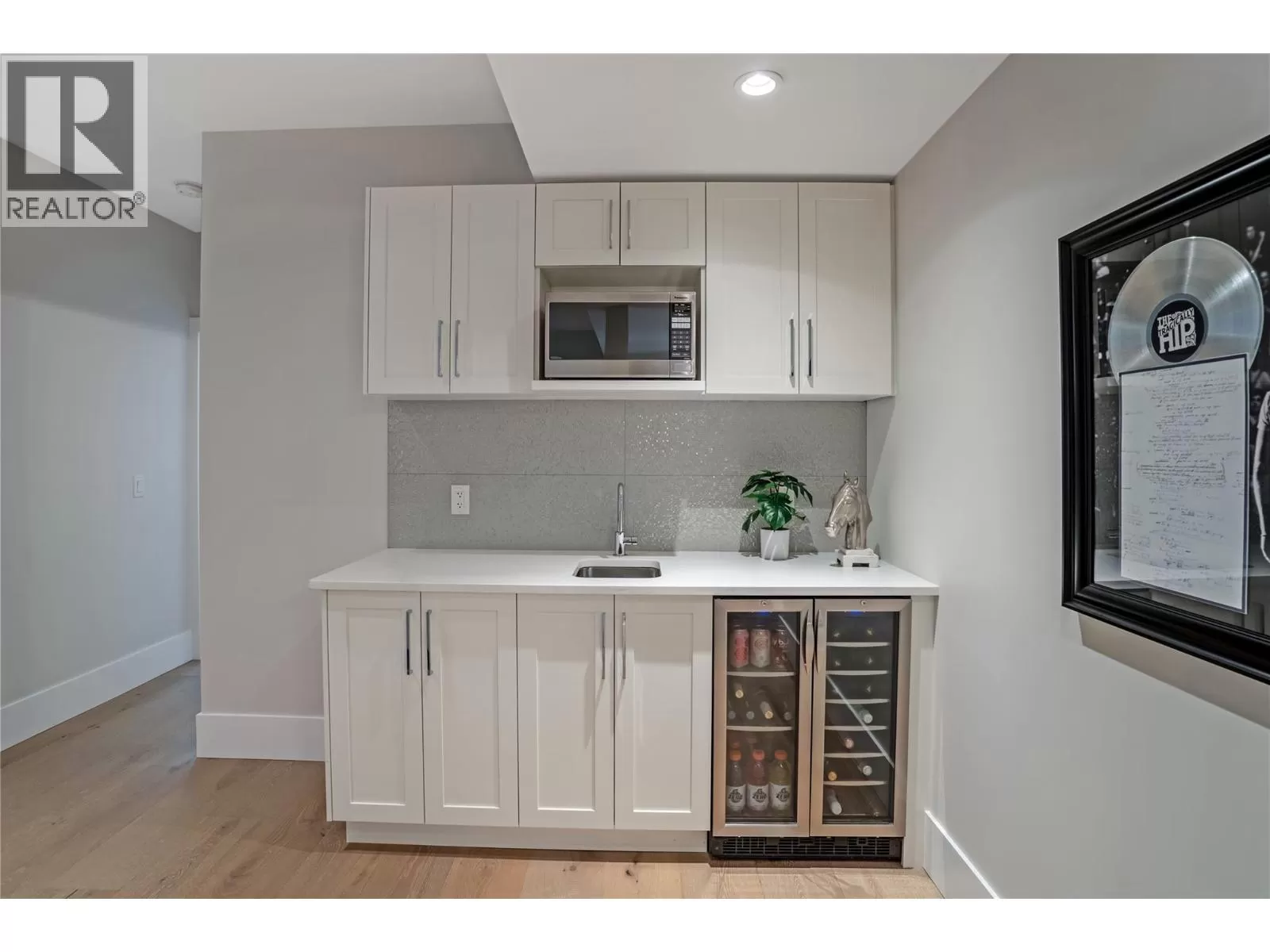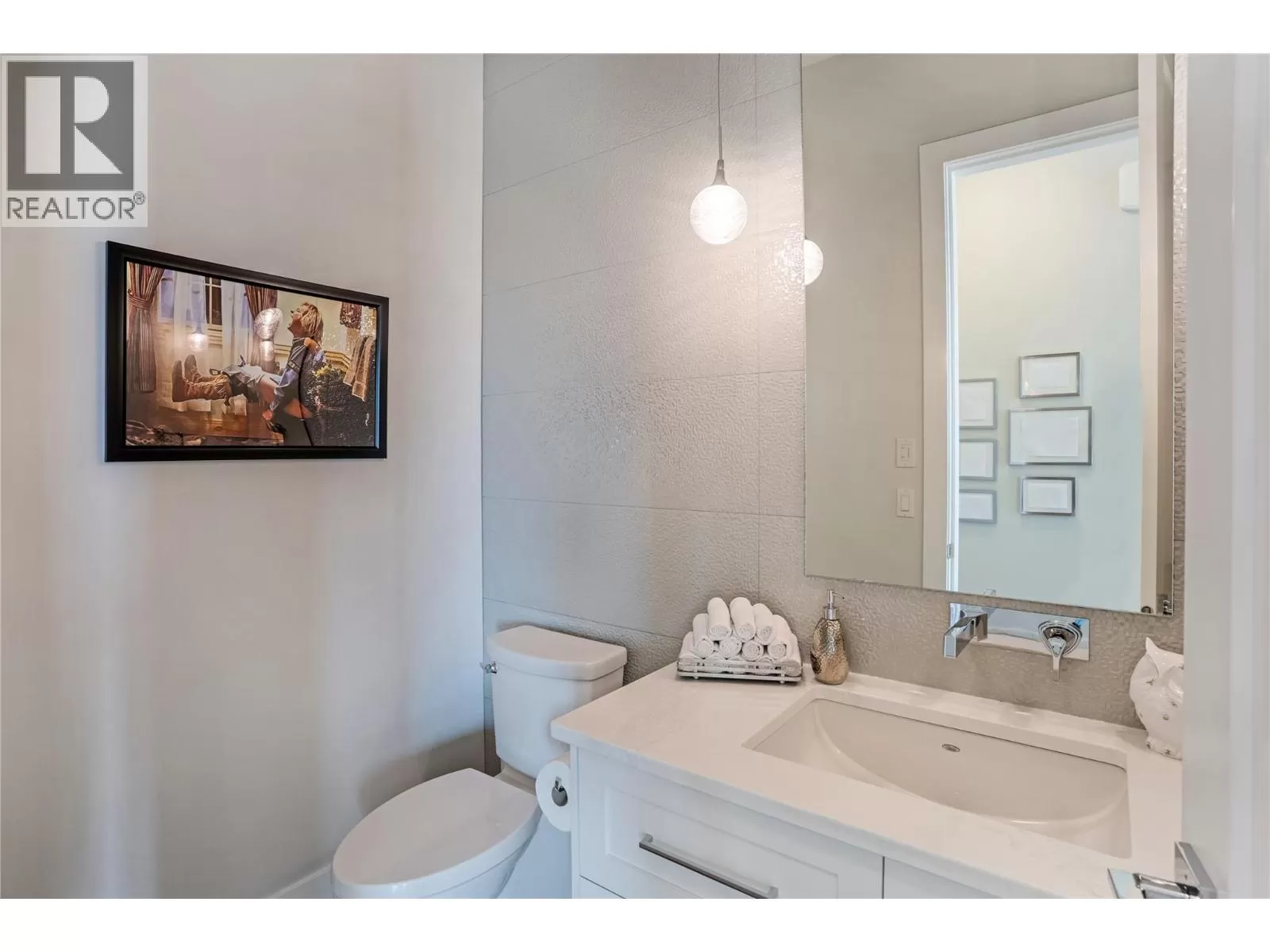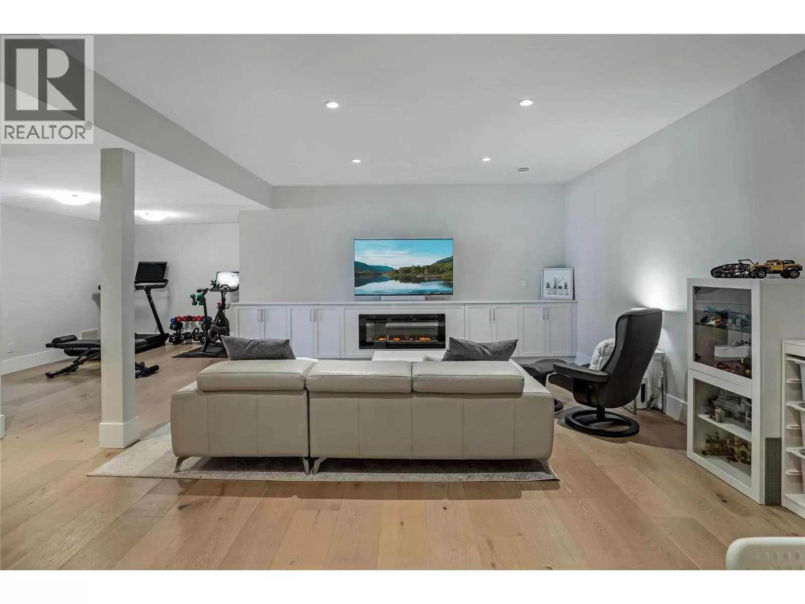 Discover custom-built luxury in this stunning 5-bedroom, 5-bath home featuring a bright, legal 1-bedroom ground-level suite. This high-efficiency smart home boasts soaring vaulted ceilings, a dramatic floating staircase, and rich wide plank wood floors. The open-concept main floor centers around a chefâs kitchen with quartz countertops, custom cabinetry, and a hidden walk-in butlerâs pantry. Flow effortlessly into the spacious dining and living areas warmed by a gas fireplace, then step out onto the front deck to enjoy Okanagan Lake and mountain views. The private backyard is an entertainerâs dream with a heated saltwater pool, hot tub, and ample space to relax or host gatherings. The main-level master suite offers a spa-like retreat with a soaker tub, glass-enclosed shower, and double floating vanity with undermount lighting. Two additional bedrooms share a stylish Jack & Jill bath, with one bedroom featuring a queen Murphy bedâideal for guests or a home office. A large laundry room with abundant counters and cabinetry enhances daily functionality. The lower level features a generous rec room with an electric fireplace, wet bar, guest bedroom, and full bath. The oversized three-car garage easily fits a boat, a car, and plenty of toys. Exceptional millwork, designer fixtures, and quality finishes elevate every room. Enjoy close proximity to top schools, parks, dining, and Okanaganâs renowned wineries. Luxury, comfort, and thoughtful design converge in this remarkable home. (id:27476)