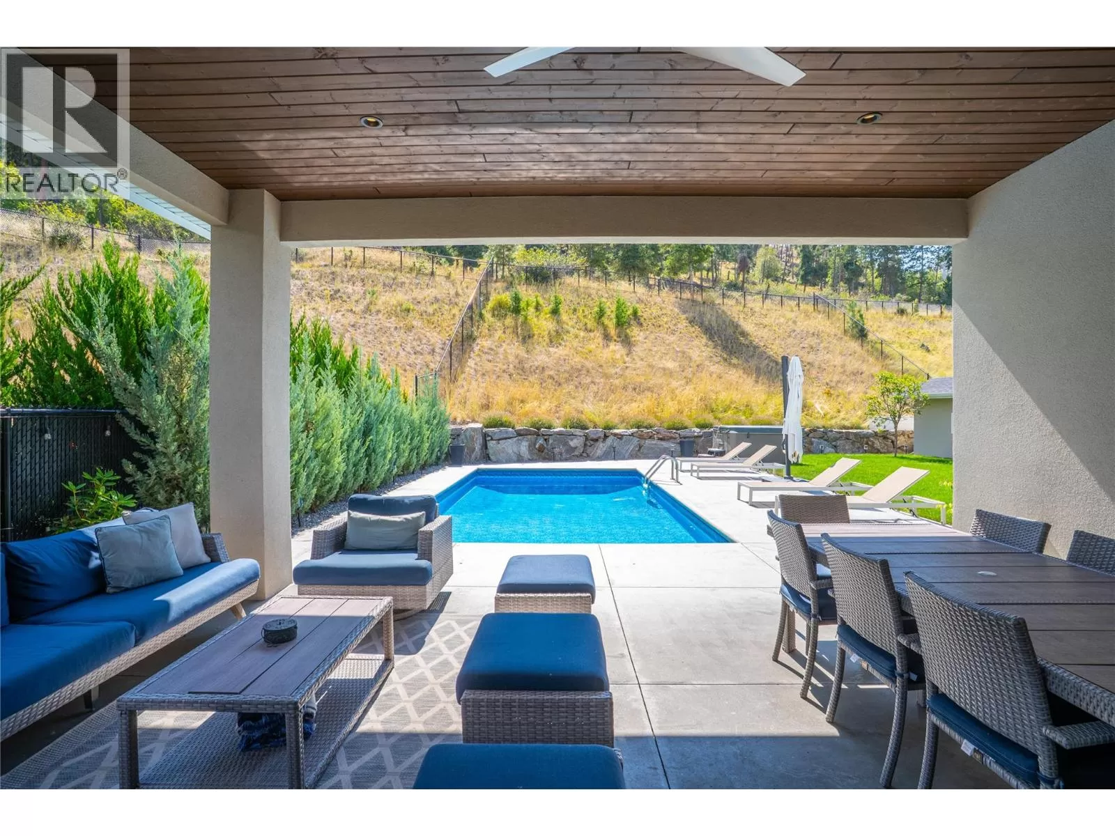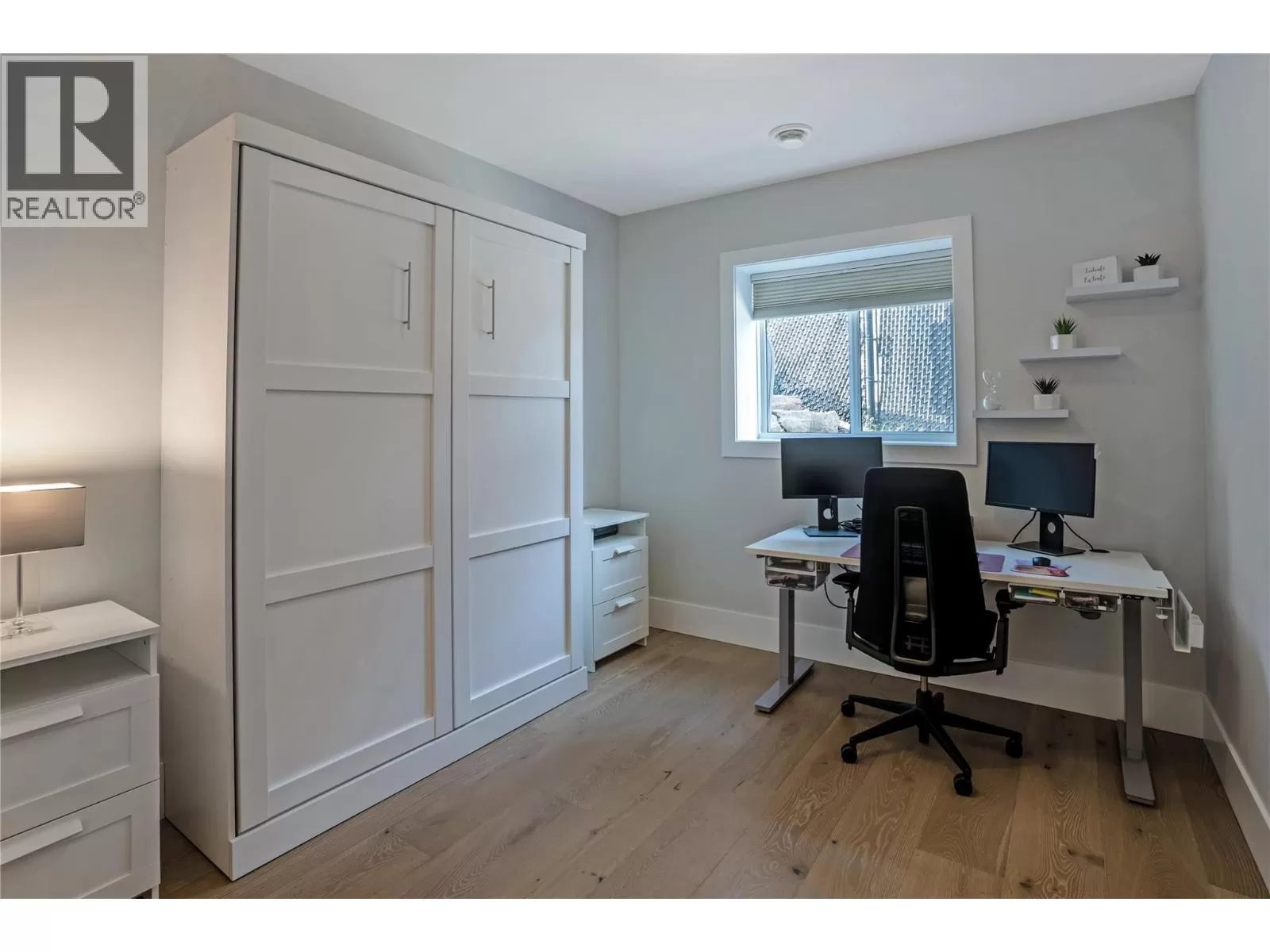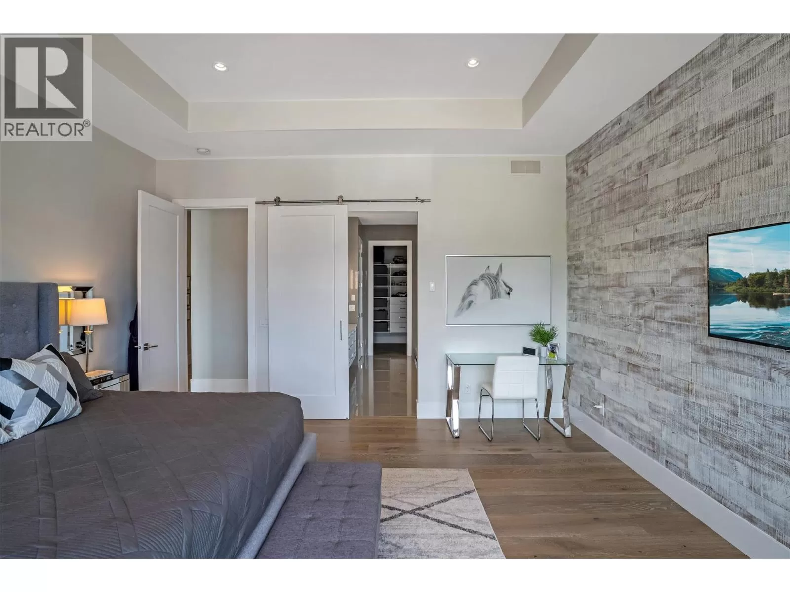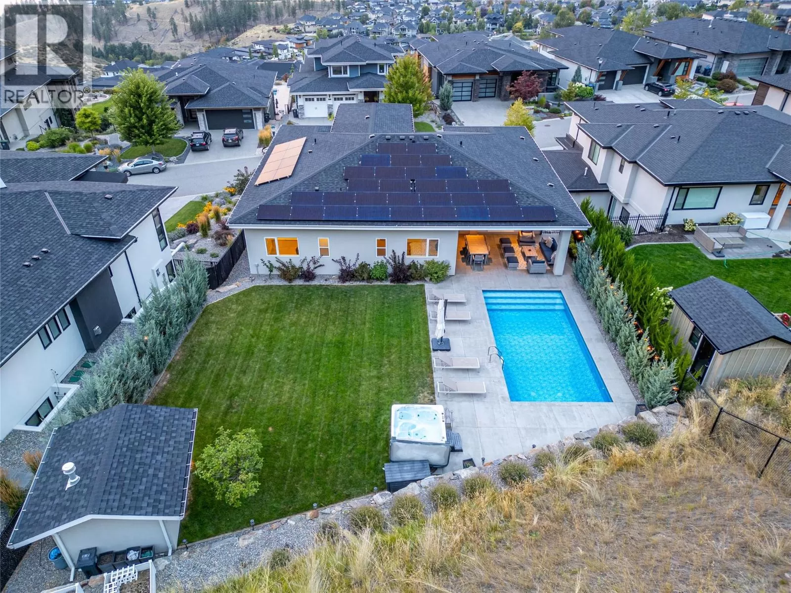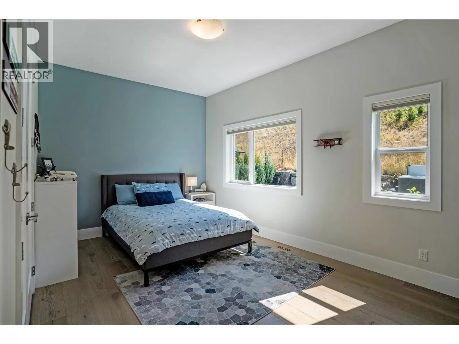 Discover custom-built luxury in this stunning 5-bedroom, 5-bath home featuring a bright, legal 1-bedroom ground-level suite. This high-efficiency smart home boasts soaring vaulted ceilings, a dramatic floating staircase, and rich wide plank wood floors. The open-concept main floor centers around a chefâs kitchen with quartz countertops, custom cabinetry, and a hidden walk-in butlerâs pantry. Flow effortlessly into the spacious dining and living areas warmed by a gas fireplace, then step out onto the front deck to enjoy Okanagan Lake and mountain views. The private backyard is an entertainerâs dream with a heated saltwater pool, hot tub, and ample space to relax or host gatherings. The main-level master suite offers a spa-like retreat with a soaker tub, glass-enclosed shower, and double floating vanity with undermount lighting. Two additional bedrooms share a stylish Jack & Jill bath, with one bedroom featuring a queen Murphy bedâideal for guests or a home office. A large laundry room with abundant counters and cabinetry enhances daily functionality. The lower level features a generous rec room with an electric fireplace, wet bar, guest bedroom, and full bath. The oversized three-car garage easily fits a boat, a car, and plenty of toys. Exceptional millwork, designer fixtures, and quality finishes elevate every room. Enjoy close proximity to top schools, parks, dining, and Okanaganâs renowned wineries. Luxury, comfort, and thoughtful design converge in this remarkable home. (id:27476)