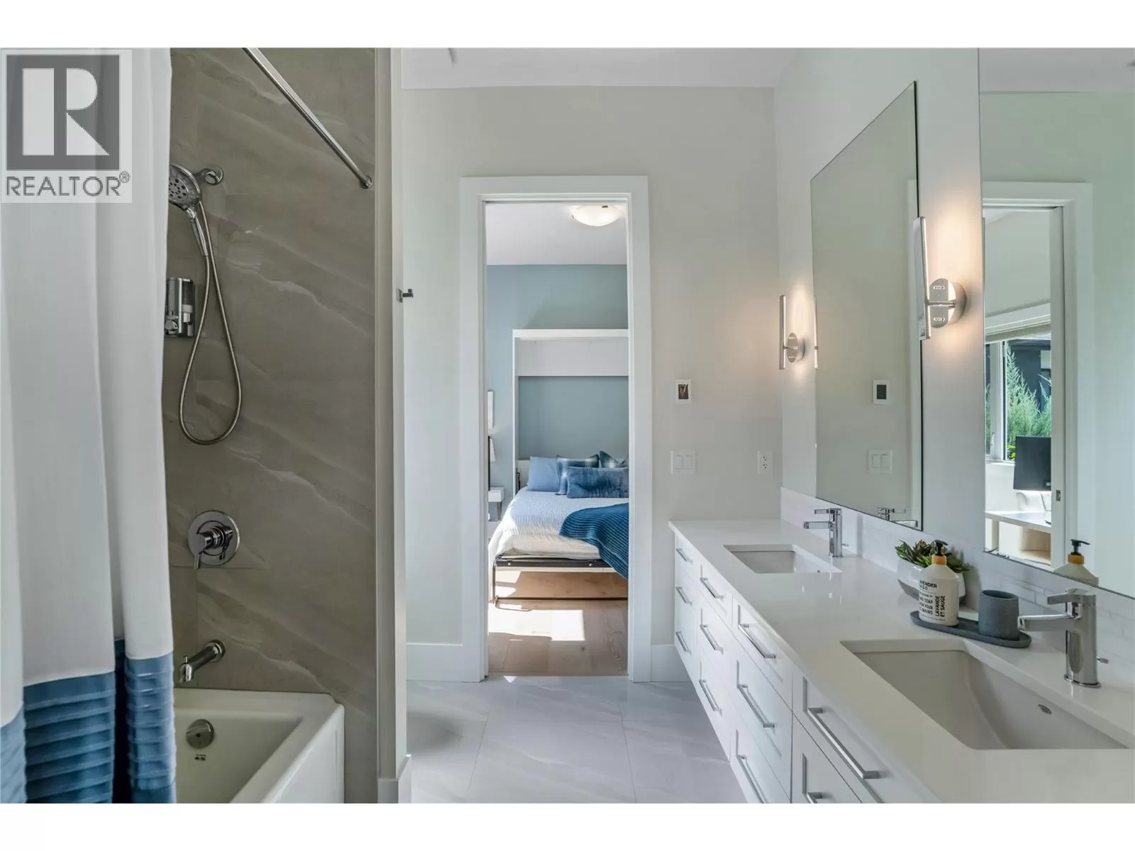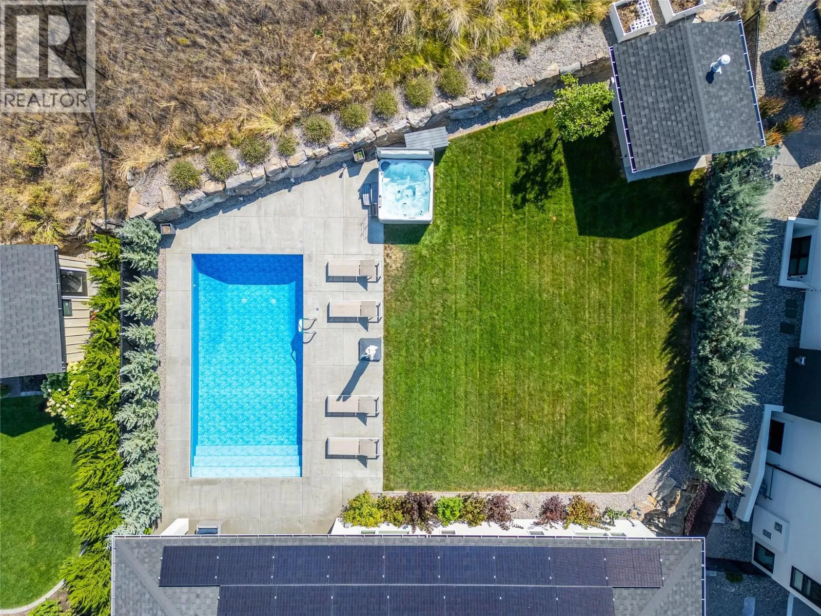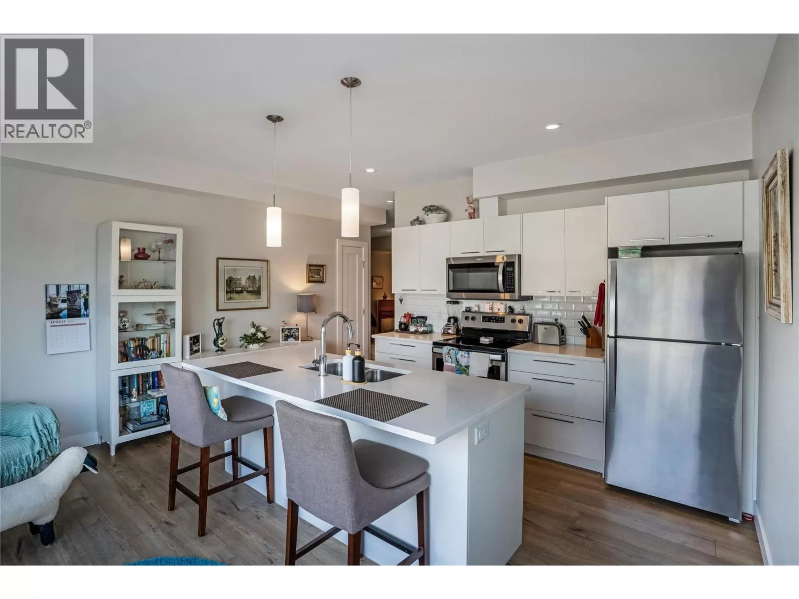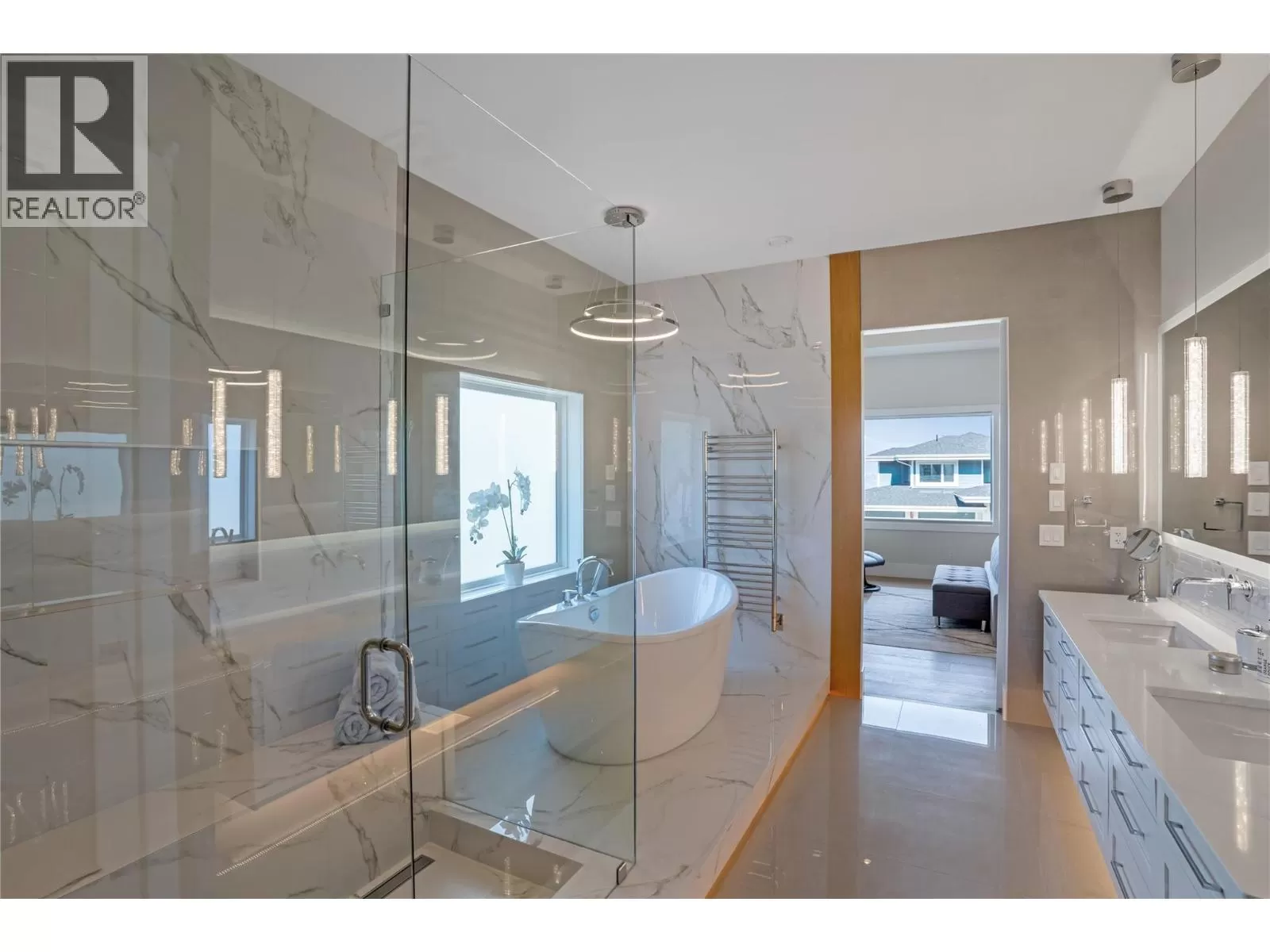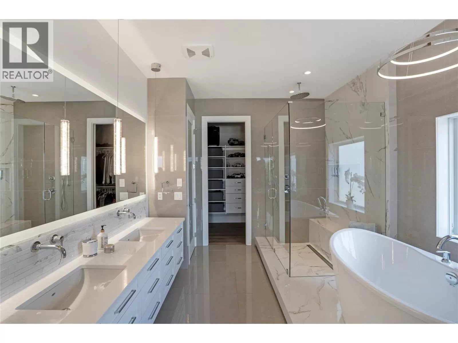 Discover custom-built luxury in this stunning 5-bedroom, 5-bath home featuring a bright, legal 1-bedroom ground-level suite. This high-efficiency smart home boasts soaring vaulted ceilings, a dramatic floating staircase, and rich wide plank wood floors. The open-concept main floor centers around a chefâs kitchen with quartz countertops, custom cabinetry, and a hidden walk-in butlerâs pantry. Flow effortlessly into the spacious dining and living areas warmed by a gas fireplace, then step out onto the front deck to enjoy Okanagan Lake and mountain views. The private backyard is an entertainerâs dream with a heated saltwater pool, hot tub, and ample space to relax or host gatherings. The main-level master suite offers a spa-like retreat with a soaker tub, glass-enclosed shower, and double floating vanity with undermount lighting. Two additional bedrooms share a stylish Jack & Jill bath, with one bedroom featuring a queen Murphy bedâideal for guests or a home office. A large laundry room with abundant counters and cabinetry enhances daily functionality. The lower level features a generous rec room with an electric fireplace, wet bar, guest bedroom, and full bath. The oversized three-car garage easily fits a boat, a car, and plenty of toys. Exceptional millwork, designer fixtures, and quality finishes elevate every room. Enjoy close proximity to top schools, parks, dining, and Okanaganâs renowned wineries. Luxury, comfort, and thoughtful design converge in this remarkable home. (id:27476)
