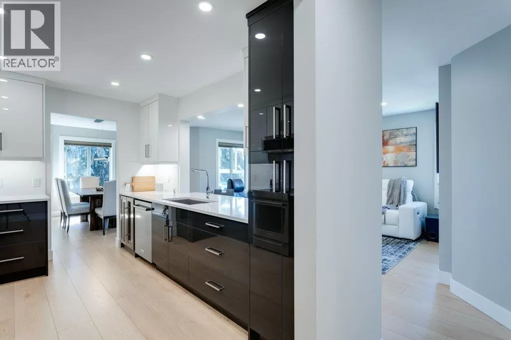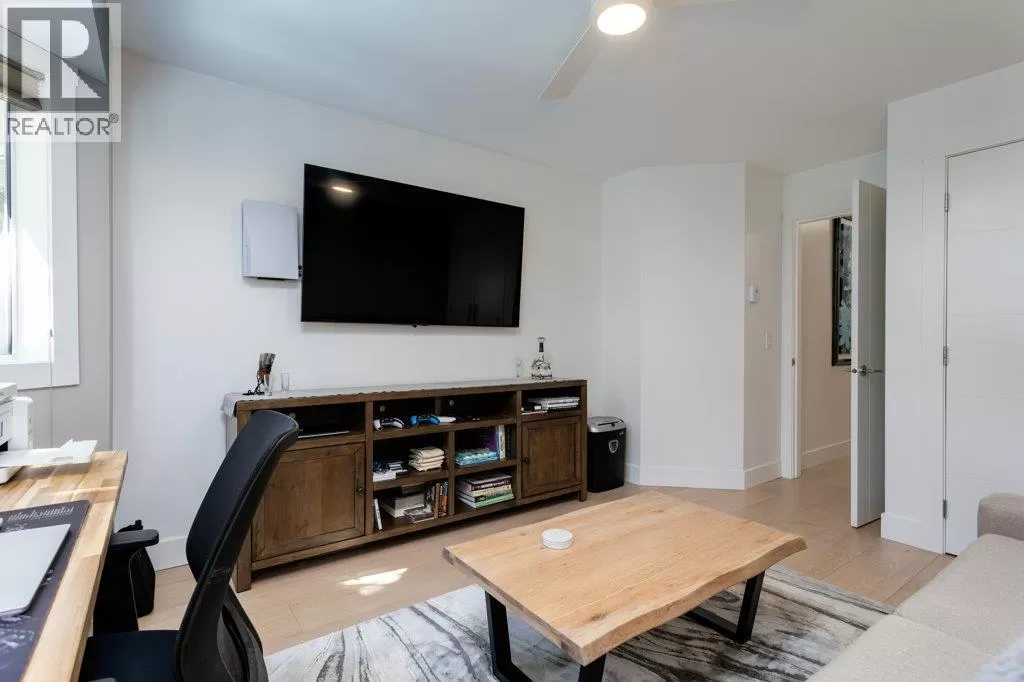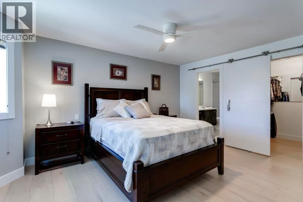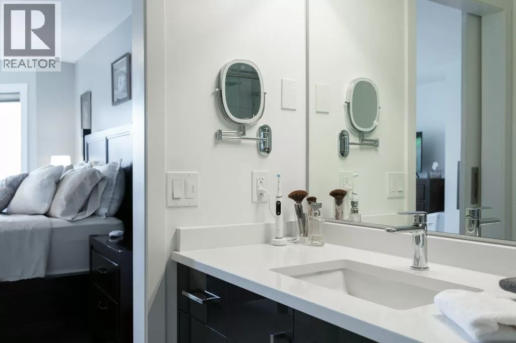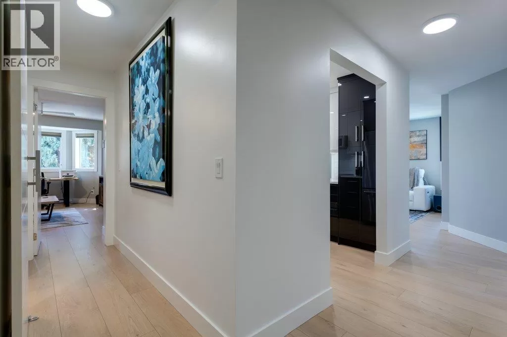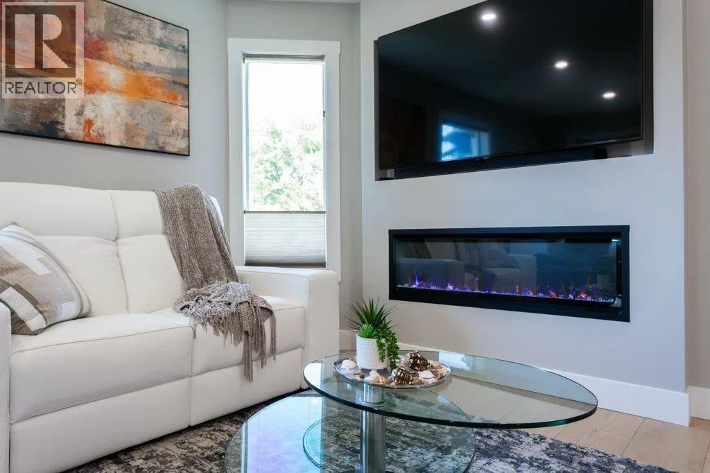 Top Floor, Corner, No expense spared in the total renovation of this larger than most 2 bedroom + 2 bath + Sunroom split plan condo in the heart of downtown Kelowna. The pictures tell the story. Nothing has been overlooked in the high-end renovation of this west-facing top-floor home. High-gloss, soft-close cabinets, all new stainless Kitchenaid appliances, including: induction range, wine fridge, quartz countertops, linear fireplace and wide-plank laminate flooring. Quiet corner unit with great light-filled rooms and added usable sq. footage with an enclosed sunroom. This condo is in an excellent location close to everything downtown has to offer and is move-in ready. Additional storage off the lobby (locker 309). Parking is conveniently located(#36) a second stall is available from strata ($30/month), plus on-site visitor parking and a car wash area. Social room is off the elevator on the 2nd floor, Gym off the elevator on the 3rd floor. BBQ area, and great sundeck off the back of the elevated first floor. Don't miss this opportunity to live in style downtown for a great price! This is a 55+ building and pets are not allowed. (id:27476)