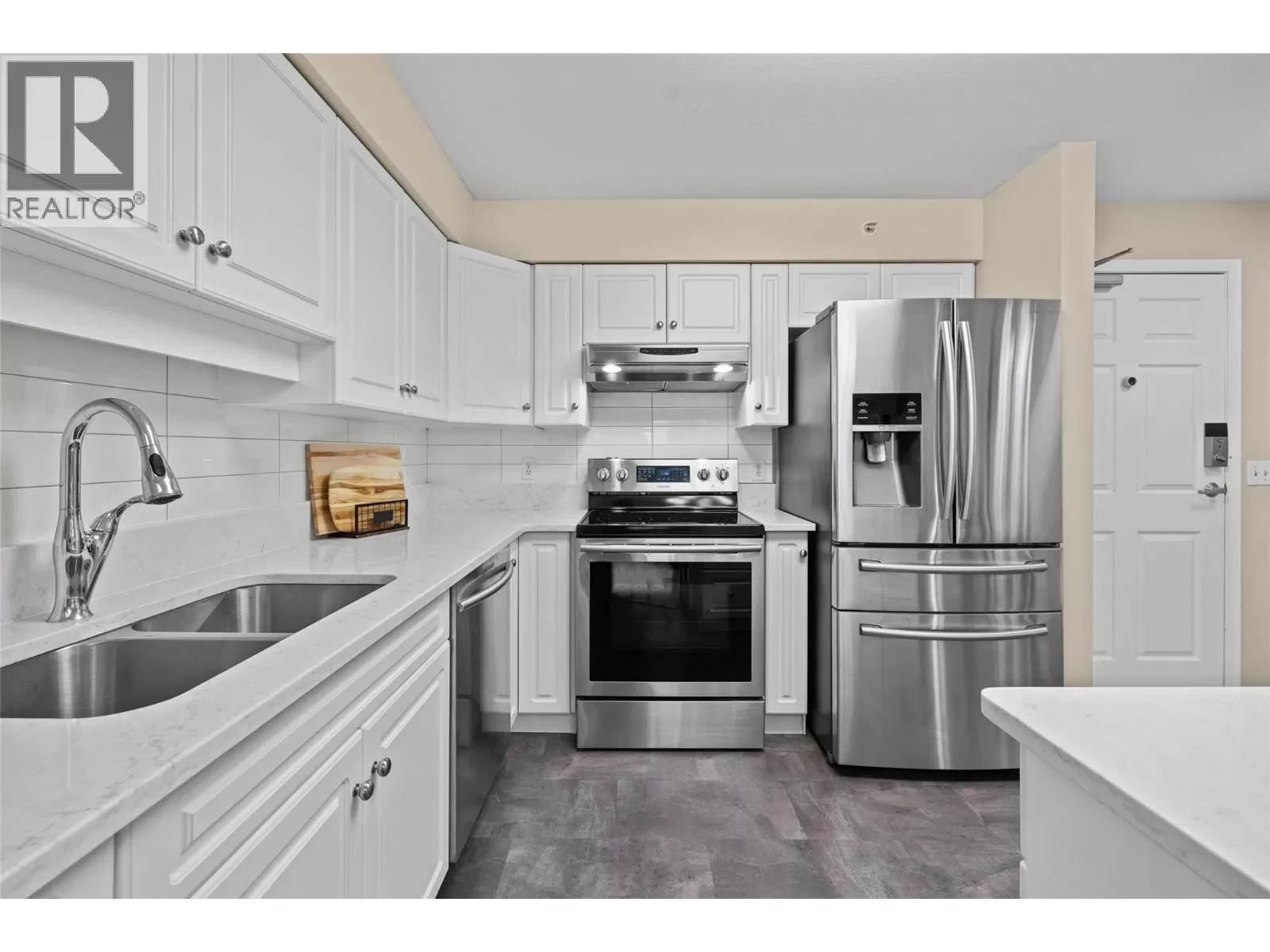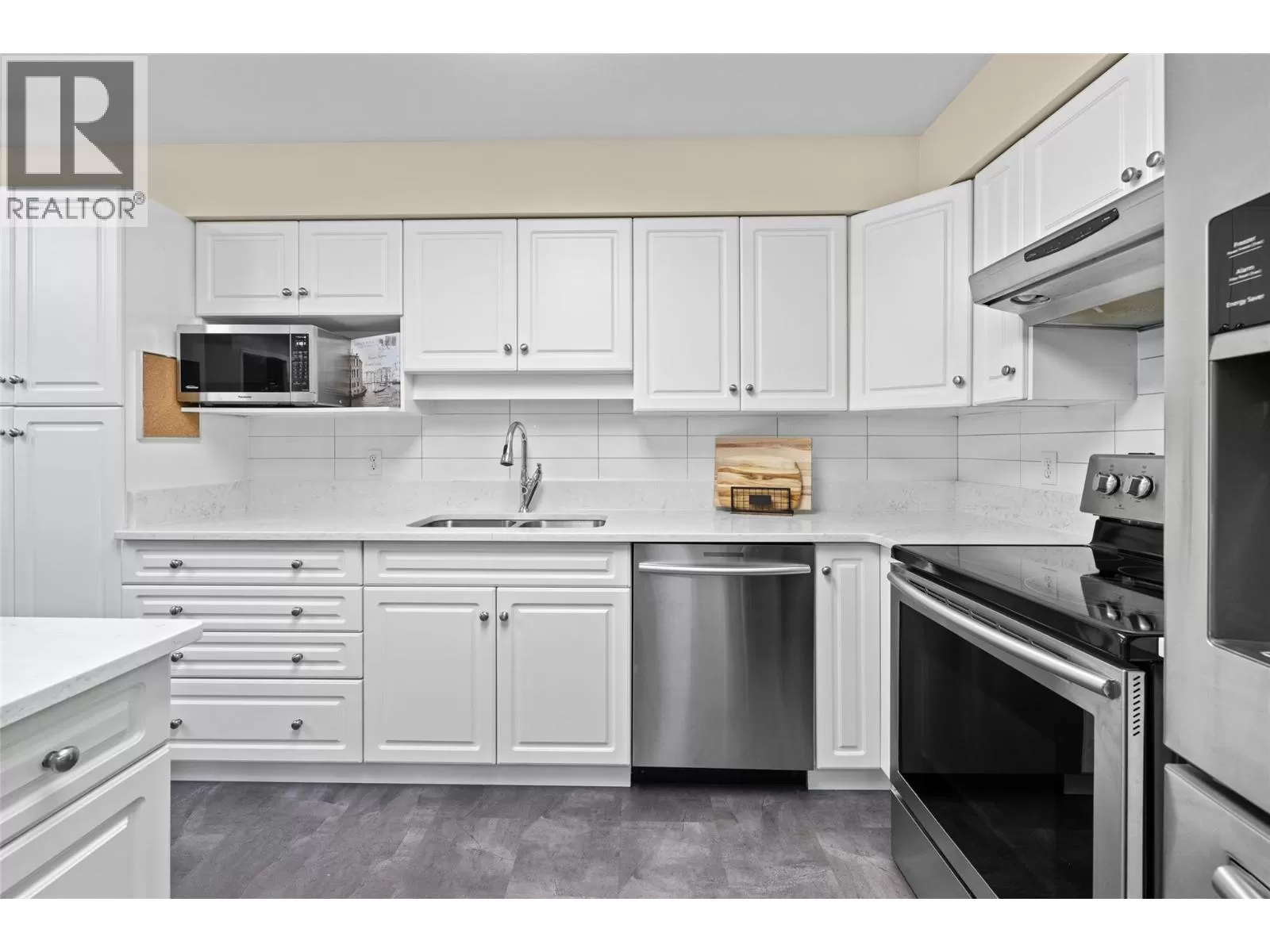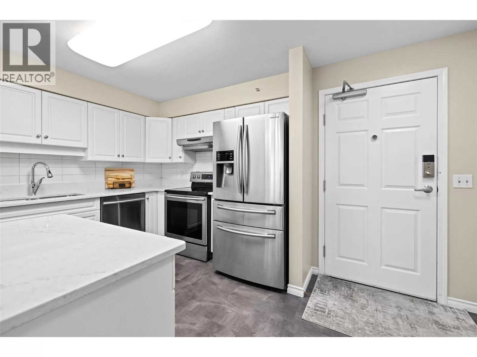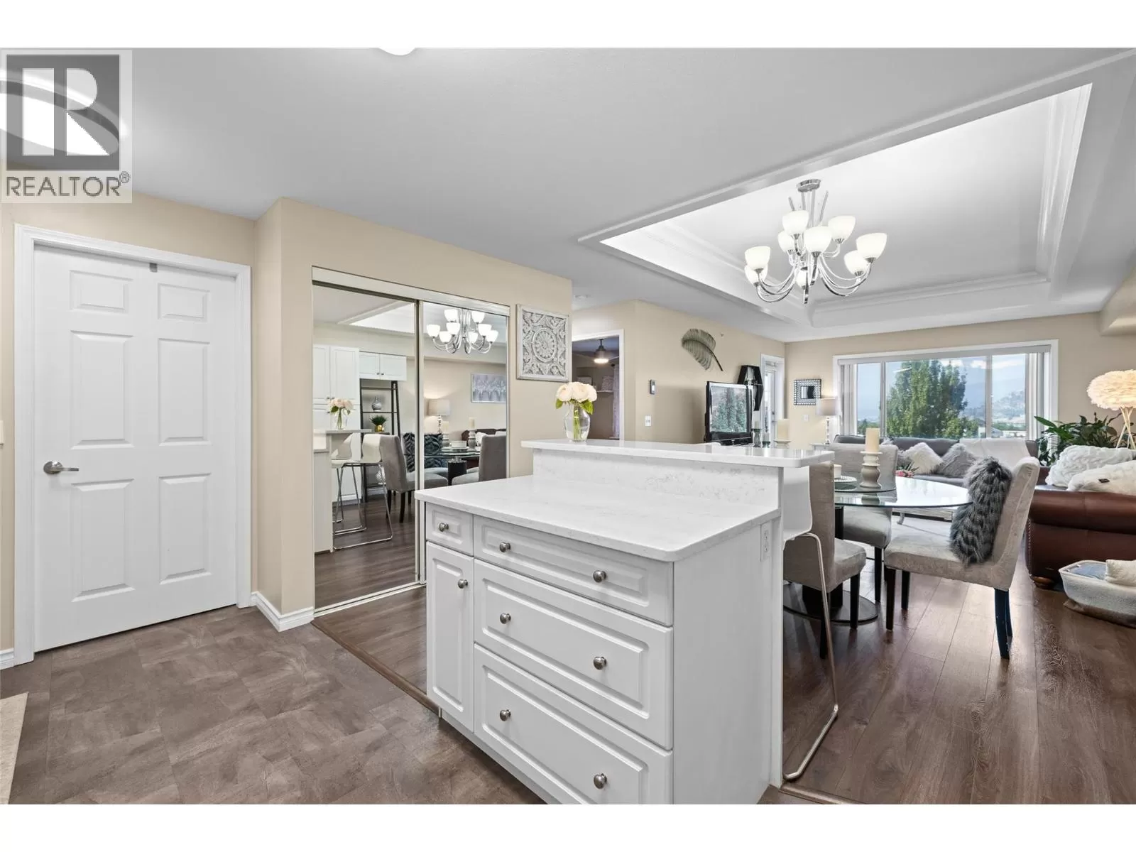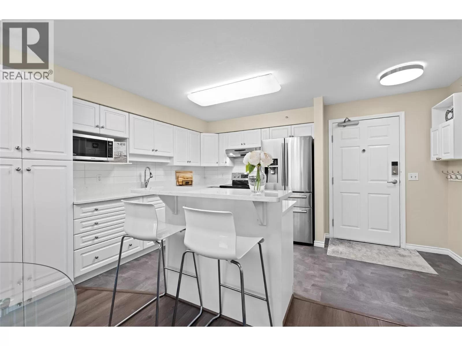Tastefully updated top-floor 1 bed, 1 bath home in a 55+ community. Professionally renovated with attention to detail, this bright and spacious unit features soaring tray ceilings, granite countertops, stainless steel appliances, Hunter Douglas blinds, and a new lighting package. Enjoy breathtaking city and mountain views from your living room and private patio. The well-designed layout offers both comfort and style. Includes 1 underground parking spot and a storage locker. Just steps from grocery stores, restaurants, and all essential amenitiesâeverything you need is right outside your door. Call todayâIâd love to help you make this beautiful home yours! (id:27476)