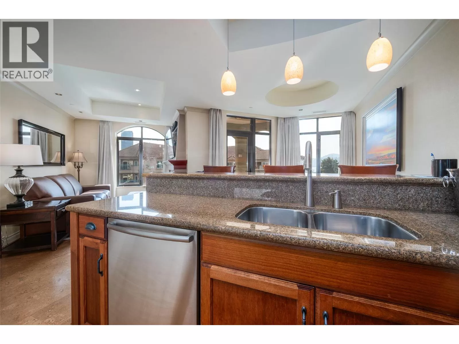 Experience an unparalleled seasonal getaway with a 1/12 fractional ownership at The Royal Kelowna, an exclusive waterfront resort. This fully furnished, one-bedroom unit offers four weeks of vacation per year, with one week each season. Just bring your suitcase! Enjoy stunning lake and lagoon views from the third-floor. This unit features a gourmet kitchen with a gas range and Sub-Zero fridge, a spa-like ensuite, and a covered patio with breathtaking views. The unit comfortably sleeps four with the use of a sofa bed. Spend your days enjoying the incredible amenities, including a rooftop heated infinity pool, multiple hot tubs, and BBQs. Other perks include a fitness centre, secured covered parking, concierge, and maid service for a truly hassle-free vacation. The resort's prime location in Kelowna's Cultural and Entertainment District puts you within walking distance of Kelowna Beaches, many phenomenal restaurants, Prospera Place, the vibrant downtown nightlife and so much more! Boat owners will love the complimentary moorage. If you don't use your weeks, Bellstar Property Management can rent them for you. You can also trade weeks for luxury resorts worldwide through the RCI club. Remaining 2025 week: Nov 21-28 and the 2026 dates are: February 13- February 20, May 8 - May 15, July 31 - August 7, and October 23 - October 30. (id:27476)