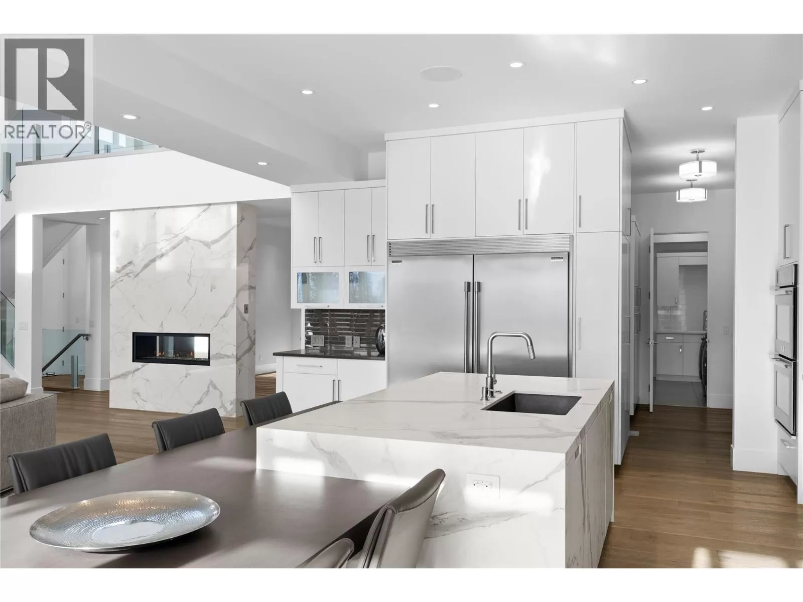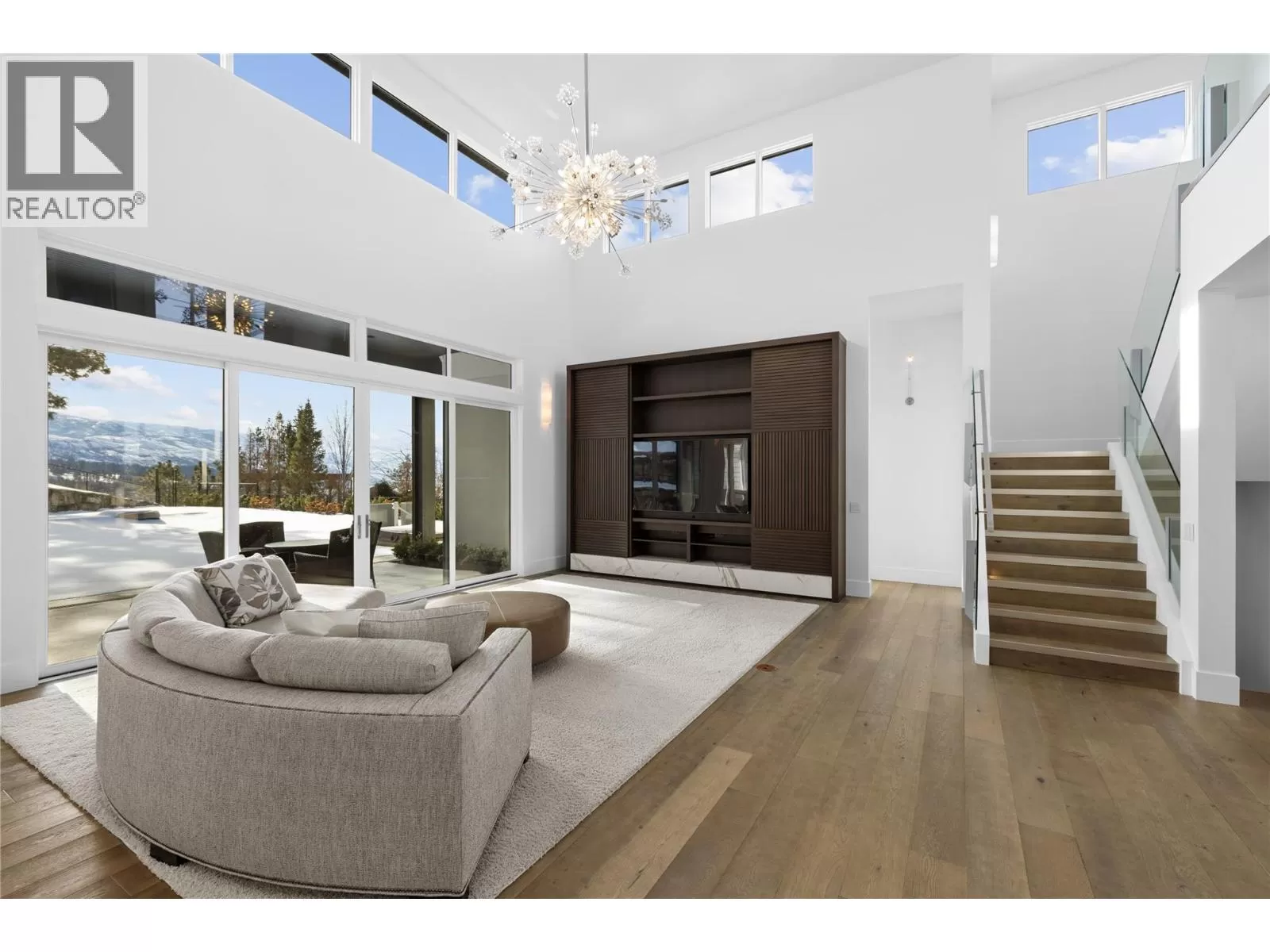 Welcome to the Pinnacle of Luxury Living in this Exquisite Custom Home in Woodland Hills Estates. One of The most Impressive homes in Kelownaâs Exclusive Lower Mission. This stunning estate underwent a substantial renovation in 2024, with no detail overlooked. Offering an exceptional blend of elegance, grandeur, and modern design, it is a true Masterpiece. The interior showcases soaring ceilings, high-end finishes and top-quality renovations. The chefâs kitchen is equipped with premium appliances, elegant cabinetry, and thoughtfully designed spaces for both cooking and gathering. The main floor primary suite is a private retreat, complete with ensuite, walk-in closet and bonus dressing room or nursery. A second suite is located on the upper level, which also features another bedroom or office and spacious family room. The lower level offers a generous sized media/games room with custom panels, bar and wine feature, 2 more bedrooms and gym. Designed for both relaxation and entertainment, the home boasts a beautifully landscaped backyard oasis with a private inground pool. Surrounded by lush new landscaping and artificial grass, the outdoor space is both stunning and low-maintenance. The property offers lake views from both the North and South sides, ensuring breathtaking scenery throughout the day. Every aspect of this home has been meticulously upgraded to the highest standards, offering a rare opportunity to own this Polished, Luxurious and Sophisticated Estate. (id:27476)