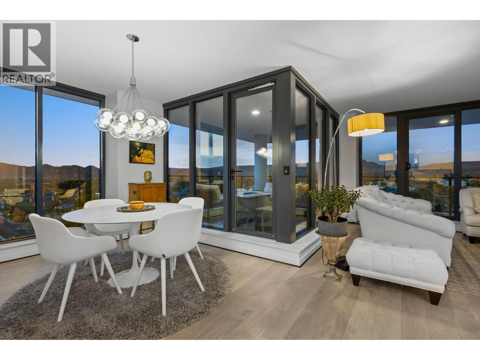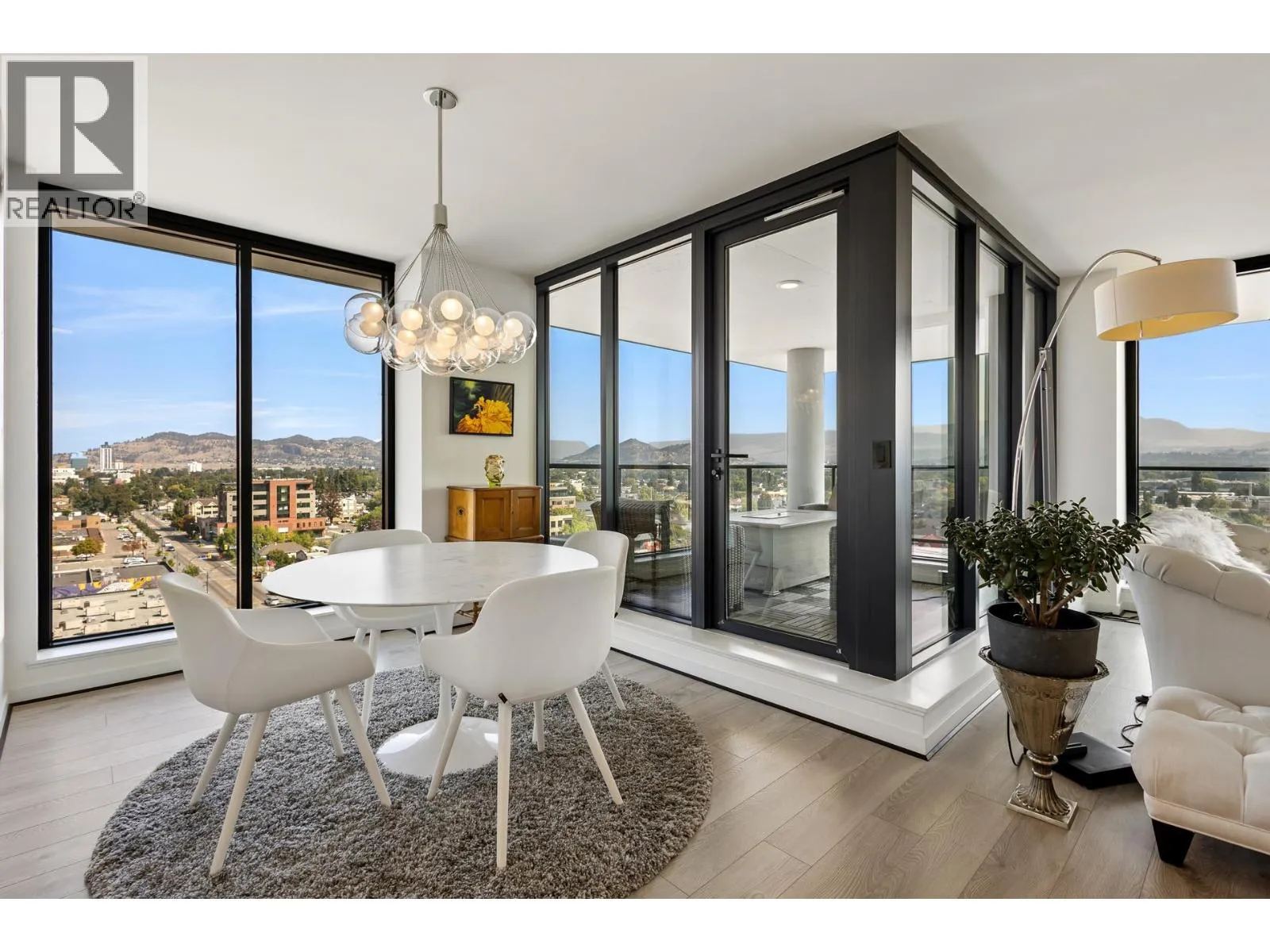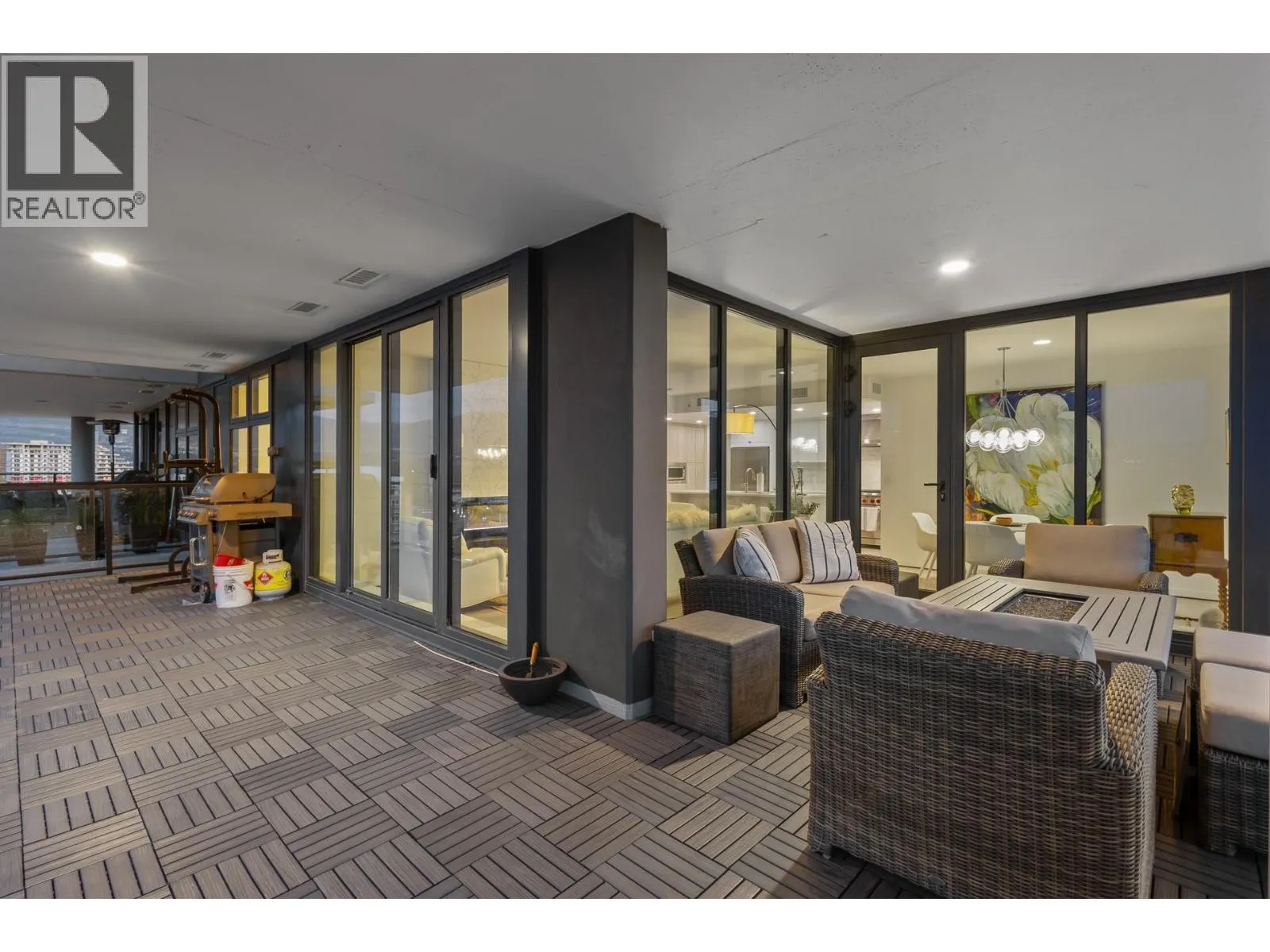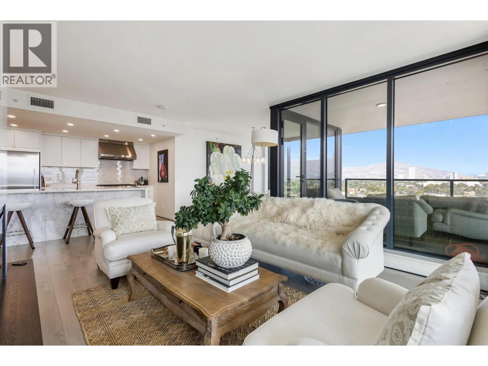Beautiful luxury condo at Sopa Square in the vibrant South Pandosy community with $150+K in upgrades and just steps to Okanagan Lake. Bright and open 3 bedroom floor plan with a flex space that could be used as an office or a den. With floor to ceiling windows in the main living space, this home is flooded with an abundance of natural light. Enjoy the utmost in outdoor living on the covered wrap-around patio that overlooks the city and offers beautiful views of the lake. Attention to detail is evident at every turn. This home has been well finished throughout and offers stylish updates including designer lighting, feature walls, and custom wainscoting in the primary bedroom. The gourmet kitchen will delight any culinary enthusiast with a stainless-steel appliance package including a Wolf gas range. Entertain with ease at the large centre island. An electric fireplace in the living room creates a cozy ambiance. The primary bedroom boasts a 4-piece en suite and walk through closet. Two additional bedrooms share an adjacent bath. Residents of SOPA will enjoy the resort style amenities including a fitness centre, outdoor pool & hot tub, and sun-soaked terrace. A new waterfront city park is planned to open this summer. Stroll the Abbott St. Corridor or the Pandosy Village amidst boutique shopping, fine restaurants & trendy cafesâtruly a vibrant community within a city. (id:27476)
