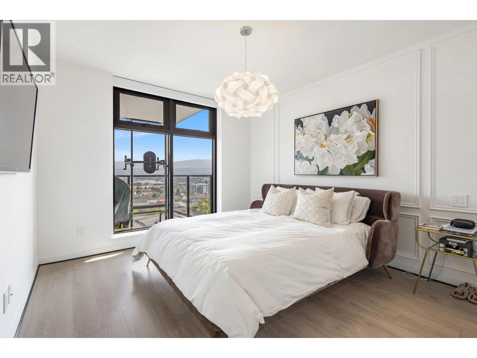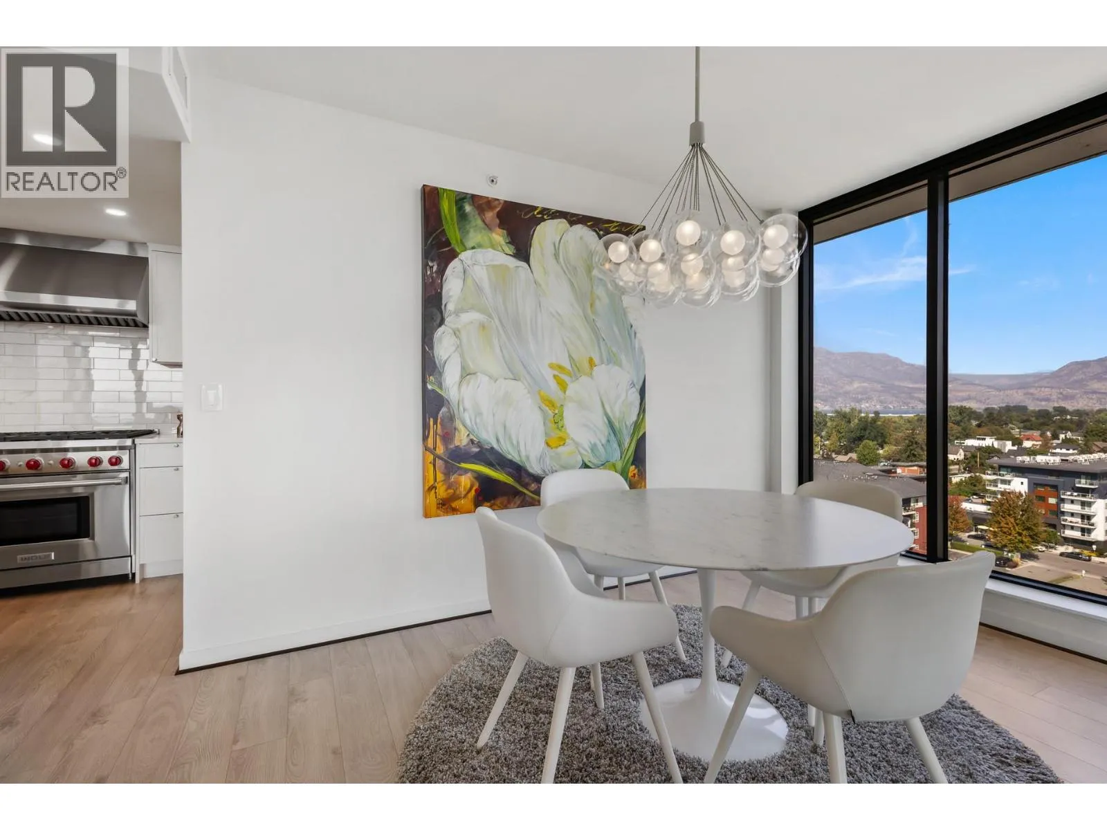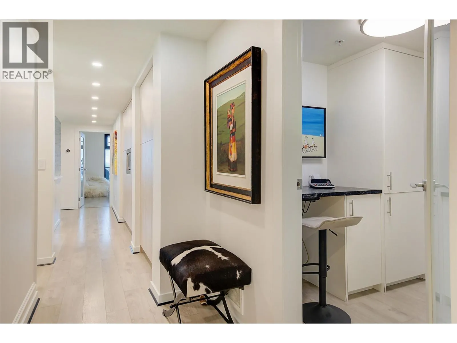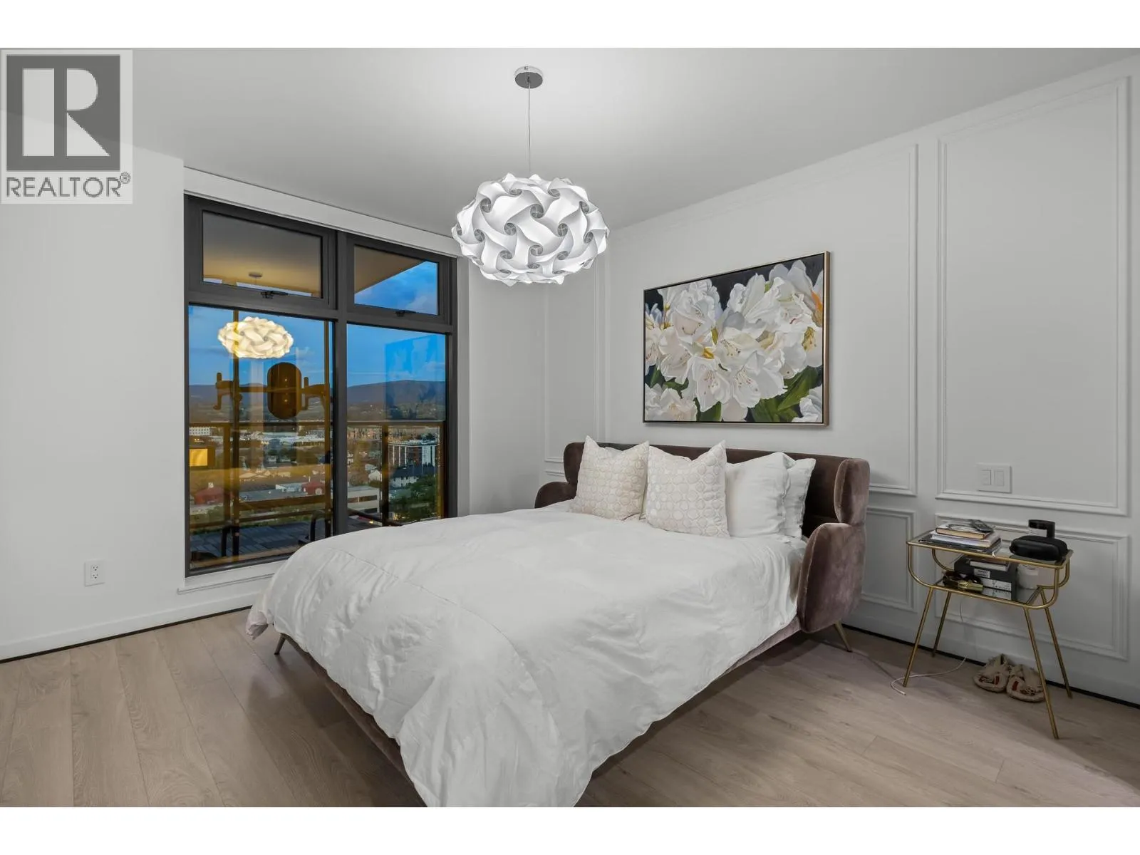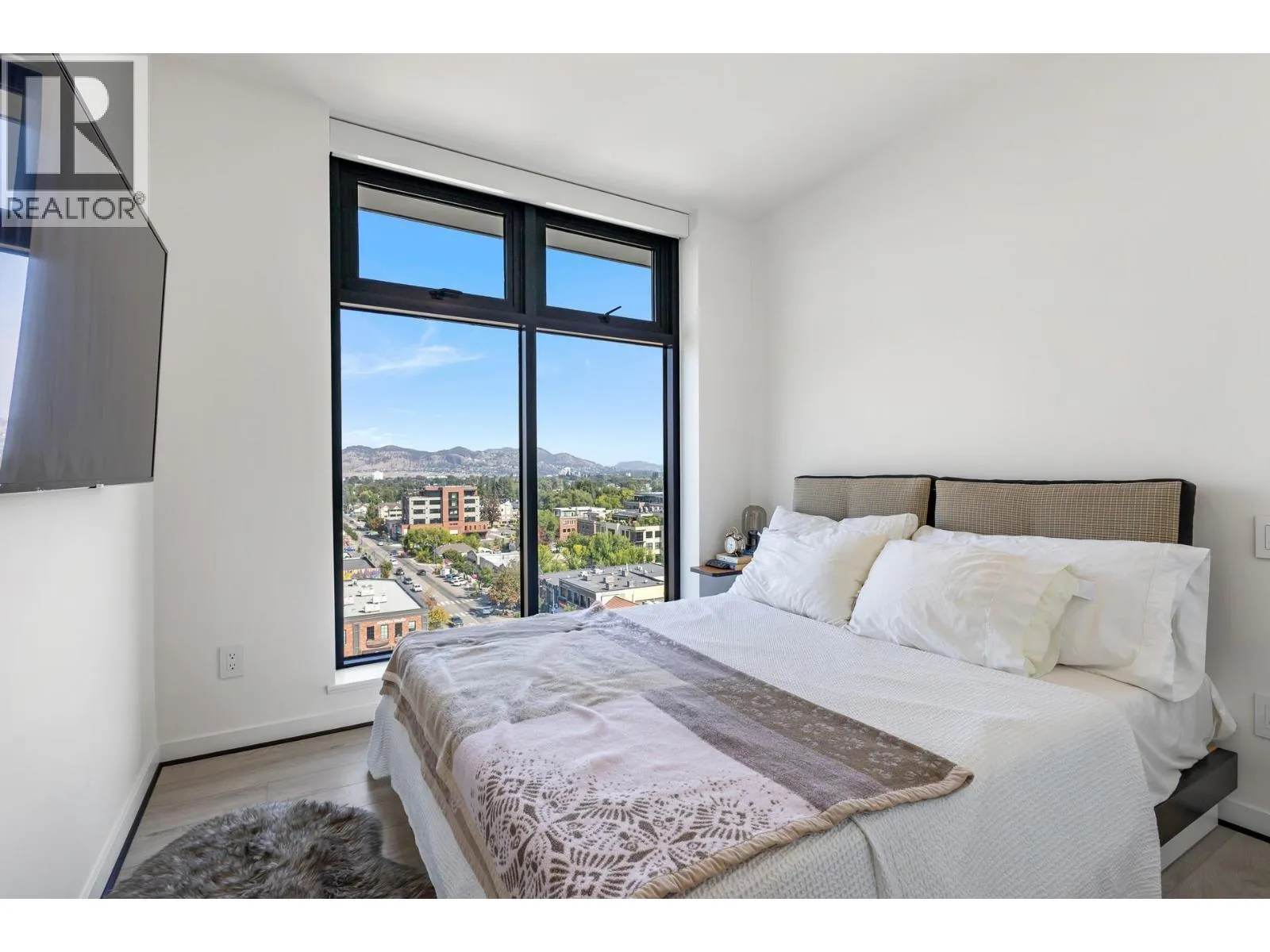 Beautiful luxury condo at Sopa Square in the vibrant South Pandosy community with $150+K in upgrades and just steps to Okanagan Lake. Bright and open 3 bedroom floor plan with a flex space that could be used as an office or a den. With floor to ceiling windows in the main living space, this home is flooded with an abundance of natural light. Enjoy the utmost in outdoor living on the covered wrap-around patio that overlooks the city and offers beautiful views of the lake. Attention to detail is evident at every turn. This home has been well finished throughout and offers stylish updates including designer lighting, feature walls, and custom wainscoting in the primary bedroom. The gourmet kitchen will delight any culinary enthusiast with a stainless-steel appliance package including a Wolf gas range. Entertain with ease at the large centre island. An electric fireplace in the living room creates a cozy ambiance. The primary bedroom boasts a 4-piece en suite and walk through closet. Two additional bedrooms share an adjacent bath. Residents of SOPA will enjoy the resort style amenities including a fitness centre, outdoor pool & hot tub, and sun-soaked terrace. A new waterfront city park is planned to open this summer. Stroll the Abbott St. Corridor or the Pandosy Village amidst boutique shopping, fine restaurants & trendy cafesâtruly a vibrant community within a city. (id:27476)