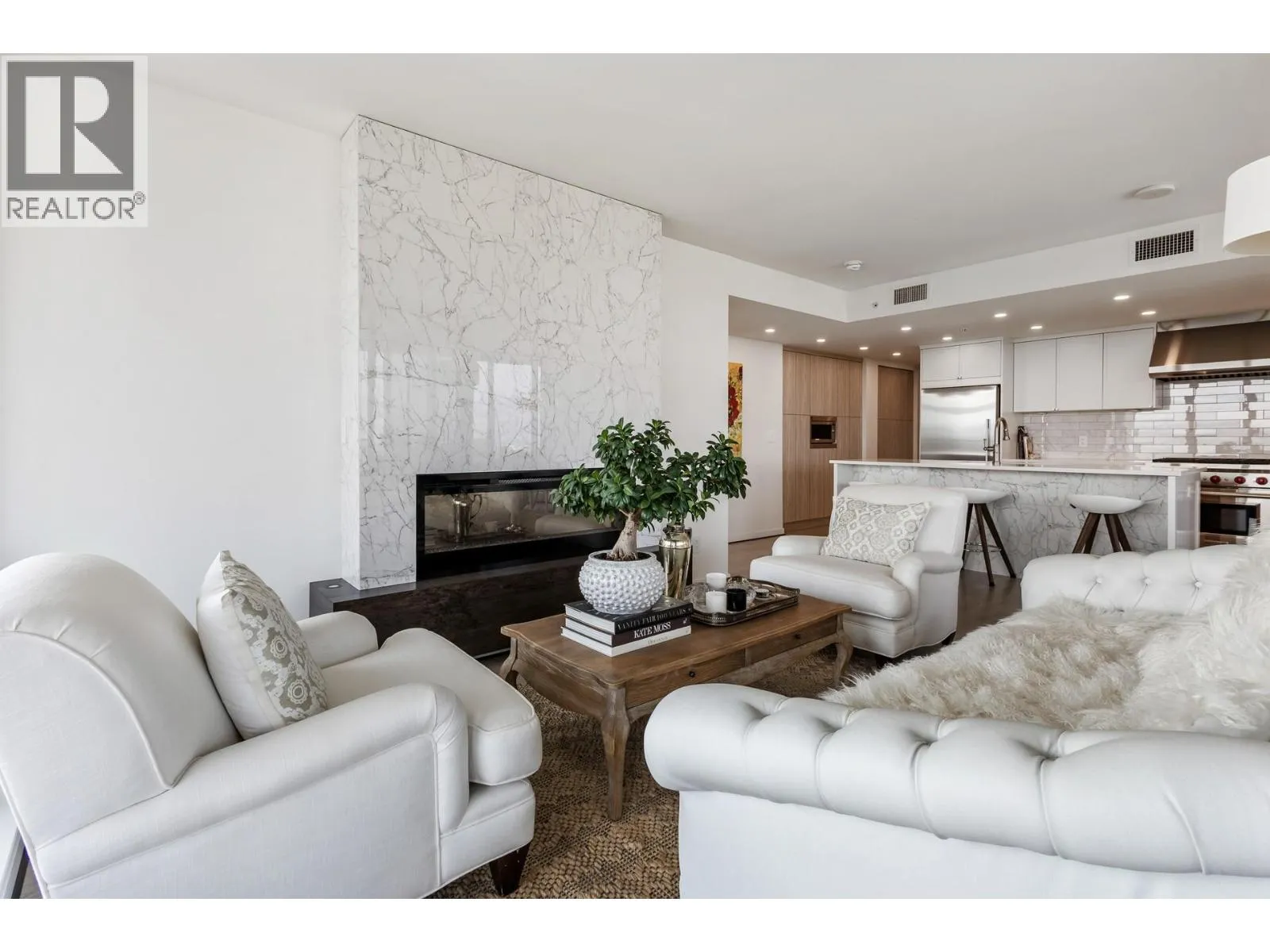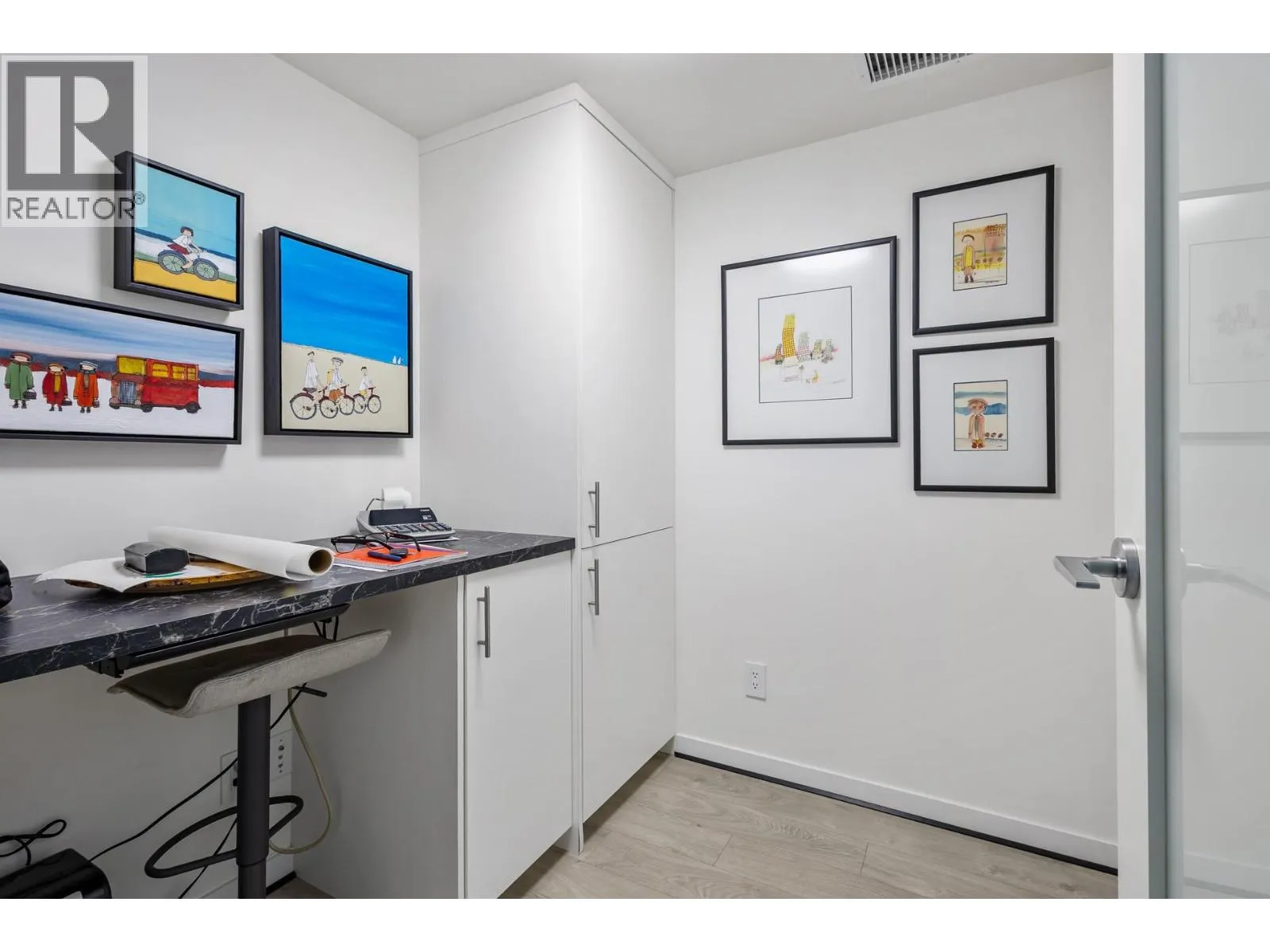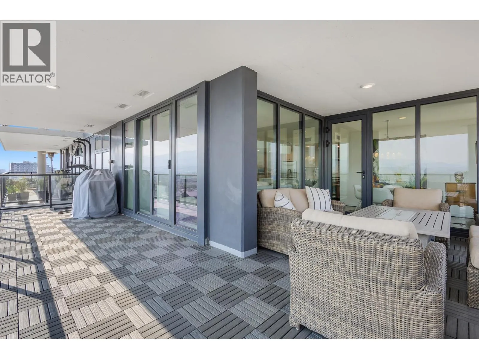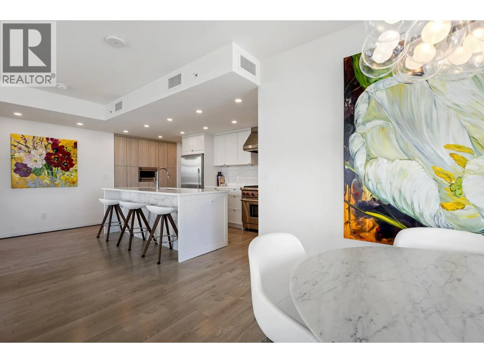 Beautiful luxury condo at Sopa Square in the vibrant South Pandosy community with $150+K in upgrades and just steps to Okanagan Lake. Bright and open 3 bedroom floor plan with a flex space that could be used as an office or a den. With floor to ceiling windows in the main living space, this home is flooded with an abundance of natural light. Enjoy the utmost in outdoor living on the covered wrap-around patio that overlooks the city and offers beautiful views of the lake. Attention to detail is evident at every turn. This home has been well finished throughout and offers stylish updates including designer lighting, feature walls, and custom wainscoting in the primary bedroom. The gourmet kitchen will delight any culinary enthusiast with a stainless-steel appliance package including a Wolf gas range. Entertain with ease at the large centre island. An electric fireplace in the living room creates a cozy ambiance. The primary bedroom boasts a 4-piece en suite and walk through closet. Two additional bedrooms share an adjacent bath. Residents of SOPA will enjoy the resort style amenities including a fitness centre, outdoor pool & hot tub, and sun-soaked terrace. A new waterfront city park is planned to open this summer. Stroll the Abbott St. Corridor or the Pandosy Village amidst boutique shopping, fine restaurants & trendy cafesâtruly a vibrant community within a city. (id:27476)