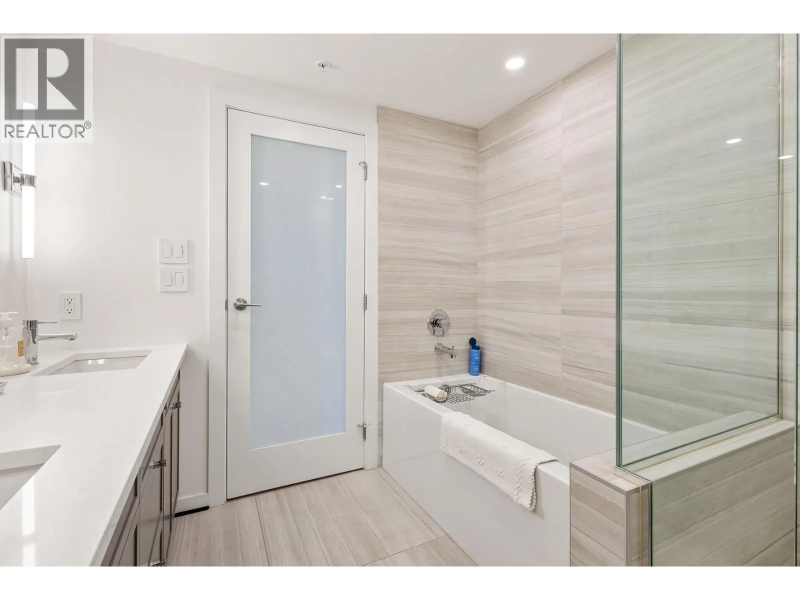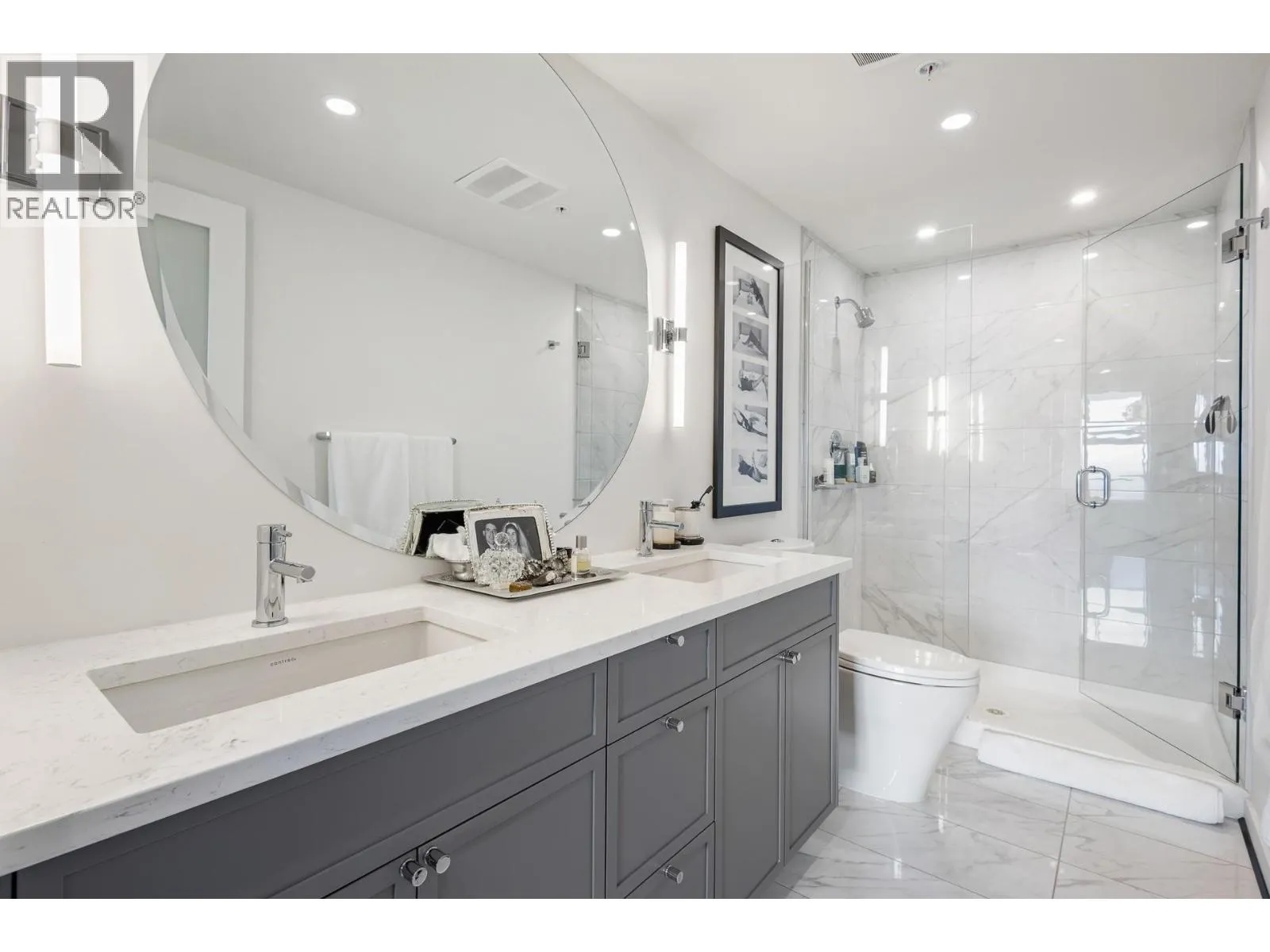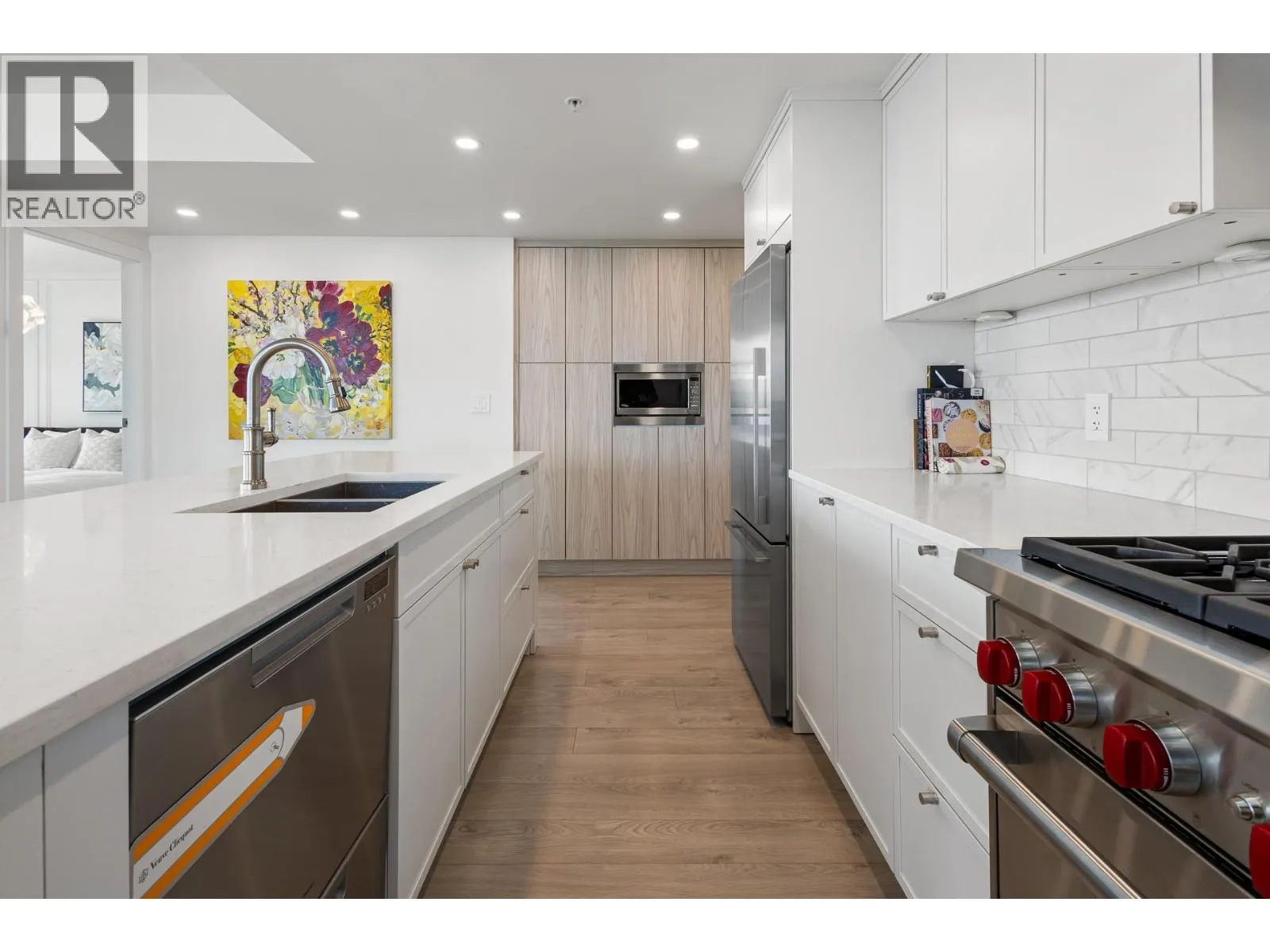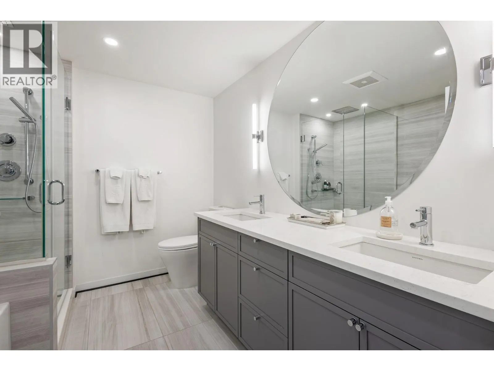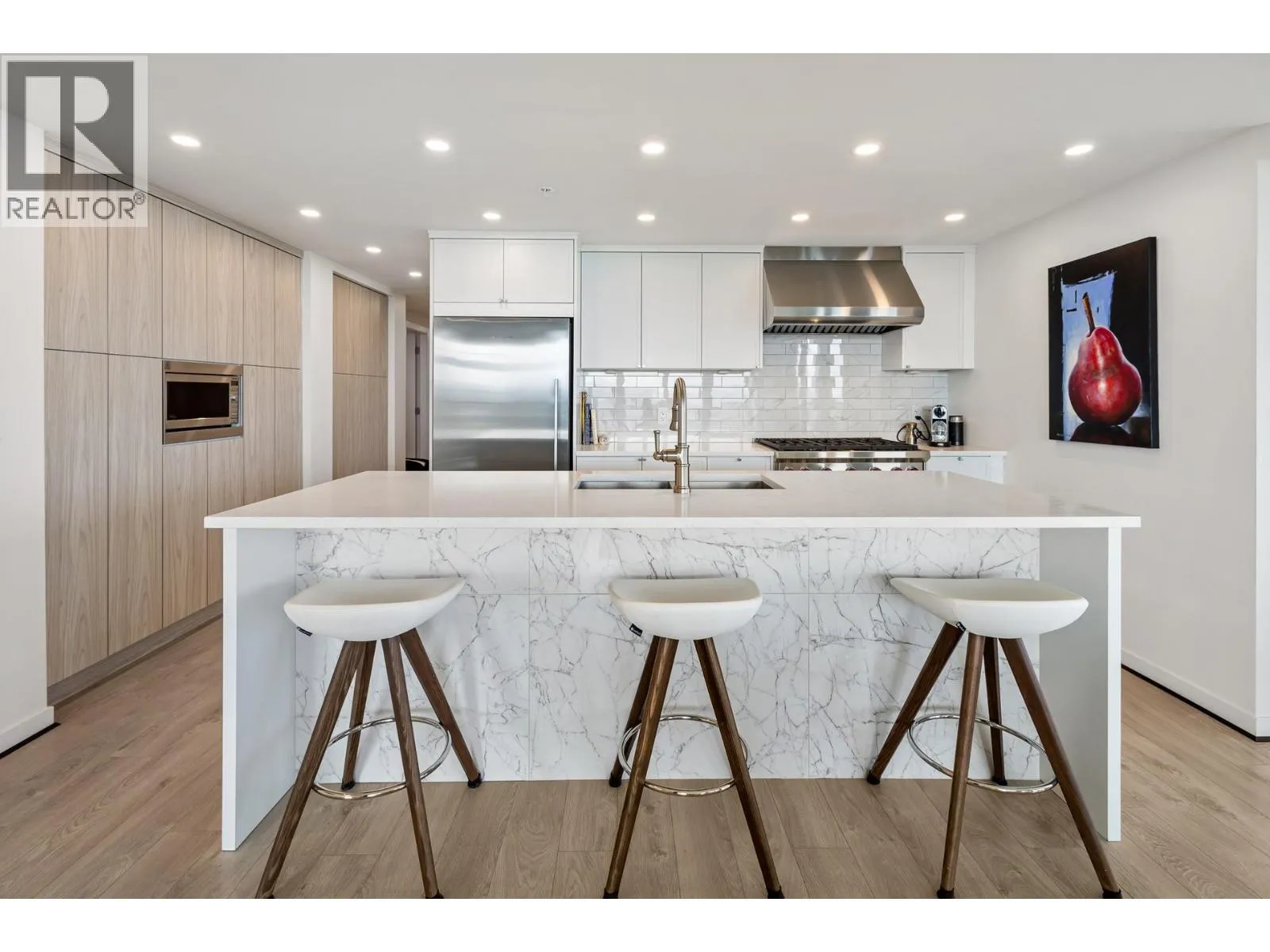 Beautiful luxury condo at Sopa Square in the vibrant South Pandosy community with $150+K in upgrades and just steps to Okanagan Lake. Bright and open 3 bedroom floor plan with a flex space that could be used as an office or a den. With floor to ceiling windows in the main living space, this home is flooded with an abundance of natural light. Enjoy the utmost in outdoor living on the covered wrap-around patio that overlooks the city and offers beautiful views of the lake. Attention to detail is evident at every turn. This home has been well finished throughout and offers stylish updates including designer lighting, feature walls, and custom wainscoting in the primary bedroom. The gourmet kitchen will delight any culinary enthusiast with a stainless-steel appliance package including a Wolf gas range. Entertain with ease at the large centre island. An electric fireplace in the living room creates a cozy ambiance. The primary bedroom boasts a 4-piece en suite and walk through closet. Two additional bedrooms share an adjacent bath. Residents of SOPA will enjoy the resort style amenities including a fitness centre, outdoor pool & hot tub, and sun-soaked terrace. A new waterfront city park is planned to open this summer. Stroll the Abbott St. Corridor or the Pandosy Village amidst boutique shopping, fine restaurants & trendy cafesâtruly a vibrant community within a city. (id:27476)