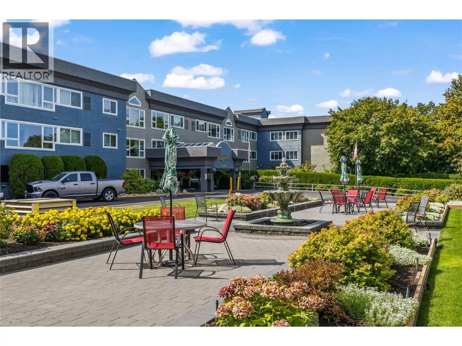 Experience the charm of this 2-bedroom, 2-bathroom ground floor unit, ideal for those seeking a vibrant community lifestyle. With 1,186 sq ft of living space, youâll enjoy year-round views of beautifully landscaped grounds.The kitchen boasts new appliances including high end fridge and induction stove, with extra cabinets and a movable island added for functionality. Newer furnace, AC, and washer/dryer (circa 2021), ensure modern comfort and convenience. Located in the renowned Wedgewood complex, one of the most desirable 55+ communities, youâll find a welcoming atmosphere and a lively community feel. Situated just steps from Capri Mall, enjoy effortless access to grocery stores, bakeries, and specialty shops for all your daily needs. The Wedgewood offers a variety of amenities, including coffee groups, evening dining options, a billiards room, library, exercise room, workshop, and craft and hobbies area. This wheelchair-friendly residence ensures accessibility for everyone, and the no-pet policy contributes to a quiet and serene environment. Secure parking and storage add to your convenience and peace of mind. Youâre also just a short distance from the beach and Okanagan Lake, perfect for sunny days and picturesque views. Donât miss the opportunity to be part of this fantastic community, offering a superb blend of location, lifestyle, and amenities. Schedule your viewing today and explore all that this wonderful complex has to offer! (id:27476)