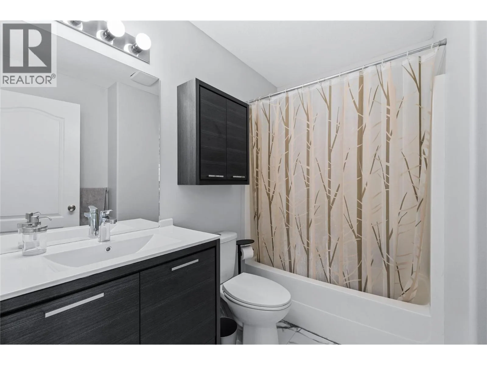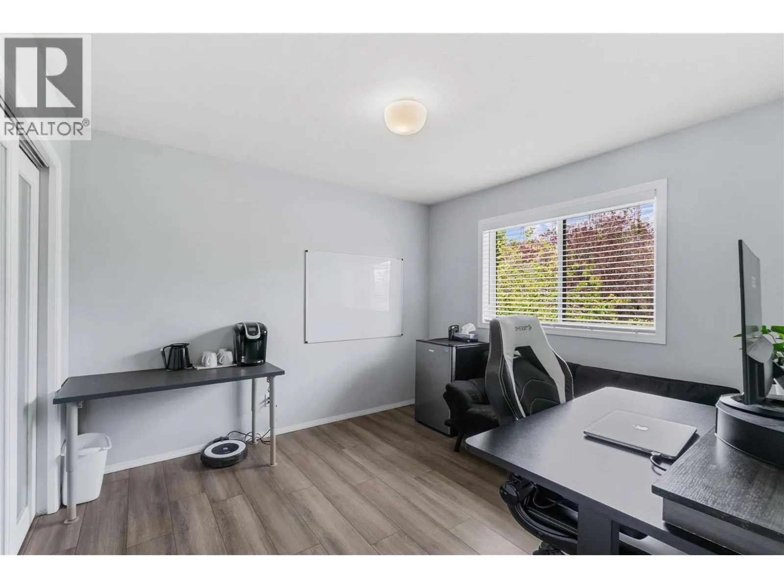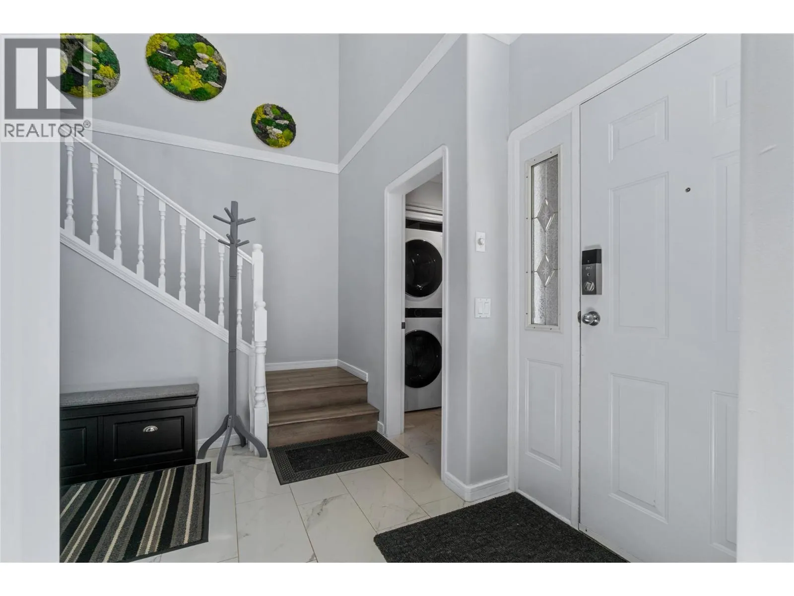 Bright and beautifully updated, this 3-bedroom, 2.5-bath home offers a modern design and a functional layout. The soaring foyer with a stunning staircase sets the tone for the open main level, featuring a sunlit kitchen with a large bay window, abundant cabinetry, sleek white countertops, and stainless steel appliances. Perfect for entertaining, the kitchen flows into the dining and living areas, complete with a cozy fireplace and sliding doors to a private patio surrounded by mature landscaping and built-in planters. The main-floor primary suite includes a walk-through closet and 3-piece ensuite, plus a powder room and laundry for convenience. Upstairs, a bright loft-style office overlooks the greenery, along with two bedrooms and a full bath. Enjoy an attached single garage and driveway parkingâall in a desirable Glenmore location, just minutes from UBCO, the airport, and walking distance to shops and cafe's. (id:27476)