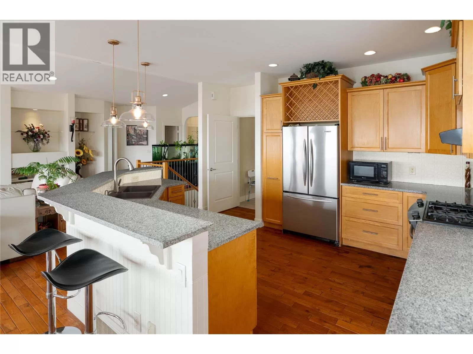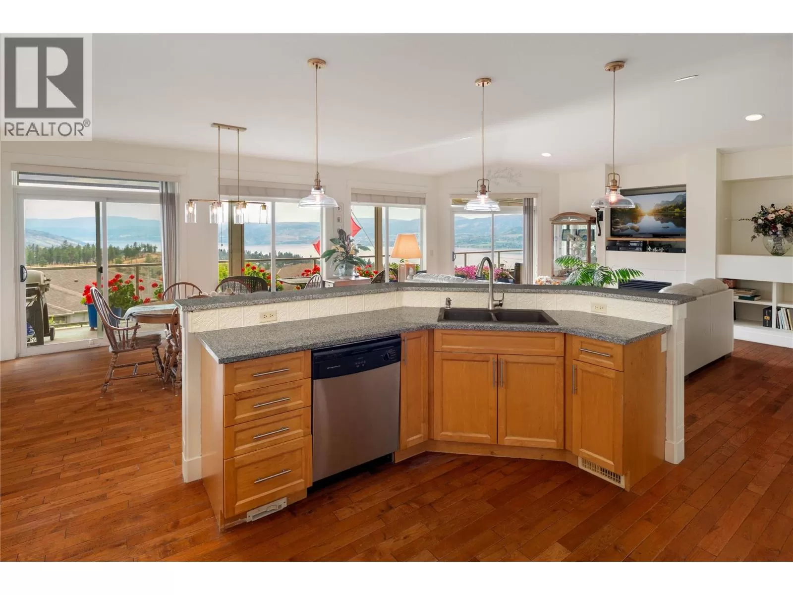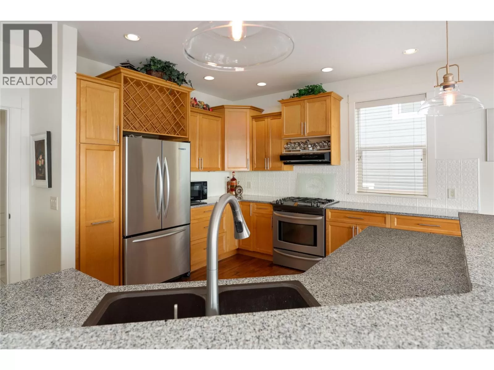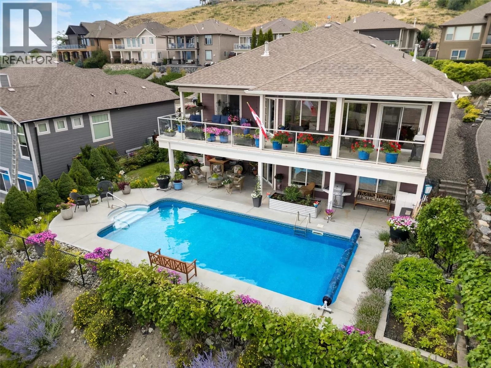 Welcome to 860 Kuipers Crescent! Located in one of the most desirable and sought after areas in the Upper Mission â known for its stunning panoramic views, family friendly atmosphere, and access to the outdoors â this immaculate 4-bedroom, 2.5-bathroom home is situated on a 0.20-acre lot and includes 3063 sq. Ft of living space with a huge oversized balcony offering breathtaking views of Okanagan Lake, and the heated in-ground pool below. The main level features a modern design with vaulted ceilings, bright open living spaces, and calming neutral colours throughout. The kitchen is equipped with solid wood cabinetry, granite countertops, and stainless-steel appliances, including gas range. The primary bedroom offers a luxurious 5-piece ensuite with a large soaker tub perfectly positioned to take in the stunning views. This level also includes a second bedroom (ideal as an office or den), a powder room, and a spacious mudroom/laundry area. The lower level features a second kitchen and huge recreation room with direct access to the pool deck. The lower level is finished with two additional bedrooms, bathroom and mechanical room. Located in the Upper Mission, this home is just a short drive from the newly built Mission Village at the Ponds, home to a range of convenient amenities like Save-On-Foods, Shoppers Drug Mart and Starbucks. Enjoy nearby world-class wineries as well, including CedarCreek Estate Winery and Martinâs Lane Winery. New carpets throughout. (id:27476)