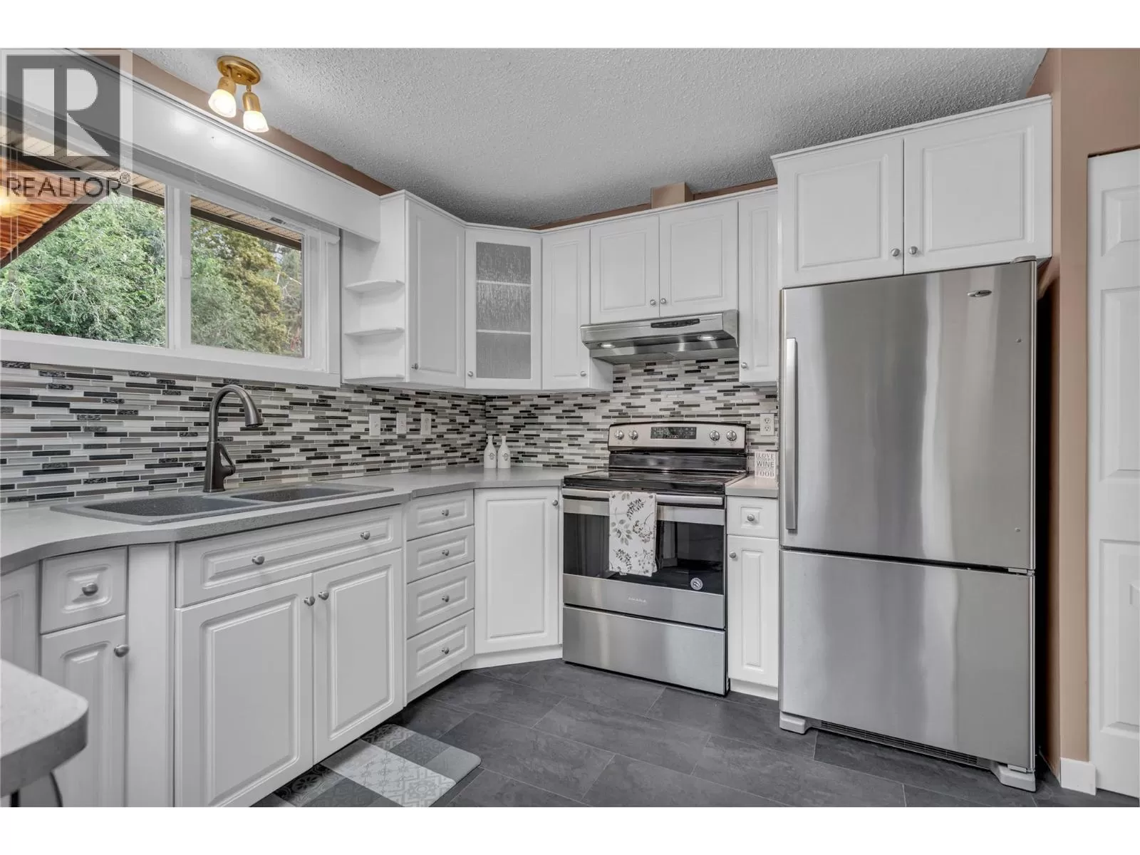 ** Suite Potential** Fantastic opportunity to make this your own. This 3 bed, 2 bath home is situated on 0.21 acres zoned MF1 (Multi Family). A solid home that could be suited as there is an outside downstairs entrance and room for a second kitchen. Space for laundry. A lovely bright home with skylights in the kitchen and bathroom, with granite vanity upgrade. Newer windows upstairs and a cozy electric fireplace with surround. Stainless steel appliances in the kitchen, sliding doors onto the deck overlooking the large flat yard, perfect for entertaining, gardening or play. Central air/forced air, hand scraped laminate flooring upstairs. Situated in a quiet street close to school. shops, the YMCA and all amenities. 40 minutes to Big White and 20 minutes to downtown Kelowna. Offering great value, stellar location. Contact your Realtor today for your private showing. Vacant and ready to go. (id:27476)