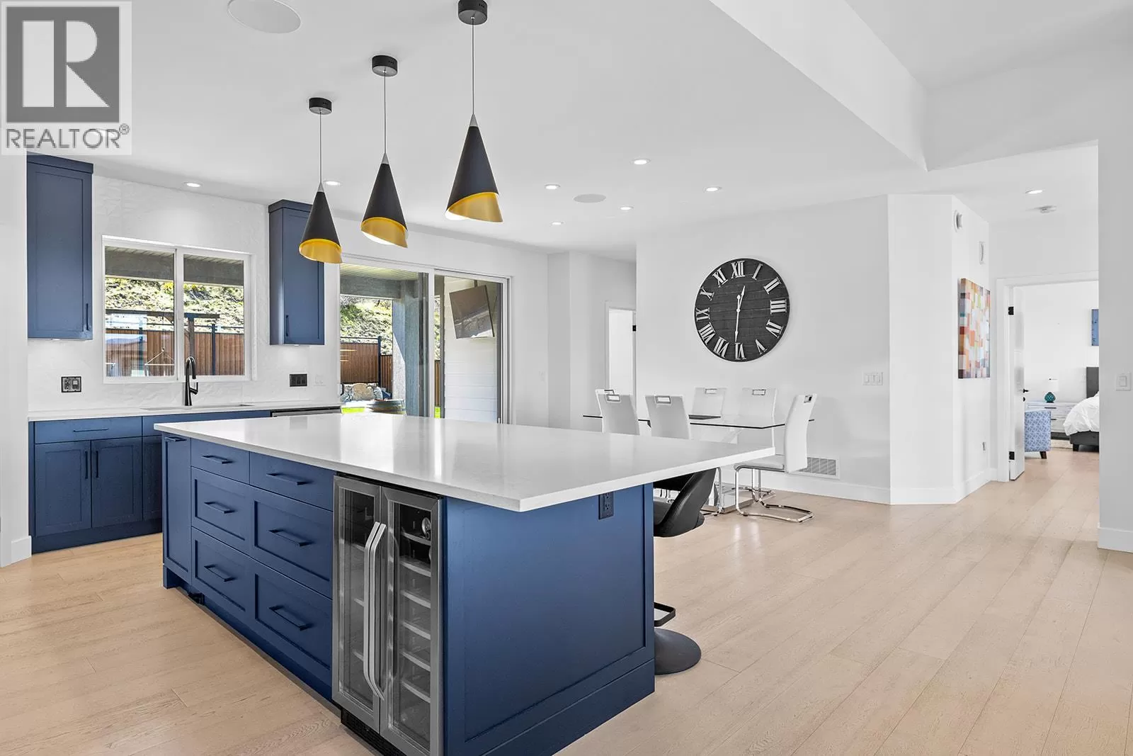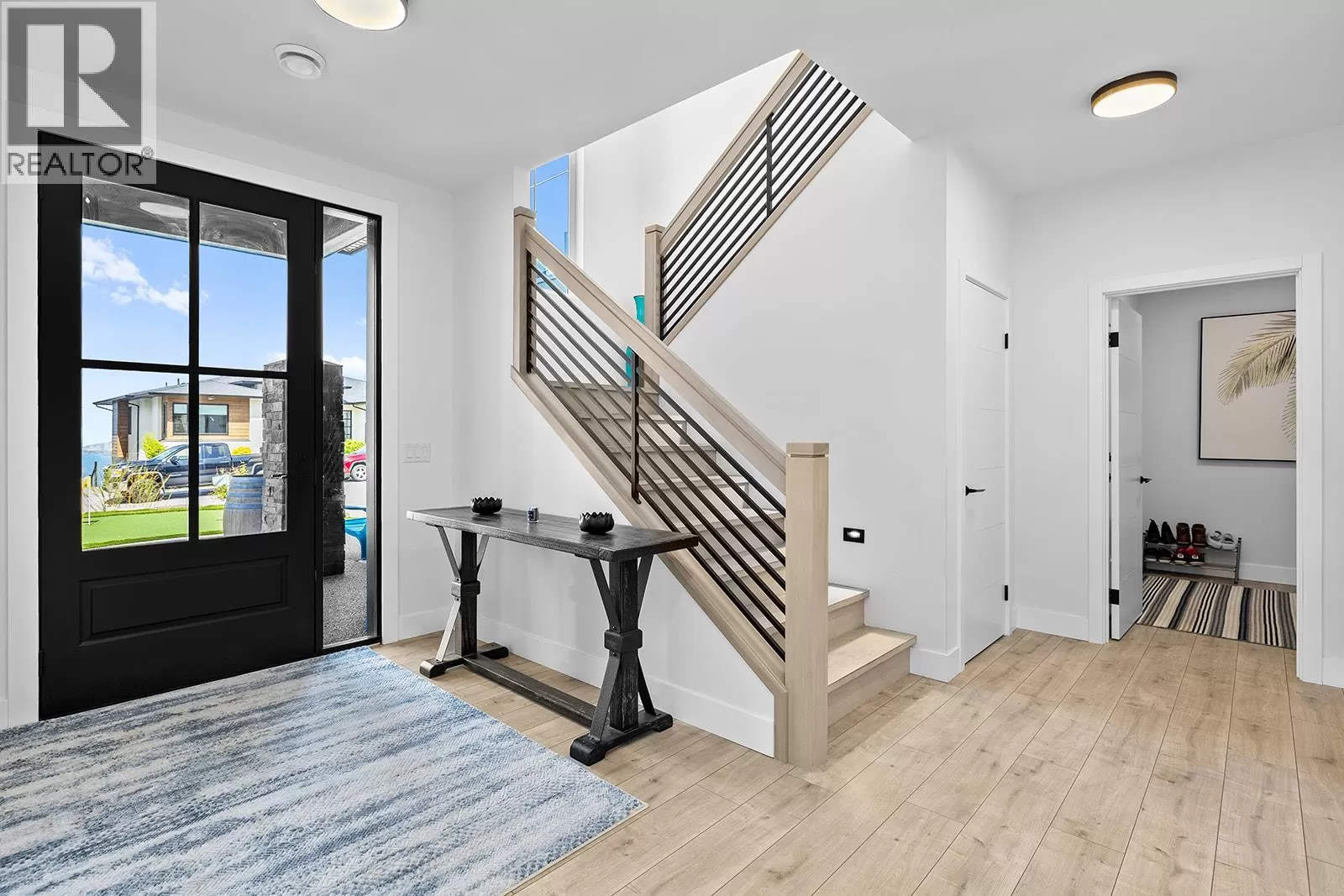 Welcome to this custom single-family lake view home in the heart of Kettle Valley, offering a blend of elegance and functionality. Boasting 4 bedrooms and 4 bathrooms, this newer home is designed for modern living and entertaining. Step inside the open-concept floor plan showcasing a chefâs kitchen outfitted with stainless steel appliances, sleek finishes, and ample space for hosting gatherings. The primary suite is a retreat, with a walk-in closet and spa-inspired ensuite with dual sinks, a makeup vanity, soaker tub, and steam shower. Enjoy lake and city views from the expansive front-facing deck, ideal for sunset entertaining. Or unwind in your landscaped backyard complete with a private hot tub, fit pit, hammock swings, and cook space, perfect for Okanagan summers. This home also features a legal 1 bedroom suite with a separate entrance and laundry, offering flexibility for extended family or passive income. A double attached garage and generous driveway provide ample parking options. Located in park heaven, youâll find 4 parks and 5 trails within easy walking distance. Families will appreciate the top-tier school catchment: Chute Lake Elementary, Canyon Falls Middle School, and Okanagan Mission Secondary, with a full Kâ12 French Immersion option only 10 mins away. Conveniently close to transit, local amenities, and the regionâs most iconic attractions like Summerhill Winery, this home offers the complete Okanagan lifestyle. Simply move in, and enjoy Kelowna Life. (id:27476)