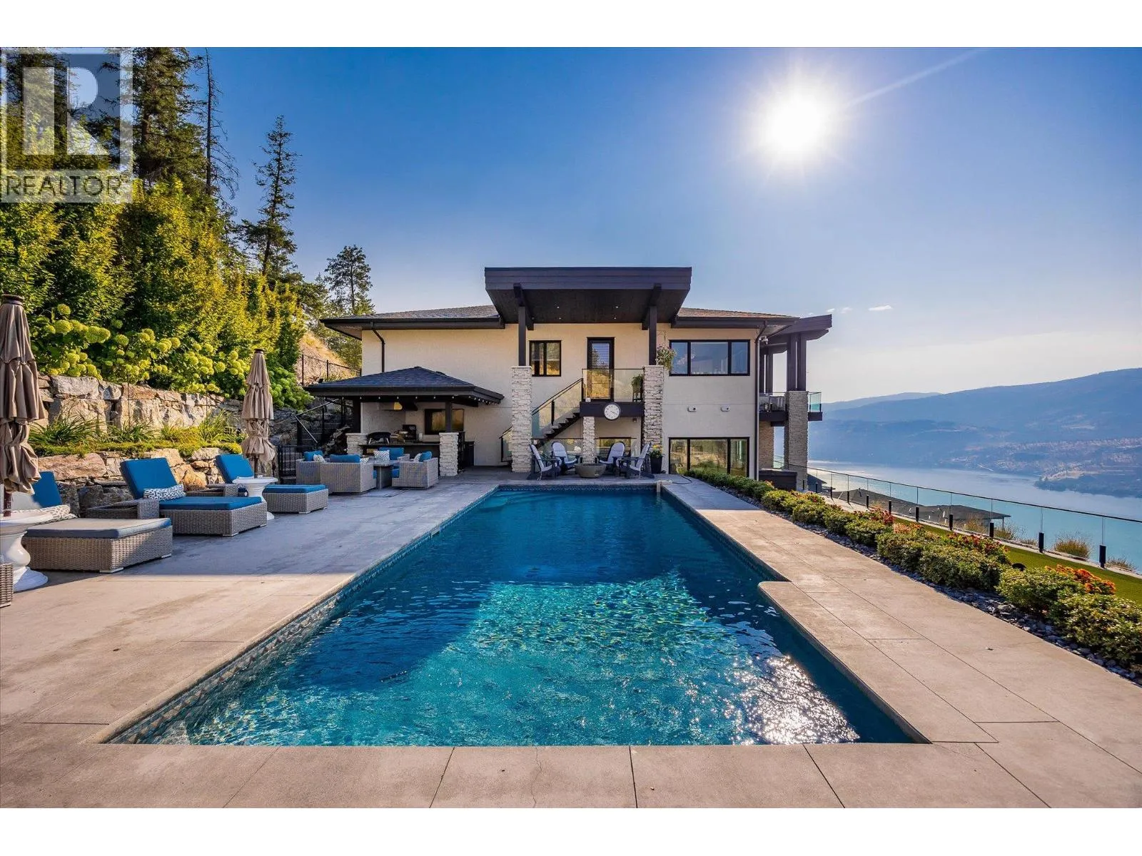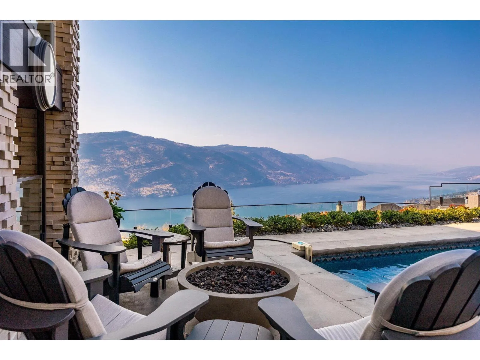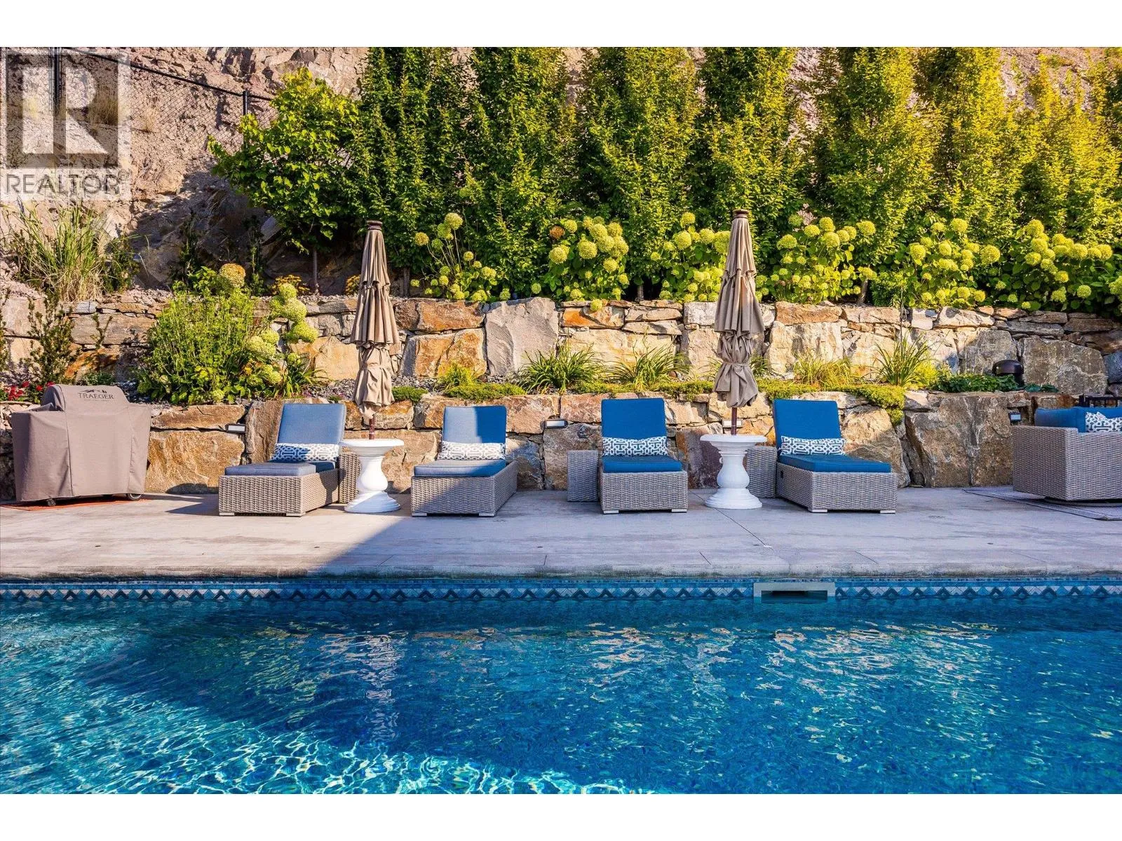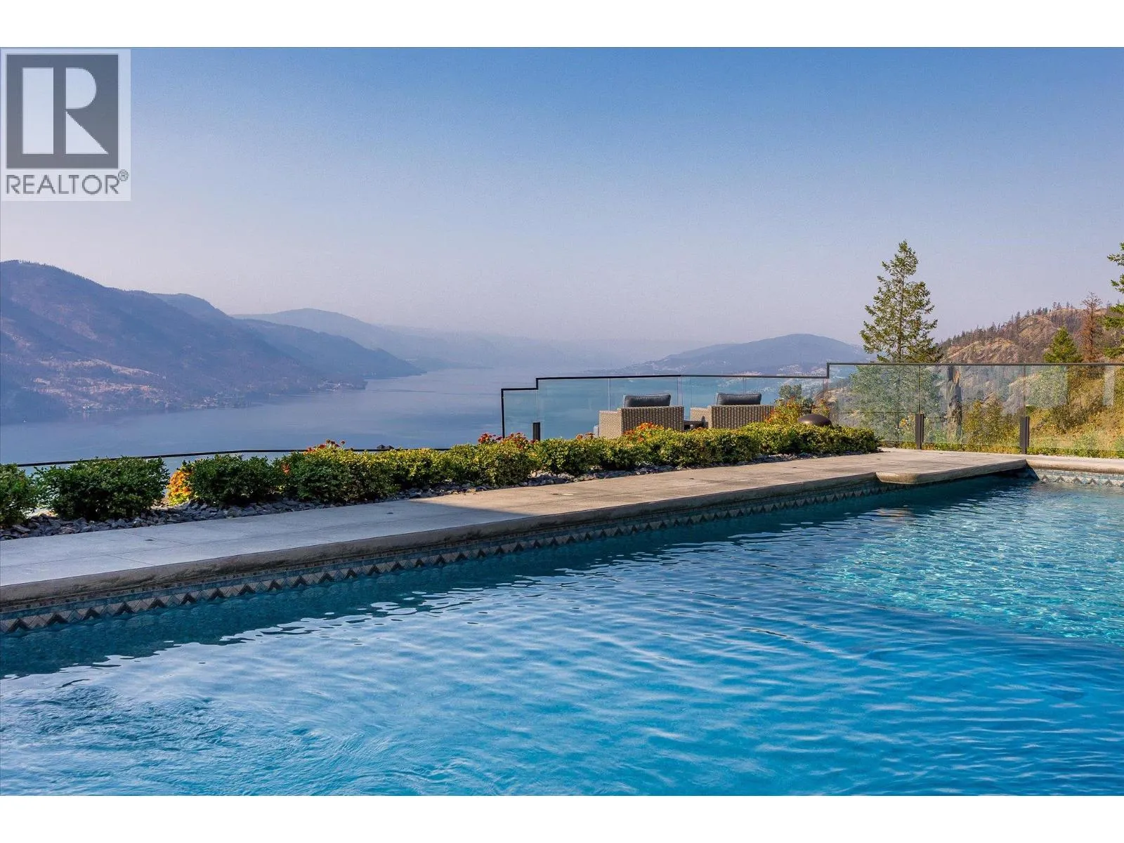 Located in one of Kelownaâs most desirable neighborhoods, this property captures 180-degree panoramic views of the lake and mountains. Set on a quiet cul-de-sac, it offers rare privacy while remaining just minutes from downtown, wineries, golf, restaurants, and all the best of Okanagan living. The open-concept main level seamlessly connects indoor and outdoor living. A chefâs kitchen, designed by Carolyn Walsh, features a Thermador six burner range, two panelled fridges and dishwashers, a panelled freezer along with a striking two-tone island. A new working pantry and custom wine room elevate the homeâs entertaining potential. Two primary suites provide private retreats with spectacular lake views. The main-level suite includes a fireplace sitting area and spa-inspired ensuite with a curbless steam shower. The lower-level suite mirrors the same luxury finishes, offering flexibility for guests or family. Designed for entertaining, the lower level also boasts a twelve seat theatre, wet bar, and recreation space, with a separate entrance for guests. Lower level radiant in-floor heating keeps every space warm and inviting. Resort-style outdoor living awaits with a saltwater pool, pool bath, artificial turf yard, and an outdoor kitchen - ideal for summer gatherings. Combining luxury, functionality, and effortless living, this home also grants direct access to Knox Mountain Park and Kelownaâs outdoor lifestyle. With its privacy and breathtaking views, this property delivers the quintessential Okanagan experience. (id:27476)