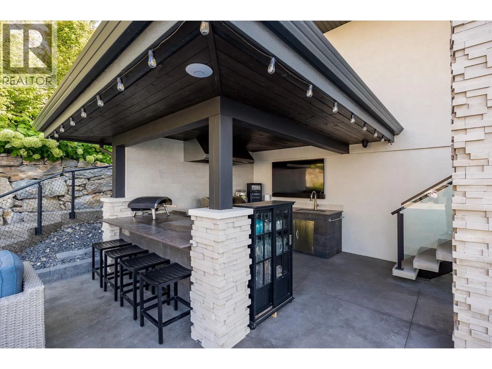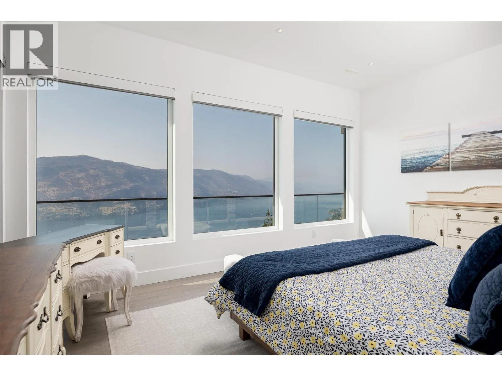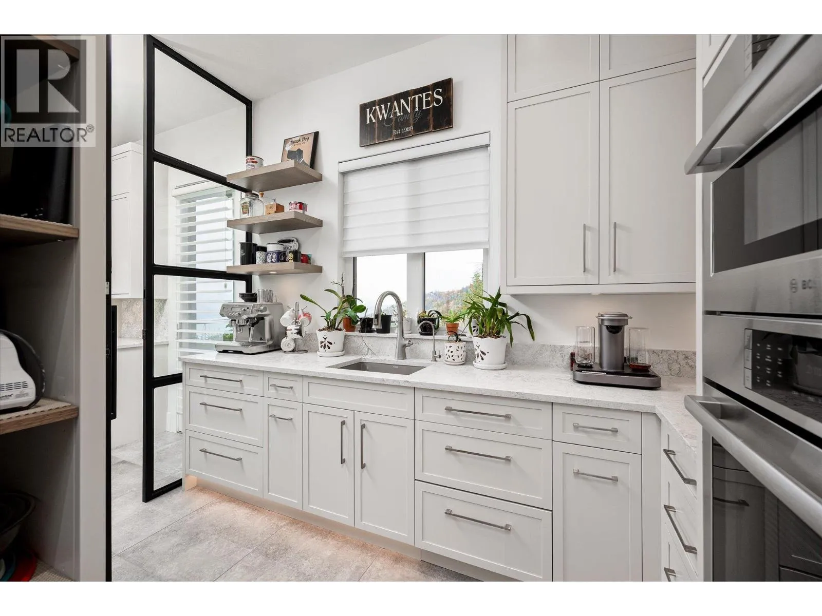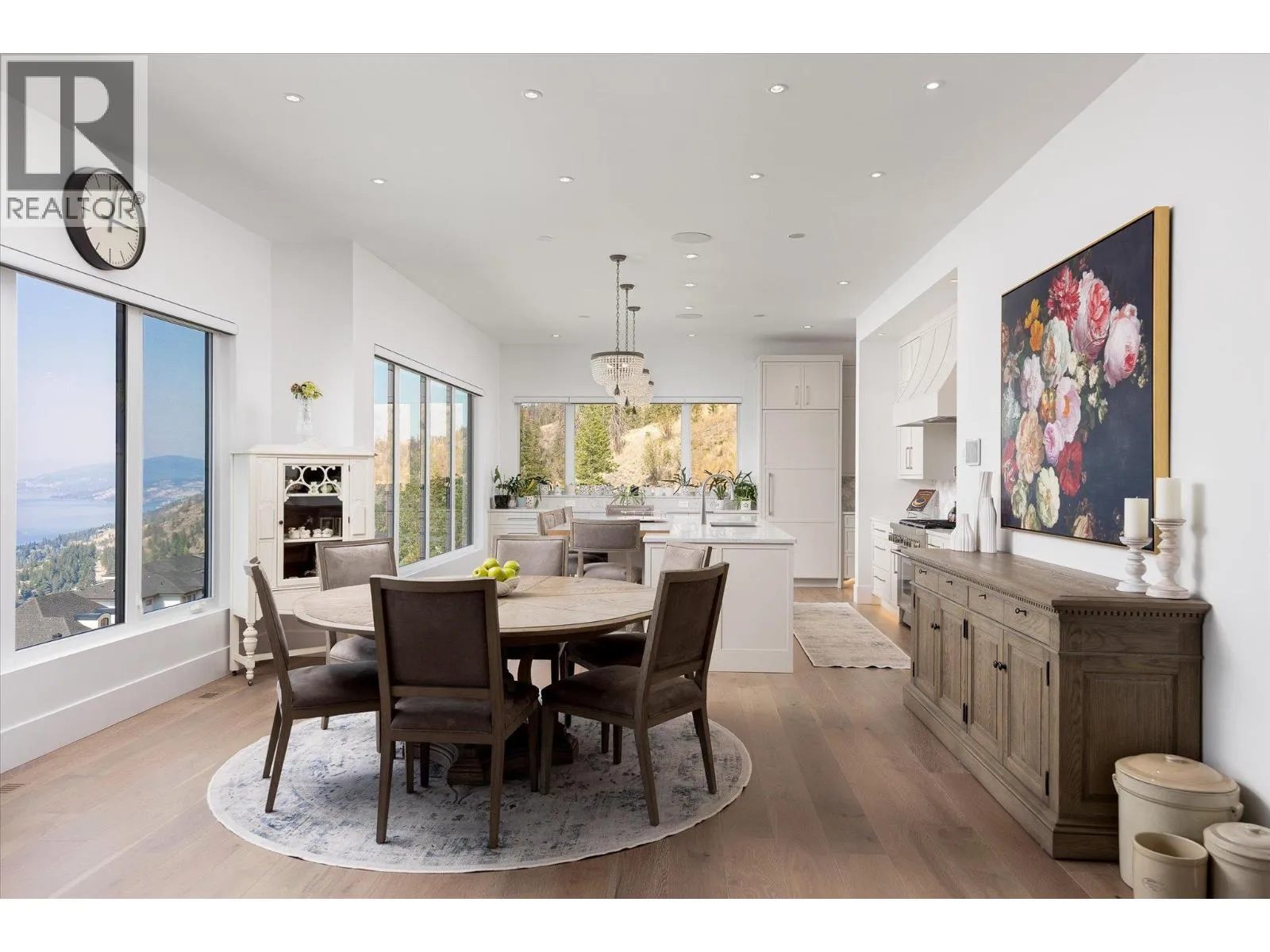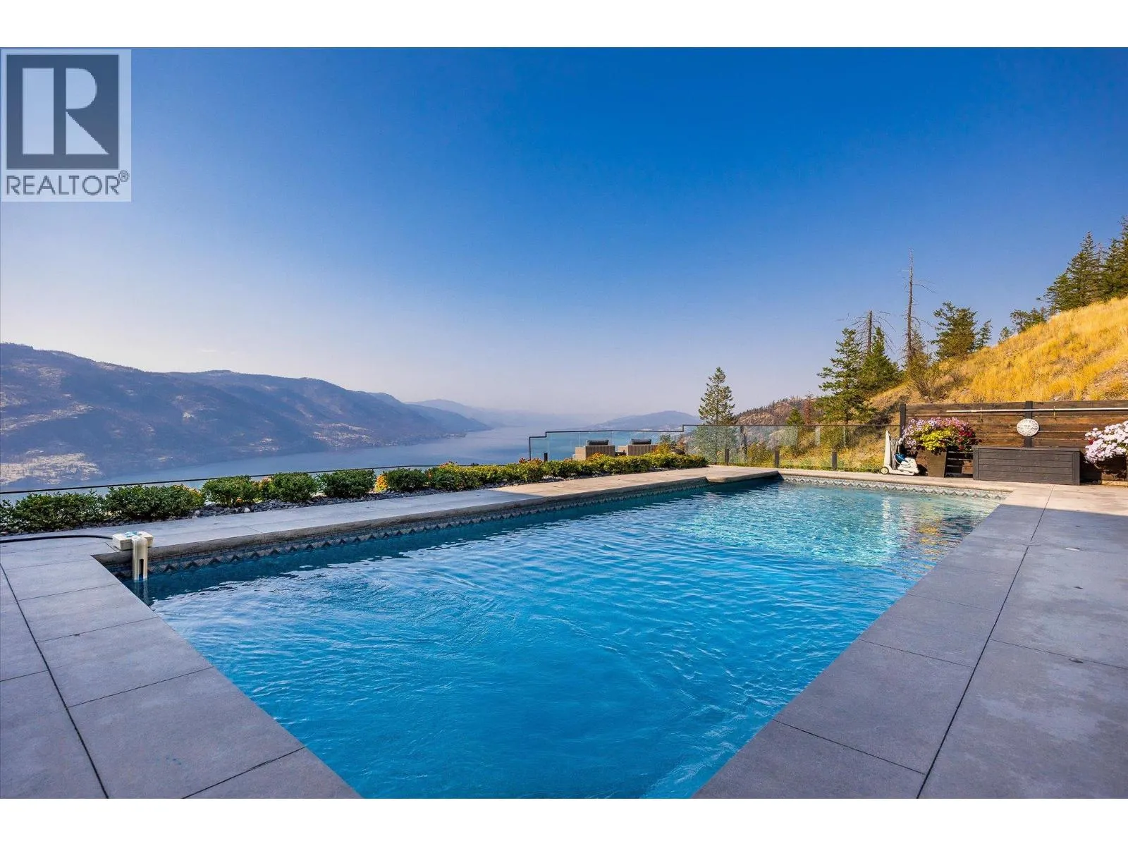 Located in one of Kelownaâs most desirable neighborhoods, this property captures 180-degree panoramic views of the lake and mountains. Set on a quiet cul-de-sac, it offers rare privacy while remaining just minutes from downtown, wineries, golf, restaurants, and all the best of Okanagan living. The open-concept main level seamlessly connects indoor and outdoor living. A chefâs kitchen, designed by Carolyn Walsh, features a Thermador six burner range, two panelled fridges and dishwashers, a panelled freezer along with a striking two-tone island. A new working pantry and custom wine room elevate the homeâs entertaining potential. Two primary suites provide private retreats with spectacular lake views. The main-level suite includes a fireplace sitting area and spa-inspired ensuite with a curbless steam shower. The lower-level suite mirrors the same luxury finishes, offering flexibility for guests or family. Designed for entertaining, the lower level also boasts a twelve seat theatre, wet bar, and recreation space, with a separate entrance for guests. Lower level radiant in-floor heating keeps every space warm and inviting. Resort-style outdoor living awaits with a saltwater pool, pool bath, artificial turf yard, and an outdoor kitchen - ideal for summer gatherings. Combining luxury, functionality, and effortless living, this home also grants direct access to Knox Mountain Park and Kelownaâs outdoor lifestyle. With its privacy and breathtaking views, this property delivers the quintessential Okanagan experience. (id:27476)