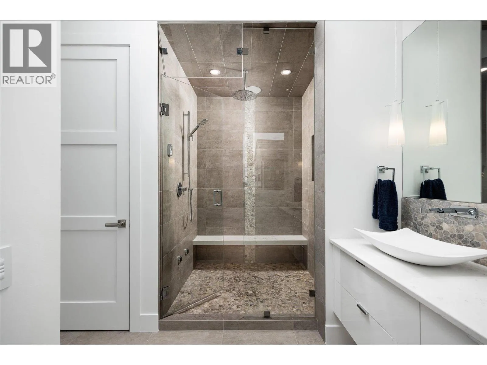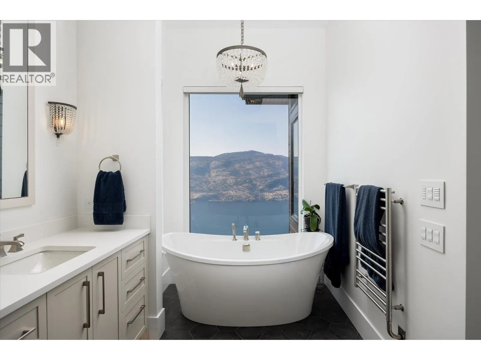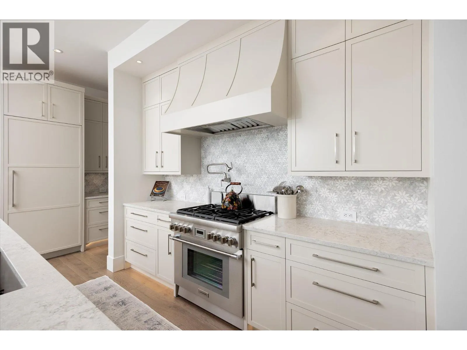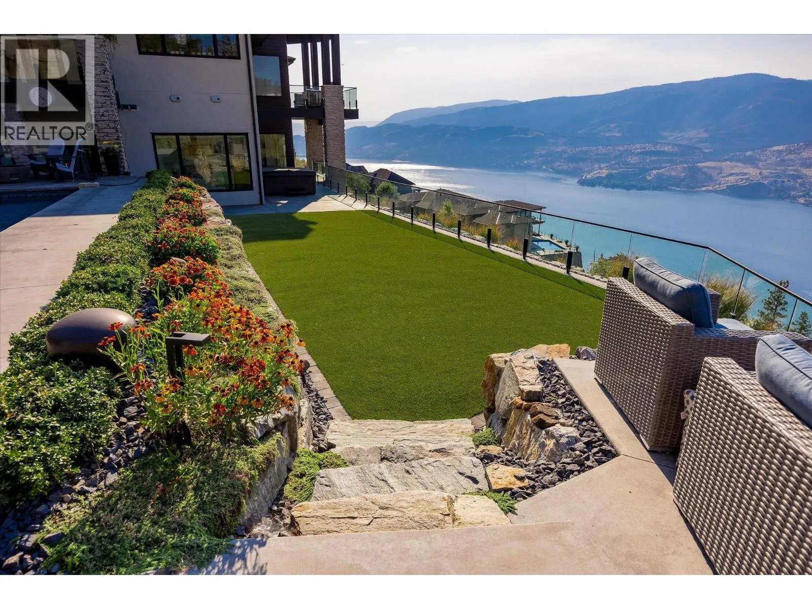 Located in one of Kelownaâs most desirable neighborhoods, this property captures 180-degree panoramic views of the lake and mountains. Set on a quiet cul-de-sac, it offers rare privacy while remaining just minutes from downtown, wineries, golf, restaurants, and all the best of Okanagan living. The open-concept main level seamlessly connects indoor and outdoor living. A chefâs kitchen, designed by Carolyn Walsh, features a Thermador six burner range, two panelled fridges and dishwashers, a panelled freezer along with a striking two-tone island. A new working pantry and custom wine room elevate the homeâs entertaining potential. Two primary suites provide private retreats with spectacular lake views. The main-level suite includes a fireplace sitting area and spa-inspired ensuite with a curbless steam shower. The lower-level suite mirrors the same luxury finishes, offering flexibility for guests or family. Designed for entertaining, the lower level also boasts a twelve seat theatre, wet bar, and recreation space, with a separate entrance for guests. Lower level radiant in-floor heating keeps every space warm and inviting. Resort-style outdoor living awaits with a saltwater pool, pool bath, artificial turf yard, and an outdoor kitchen - ideal for summer gatherings. Combining luxury, functionality, and effortless living, this home also grants direct access to Knox Mountain Park and Kelownaâs outdoor lifestyle. With its privacy and breathtaking views, this property delivers the quintessential Okanagan experience. (id:27476)
