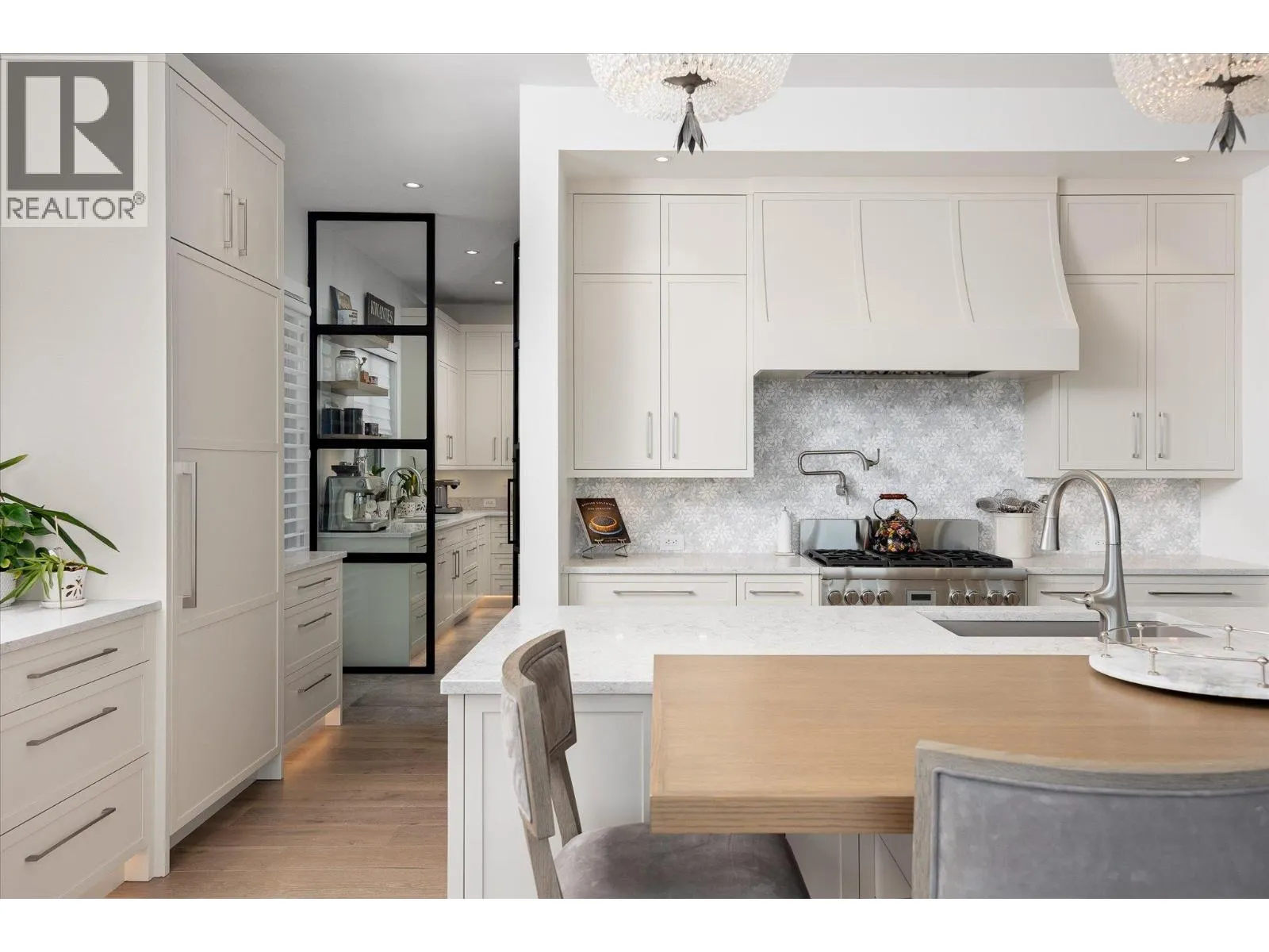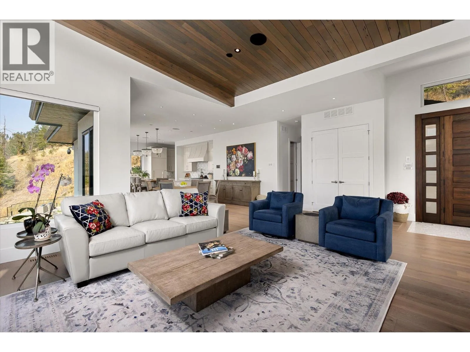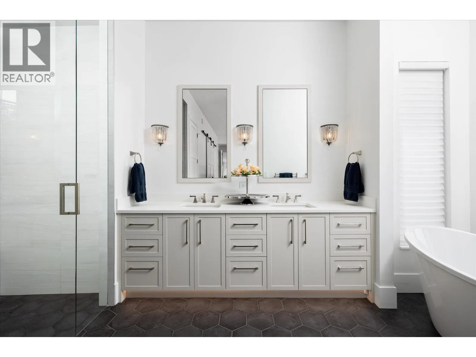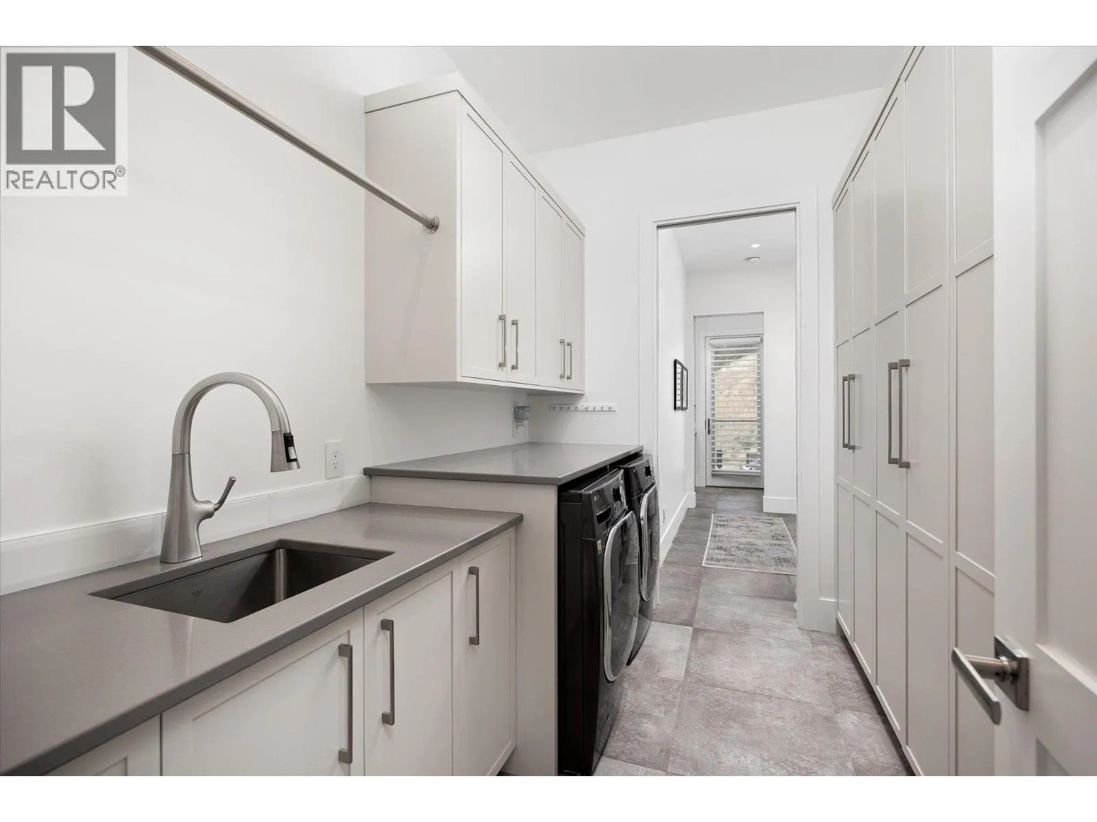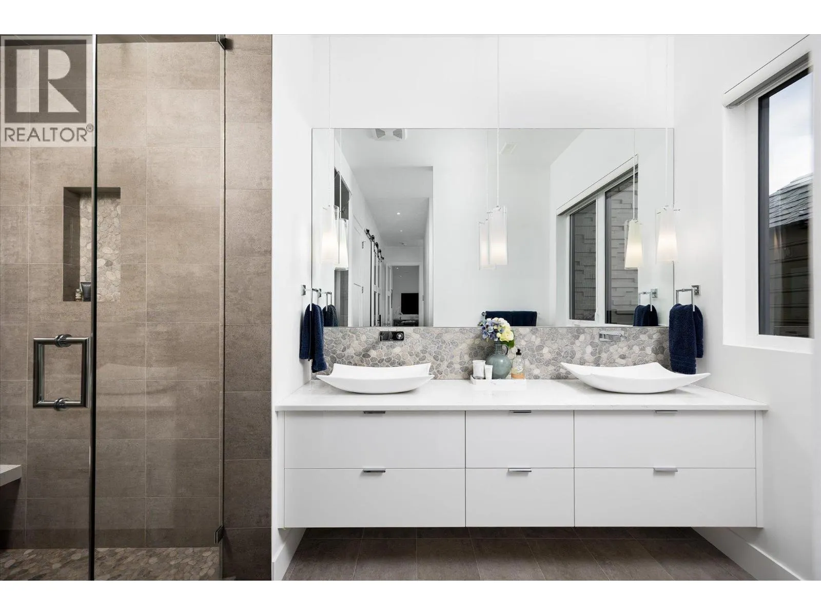 Located in one of Kelownaâs most desirable neighborhoods, this property captures 180-degree panoramic views of the lake and mountains. Set on a quiet cul-de-sac, it offers rare privacy while remaining just minutes from downtown, wineries, golf, restaurants, and all the best of Okanagan living. The open-concept main level seamlessly connects indoor and outdoor living. A chefâs kitchen, designed by Carolyn Walsh, features a Thermador six burner range, two panelled fridges and dishwashers, a panelled freezer along with a striking two-tone island. A new working pantry and custom wine room elevate the homeâs entertaining potential. Two primary suites provide private retreats with spectacular lake views. The main-level suite includes a fireplace sitting area and spa-inspired ensuite with a curbless steam shower. The lower-level suite mirrors the same luxury finishes, offering flexibility for guests or family. Designed for entertaining, the lower level also boasts a twelve seat theatre, wet bar, and recreation space, with a separate entrance for guests. Lower level radiant in-floor heating keeps every space warm and inviting. Resort-style outdoor living awaits with a saltwater pool, pool bath, artificial turf yard, and an outdoor kitchen - ideal for summer gatherings. Combining luxury, functionality, and effortless living, this home also grants direct access to Knox Mountain Park and Kelownaâs outdoor lifestyle. With its privacy and breathtaking views, this property delivers the quintessential Okanagan experience. (id:27476)