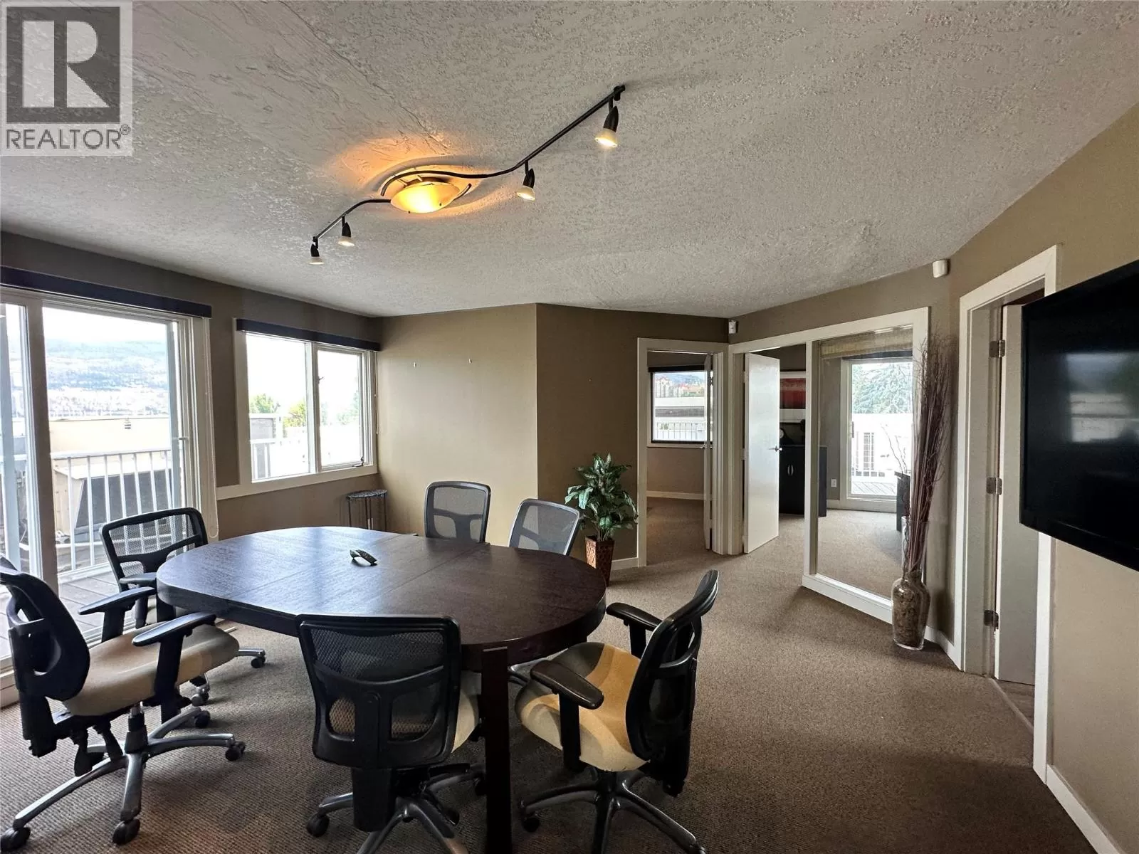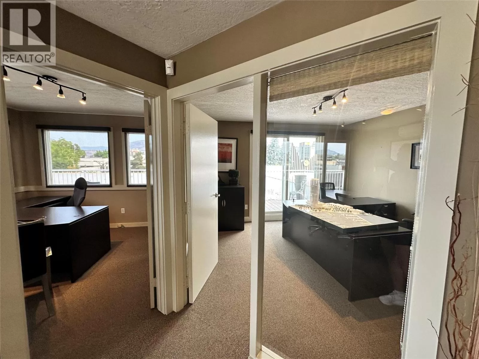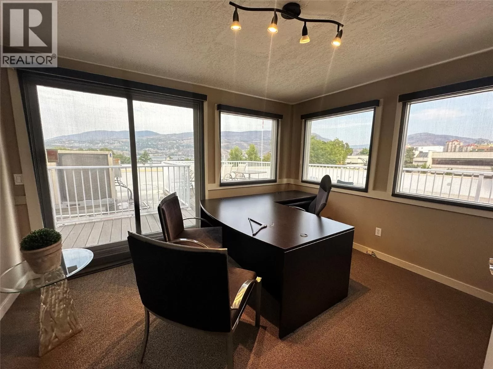 Located in the heart of Downtown Kelowna, this third-floor office space offers a professional setting with the added benefit of a private rooftop patio. The unit features an in-suite kitchenette and washroom, providing convenience for daily operations. The layout includes an open work area currently used as a boardroom, along with three private offices, creating flexibility for a variety of professional users. Positioned within walking distance of the waterfront, restaurants, cafes and downtown amenities, the property also benefits from direct proximity to Kelownaâs main transit exchange. The combination of functional workspace, private amenities, and outdoor space makes this suite an attractive option for businesses seeking a central and modern office environment. (id:27476)