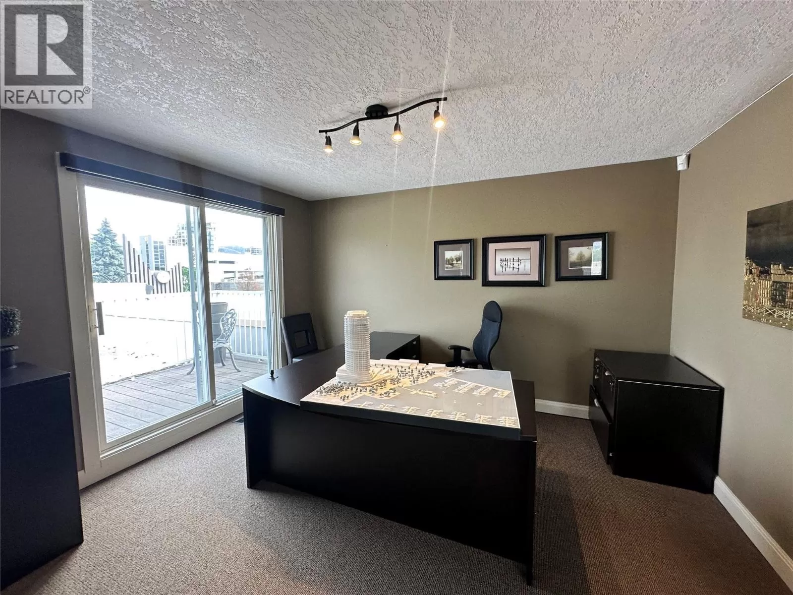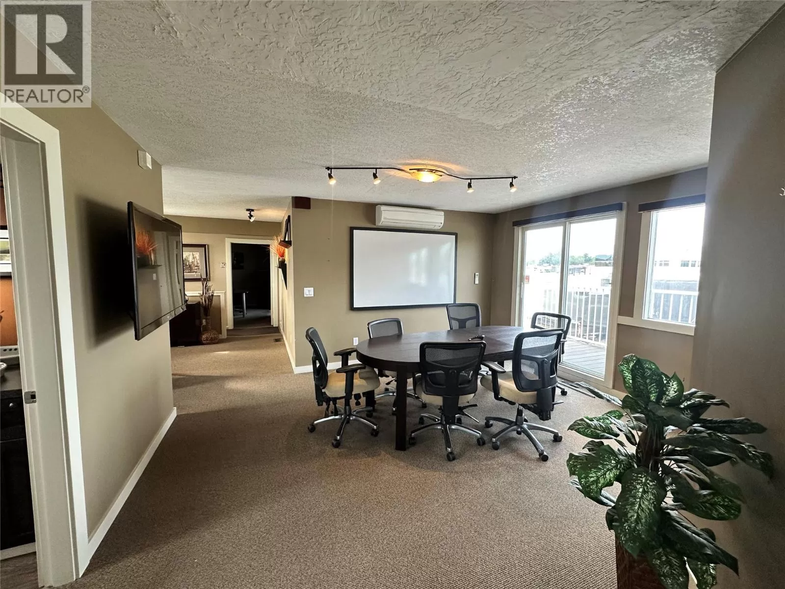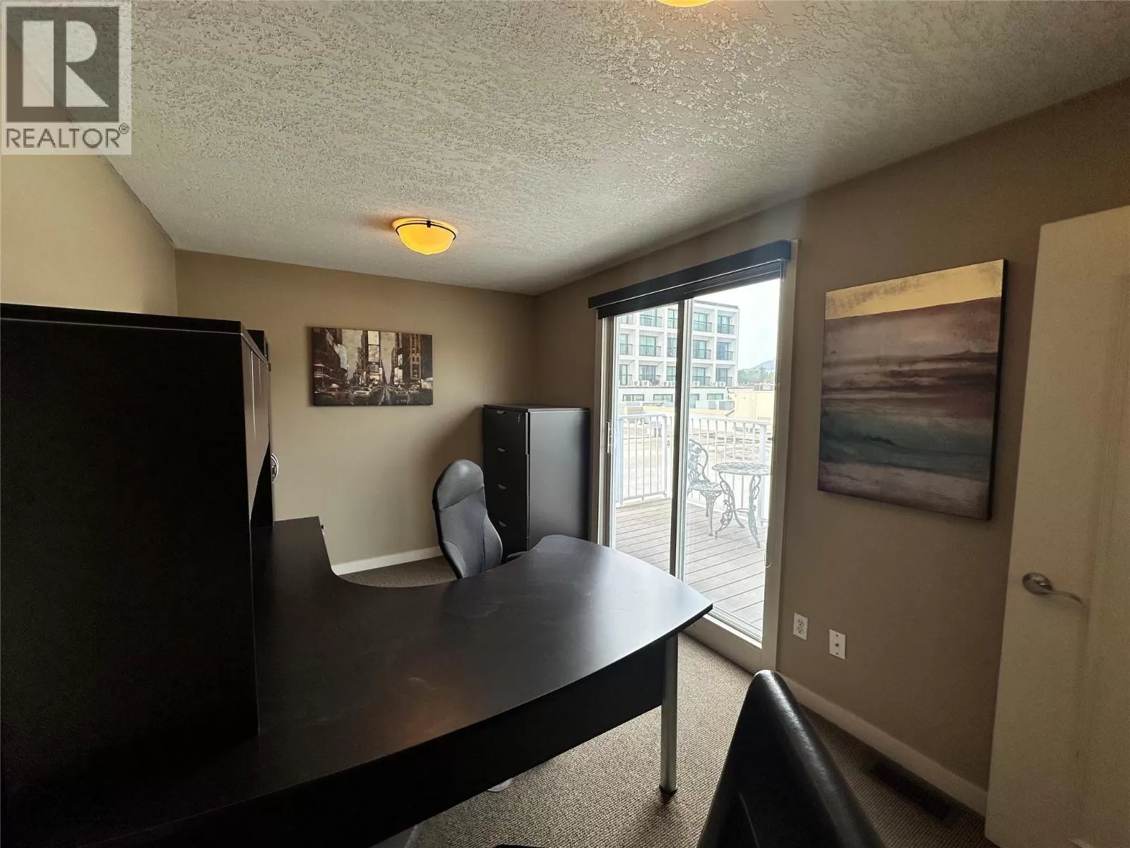 Located in the heart of Downtown Kelowna, this third-floor office space offers a professional setting with the added benefit of a private rooftop patio. The unit features an in-suite kitchenette and washroom, providing convenience for daily operations. The layout includes an open work area currently used as a boardroom, along with three private offices, creating flexibility for a variety of professional users. Positioned within walking distance of the waterfront, restaurants, cafes and downtown amenities, the property also benefits from direct proximity to Kelownaâs main transit exchange. The combination of functional workspace, private amenities, and outdoor space makes this suite an attractive option for businesses seeking a central and modern office environment. (id:27476)