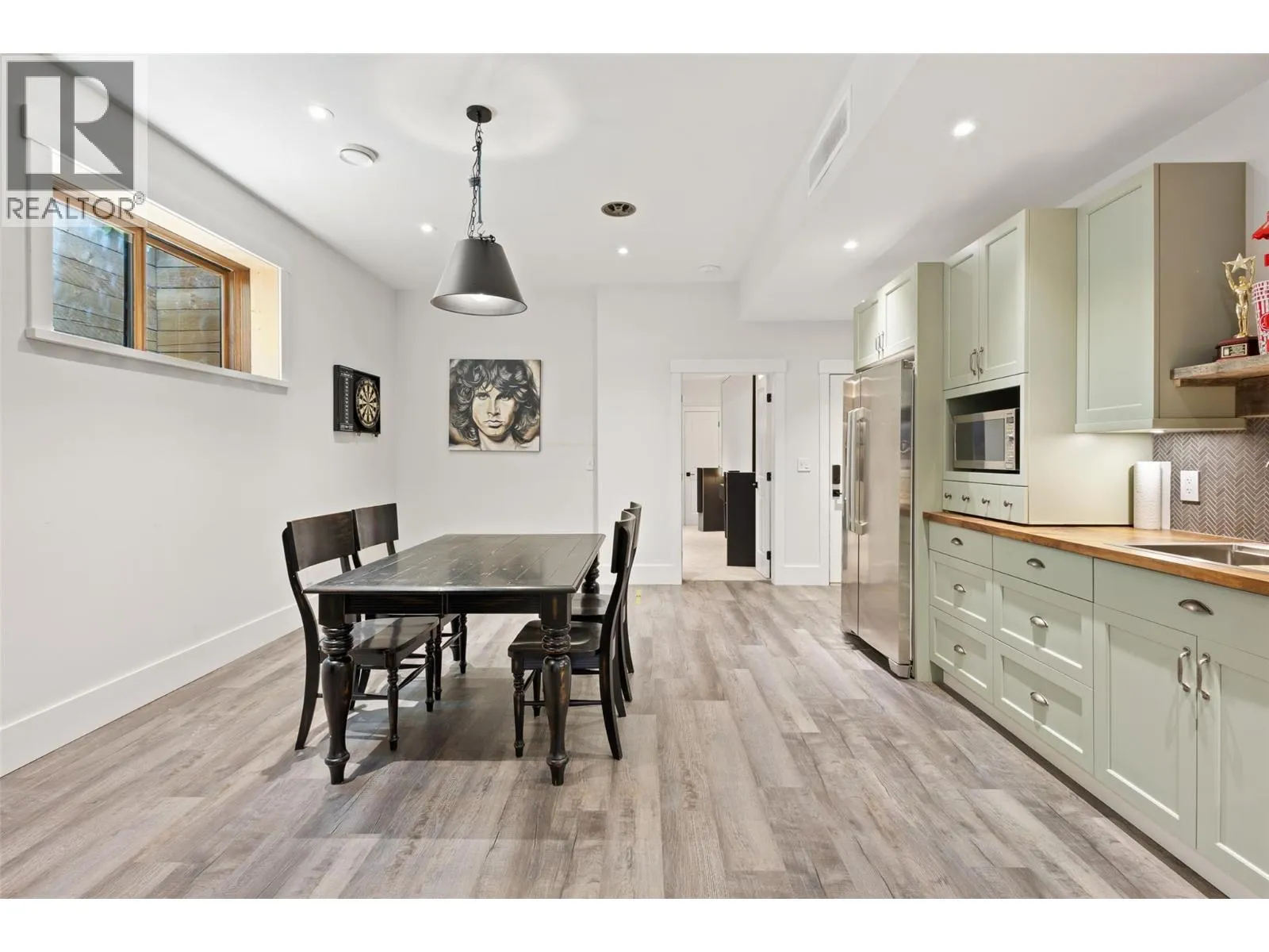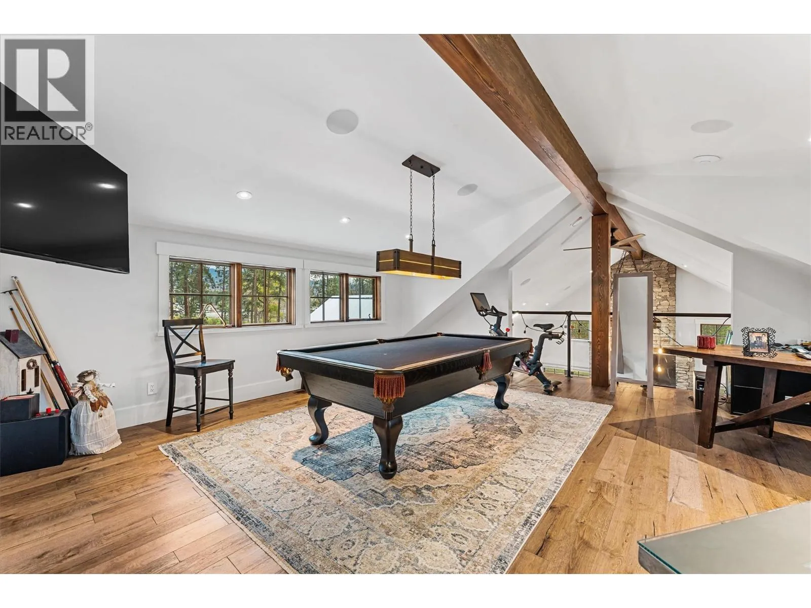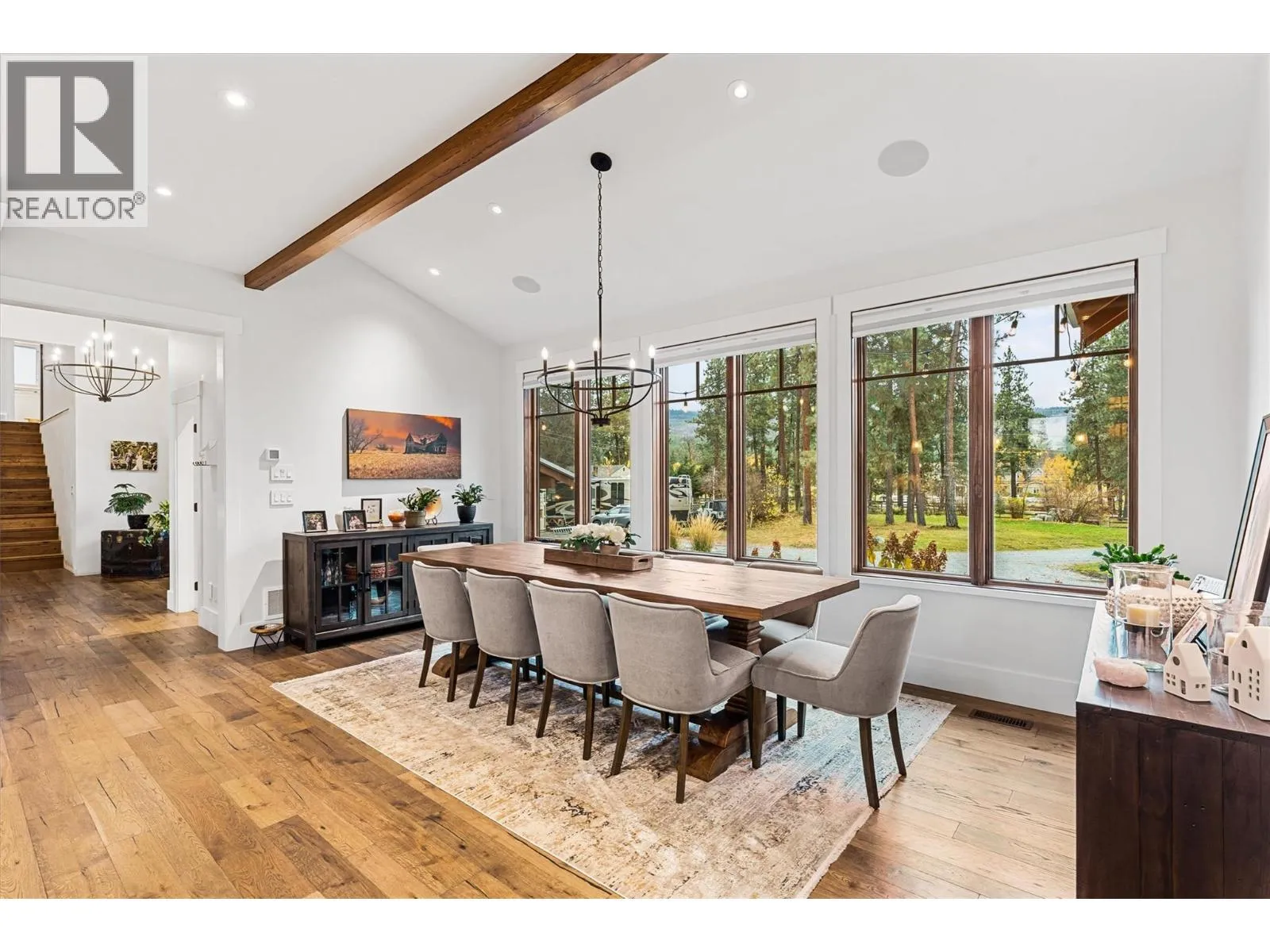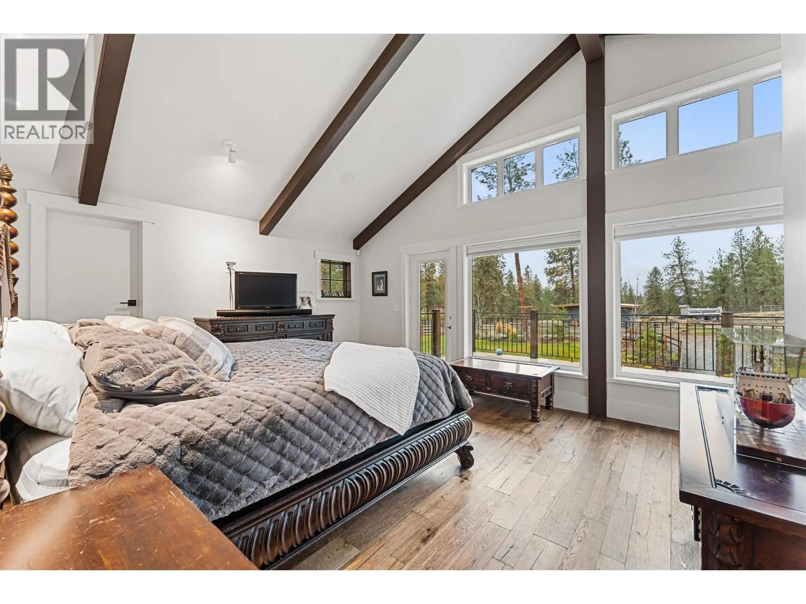 Gorgeous, modern farmhouse-style custom home set on nearly 8 acres in Southeast Kelowna. This equestrian haven is perfect for those seeking tranquility and privacy, just minutes from the amenities of the City of Kelowna. The property is fully fenced for horses, includes a tack room, a 60x180 ft riding pen, and a goat pen. Inside, discover a luxurious and spacious home designed for everyday living and entertaining, with wood accents throughout. The main level features open-concept living, including a wood-burning fireplace surrounded by custom rockwork extending to the ceiling. The gourmet kitchen is perfect for entertaining, with a large center island and a professional appliance package to delight any chef. Folding doors off the living room open to a stunning covered patio with a vaulted ceiling and custom chandelier. The patio overlooks the property, offering a peaceful space to unwind. The upper level boasts a large primary bedroom with a luxurious 5-piece ensuite, a walk-in closet, and direct access to a private patio. Two additional generously sized bedrooms and a 4-piece bathroom complete this level. The lower level offers another two bedrooms and a bathroom. For those who enjoy entertaining, the home features a home theater, a billiards room, a temperature-controlled wine cellar, and a recreation room with an adjoining kitchen. Additional highlights include an Arctic hot tub, a 3-cargarage, and a workshop with an additional 1-car garage. (id:27476)