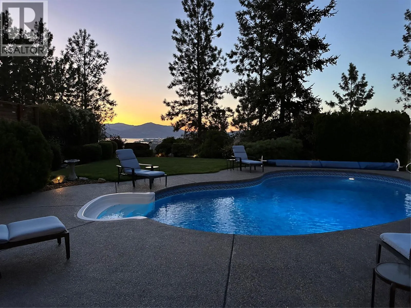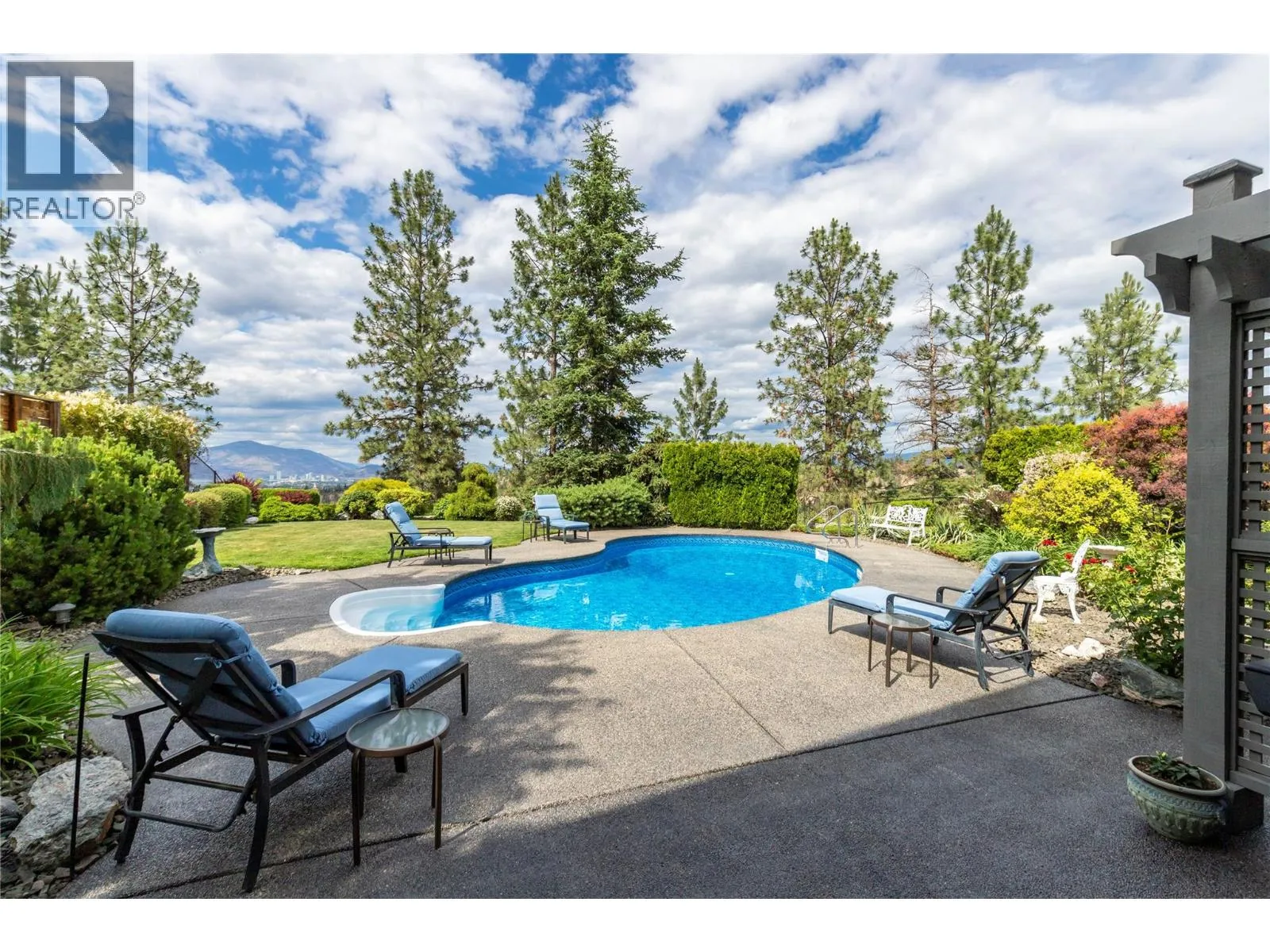 A hidden standout that photos alone canât do justice. This home pairs incredible lake views with exceptional privacy, design, and build quality thatâs rarely seen today. Step into the backyard and find a full resort-style escape: pool, hot tub, koi pond, lawns, and curated perennial gardens that bloom in all seasons. Mature trees provide total seclusion while framing Okanagan Lake views from both levels. Inside, no corners were cut, black walnut floors (just refinished), new quartz counters, custom wood cabinetry, solid wood doors, in-floor heating in the spa-like ensuite, and a full Sonos sound system throughout. The kitchen and great room flow beautifully for entertaining, and five bedrooms, including four with lake views, plus an office give plenty of flexibility. An extra ~700 sqft of bonus space awaits your plans: gym, theatre, wine cellar, storage, suite. The oversized triple garage fits your boat, while on-demand hot water, HE furnace and A/C ensure year-round comfort. This home easily outclasses others in the surrounding Upper Mission; more square footage, higher-end finishings, a larger lot, pool, and lake views from multiple rooms. Located just minutes from the new Ponds shopping hub, you get everyday convenience without losing the peaceful retreat feel. Impeccably built, quietly luxurious, and truly move-in ready. Pride of ownership is evident throughout. See it in person, itâs the only way to understand the value. (id:27476)