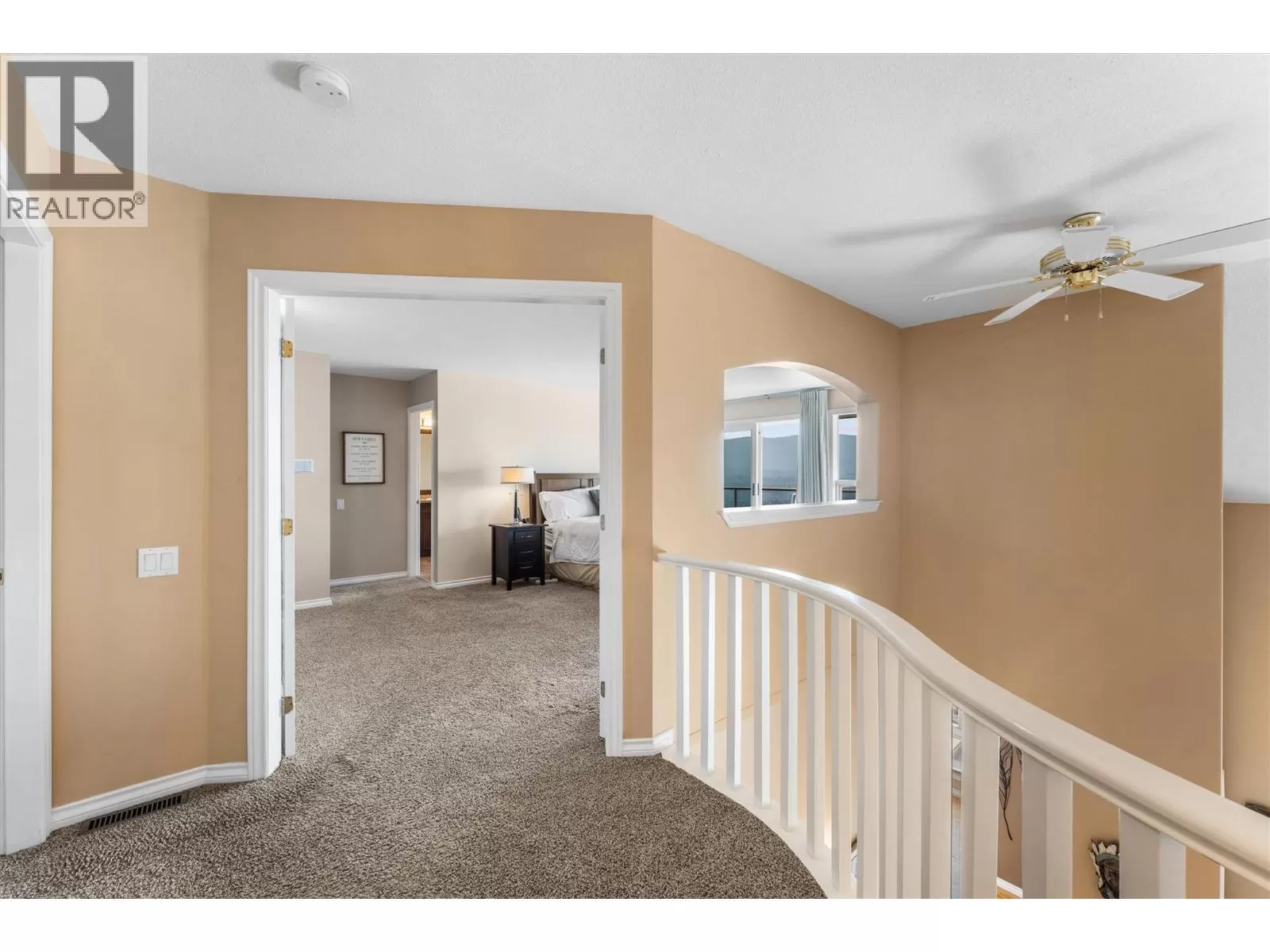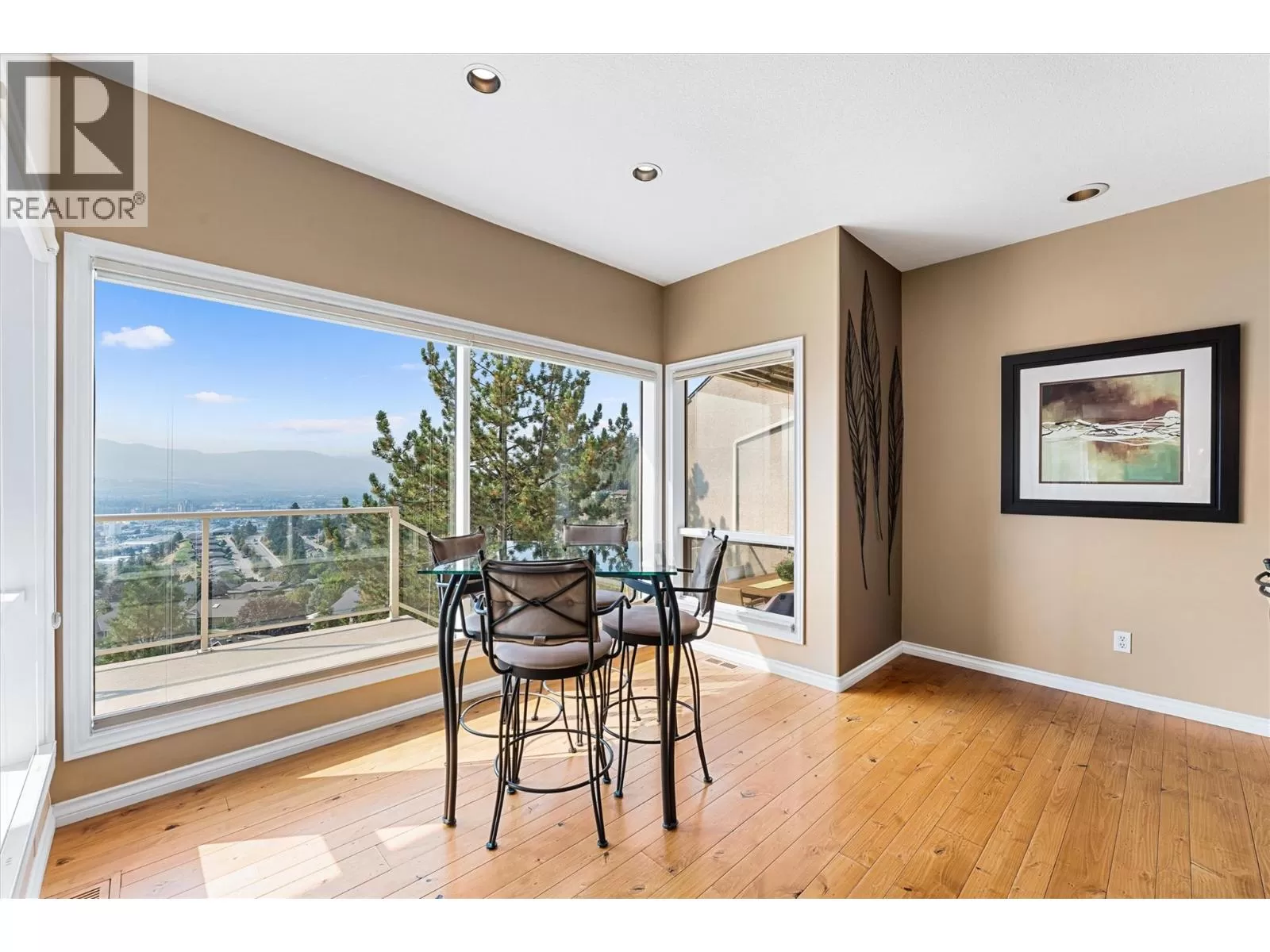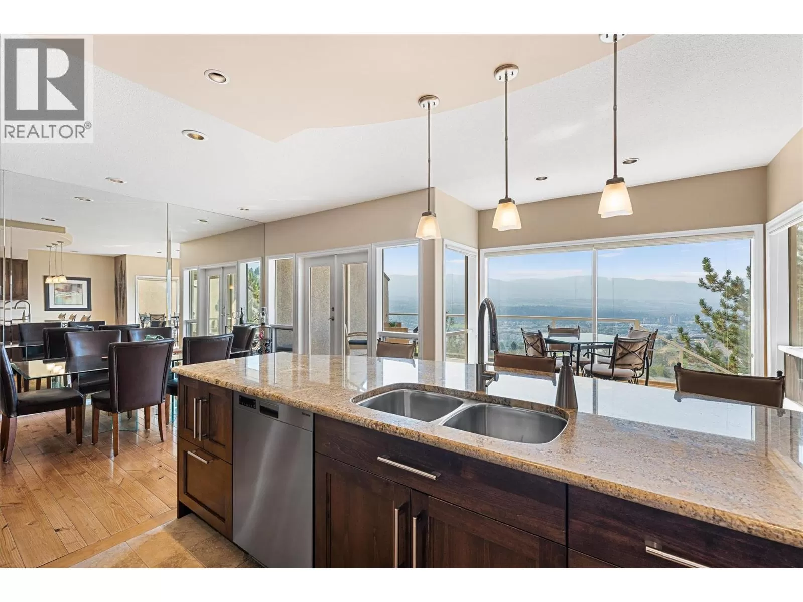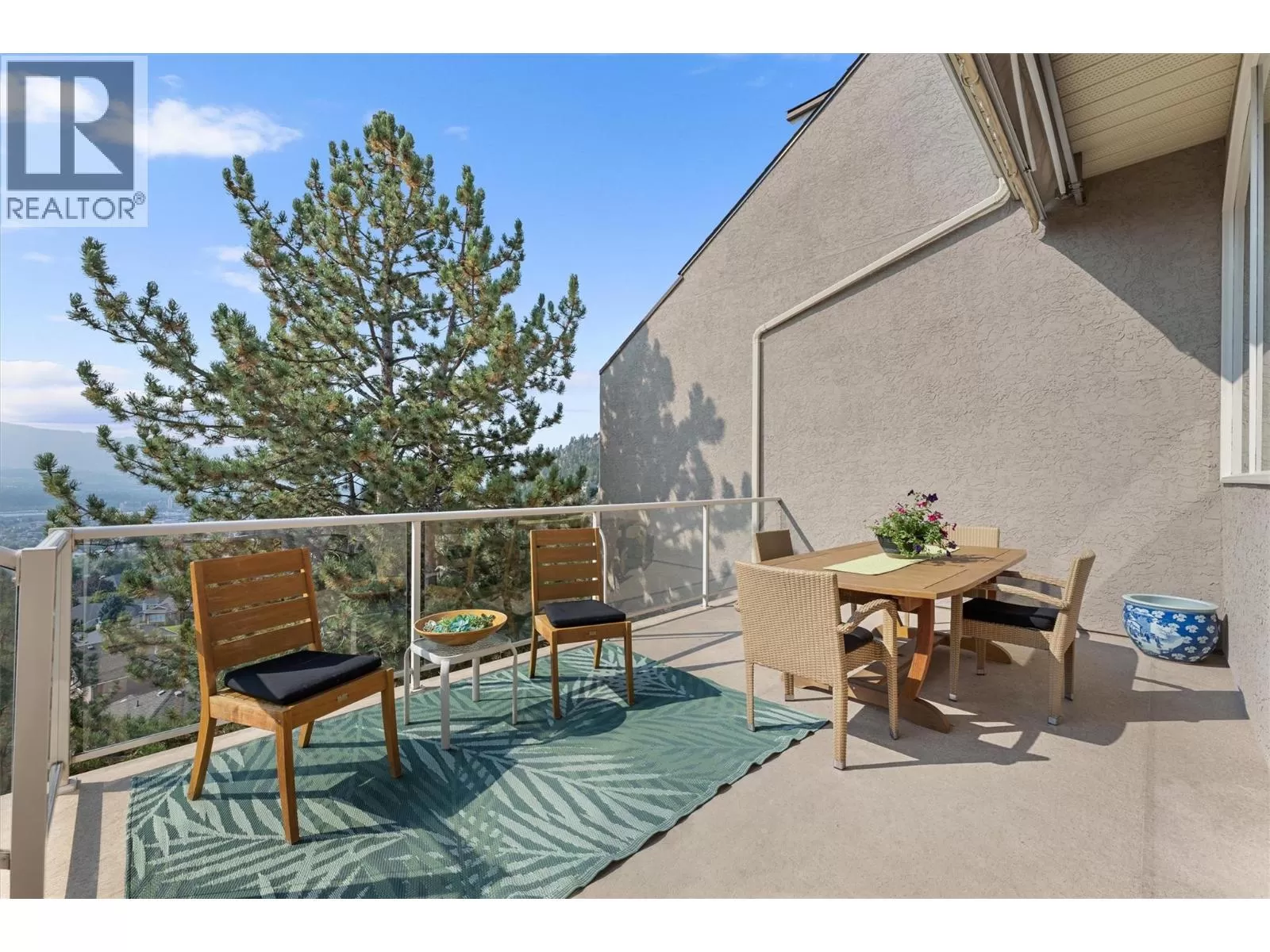 Elegant Dilworth Townhome with Breathtaking Views & Dual Primary Suites in the Loft. Discover the pinnacle of living in this 3,400+ SqFt, 4 bedroom, 4 bath home, set in one of Kelownaâs most prestigious communitiesâDilworth. Blending sophistication with serenity, this residence offers world-class tranquility & the most captivating views of the city, mountains, & Okanagan Lake. The loft showcases 2 Primary retreats, each with en-suites making it ideal for those couples who prefer a restful nights sleep. Throughout the home, vaulted ceilings create an airy ambiance, while a cozy corner gas fireplace shared between the kitchen & living room adds warmth & charm. Perfect for entertaining, the kitchen is anchored by a raised bar & flows to a breakfast nook and dining area. Step outside to a 2-tiered oversized patio, complete with sun-shade awning for basking in the sunshine by day & admiring twinkling city lights & stars by night. The lower level is a true retreat, featuring another bedroom & full bath, along with a versatile entertainment space that opens to an enclosed sunroom, perfect for practicing your putts year-round. The double garage provides room for vehicles & toys, plus a hidden staircase leading directly to the loft. With abundant storage, this home is tailor-made for downsizers who still want space for everything they love. All this, moments from Kelownaâs vibrant amenities, yet tucked away in a private sanctuary that feels worlds apart from the city buzz. (id:27476)