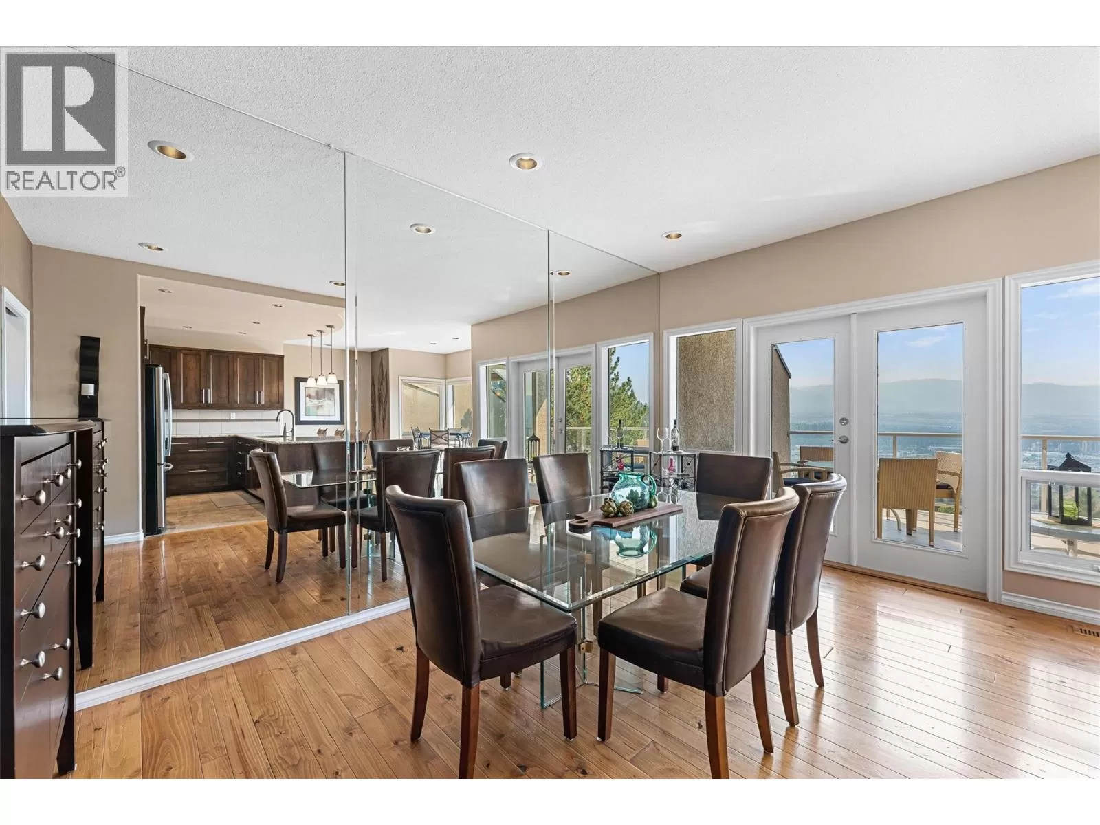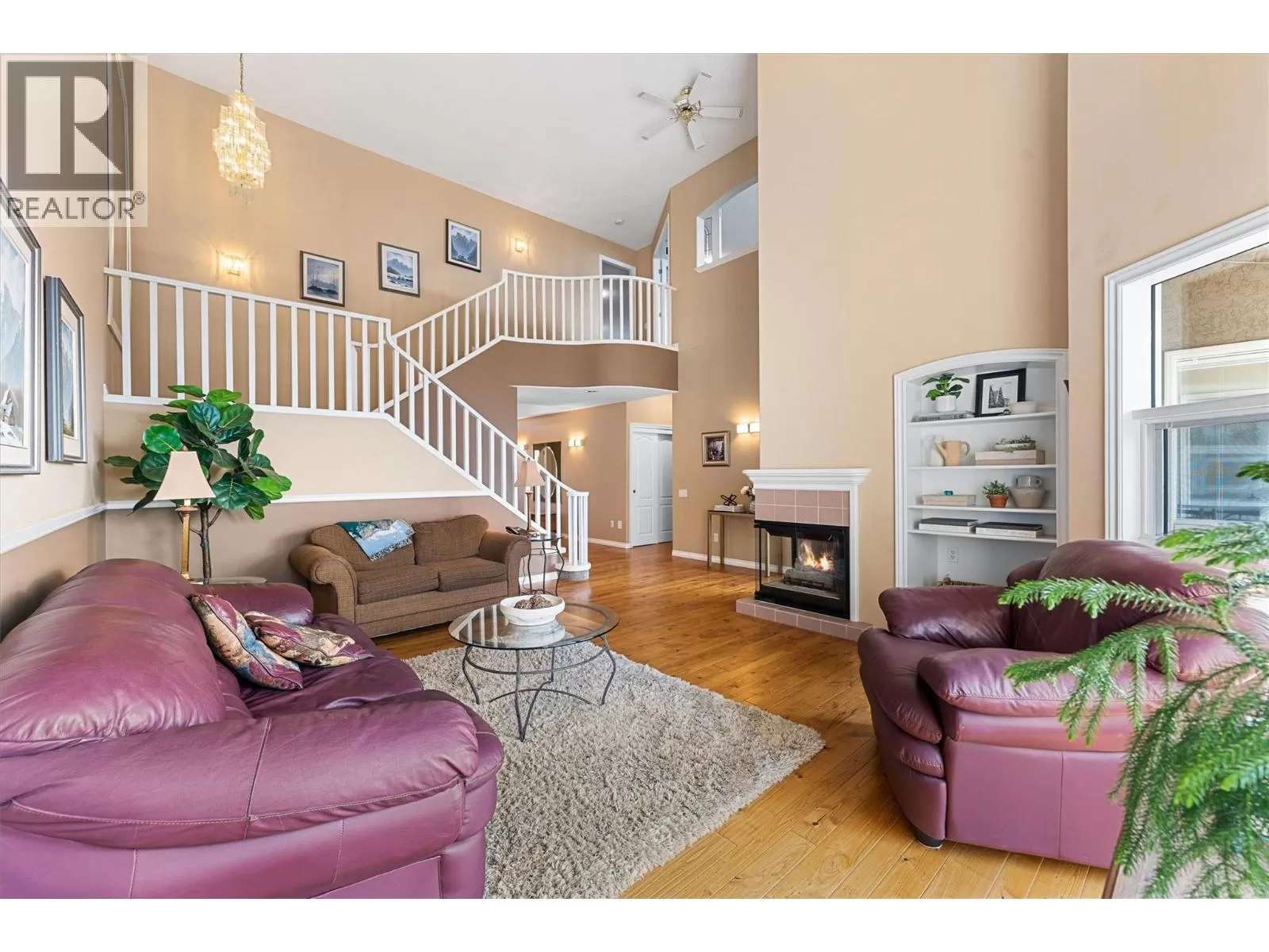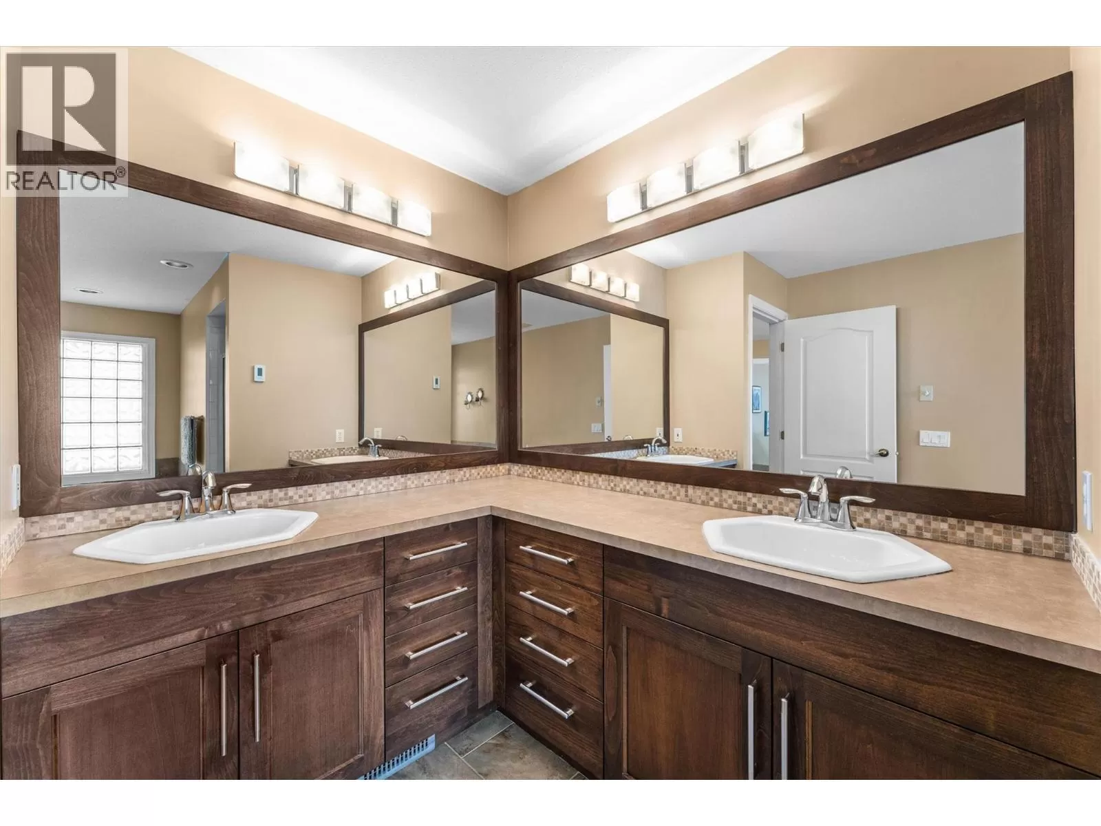 Elegant Dilworth Townhome with Breathtaking Views & Dual Primary Suites in the Loft. Discover the pinnacle of living in this 3,400+ SqFt, 4 bedroom, 4 bath home, set in one of Kelownaâs most prestigious communitiesâDilworth. Blending sophistication with serenity, this residence offers world-class tranquility & the most captivating views of the city, mountains, & Okanagan Lake. The loft showcases 2 Primary retreats, each with en-suites making it ideal for those couples who prefer a restful nights sleep. Throughout the home, vaulted ceilings create an airy ambiance, while a cozy corner gas fireplace shared between the kitchen & living room adds warmth & charm. Perfect for entertaining, the kitchen is anchored by a raised bar & flows to a breakfast nook and dining area. Step outside to a 2-tiered oversized patio, complete with sun-shade awning for basking in the sunshine by day & admiring twinkling city lights & stars by night. The lower level is a true retreat, featuring another bedroom & full bath, along with a versatile entertainment space that opens to an enclosed sunroom, perfect for practicing your putts year-round. The double garage provides room for vehicles & toys, plus a hidden staircase leading directly to the loft. With abundant storage, this home is tailor-made for downsizers who still want space for everything they love. All this, moments from Kelownaâs vibrant amenities, yet tucked away in a private sanctuary that feels worlds apart from the city buzz. (id:27476)