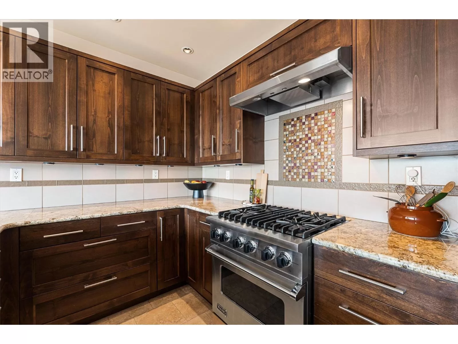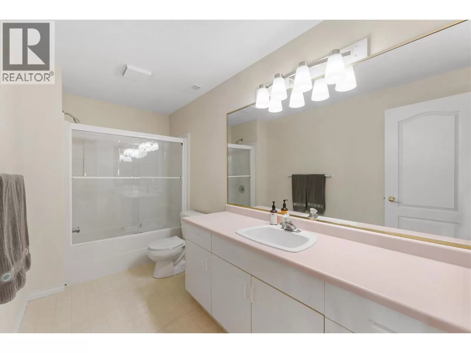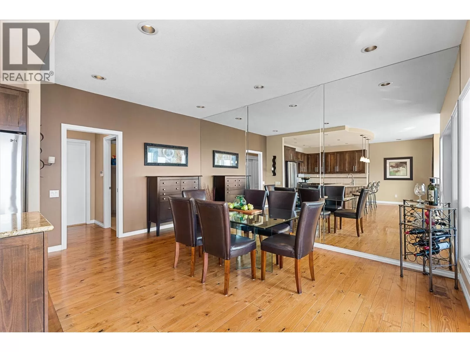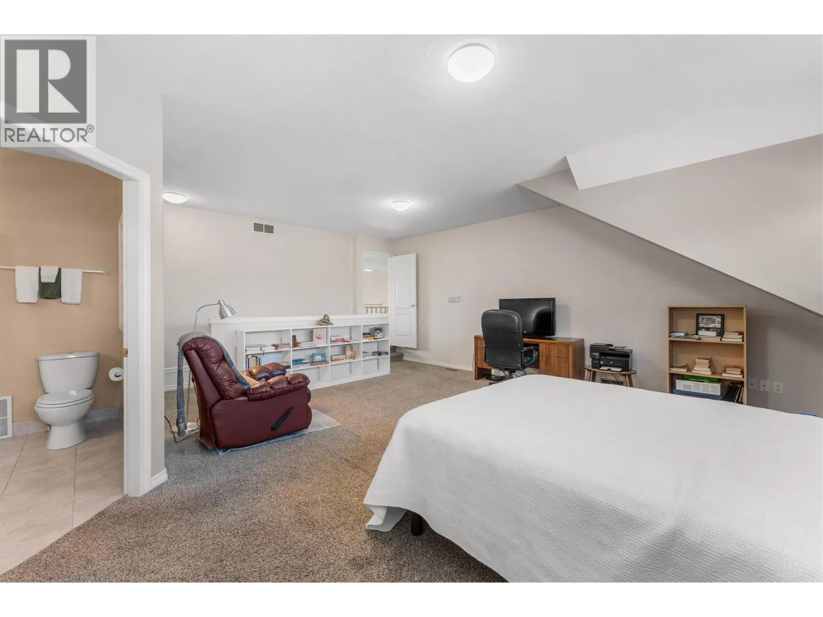 Elegant Dilworth Townhome with Breathtaking Views & Dual Primary Suites in the Loft. Discover the pinnacle of living in this 3,400+ SqFt, 4 bedroom, 4 bath home, set in one of Kelownaâs most prestigious communitiesâDilworth. Blending sophistication with serenity, this residence offers world-class tranquility & the most captivating views of the city, mountains, & Okanagan Lake. The loft showcases 2 Primary retreats, each with en-suites making it ideal for those couples who prefer a restful nights sleep. Throughout the home, vaulted ceilings create an airy ambiance, while a cozy corner gas fireplace shared between the kitchen & living room adds warmth & charm. Perfect for entertaining, the kitchen is anchored by a raised bar & flows to a breakfast nook and dining area. Step outside to a 2-tiered oversized patio, complete with sun-shade awning for basking in the sunshine by day & admiring twinkling city lights & stars by night. The lower level is a true retreat, featuring another bedroom & full bath, along with a versatile entertainment space that opens to an enclosed sunroom, perfect for practicing your putts year-round. The double garage provides room for vehicles & toys, plus a hidden staircase leading directly to the loft. With abundant storage, this home is tailor-made for downsizers who still want space for everything they love. All this, moments from Kelownaâs vibrant amenities, yet tucked away in a private sanctuary that feels worlds apart from the city buzz. (id:27476)