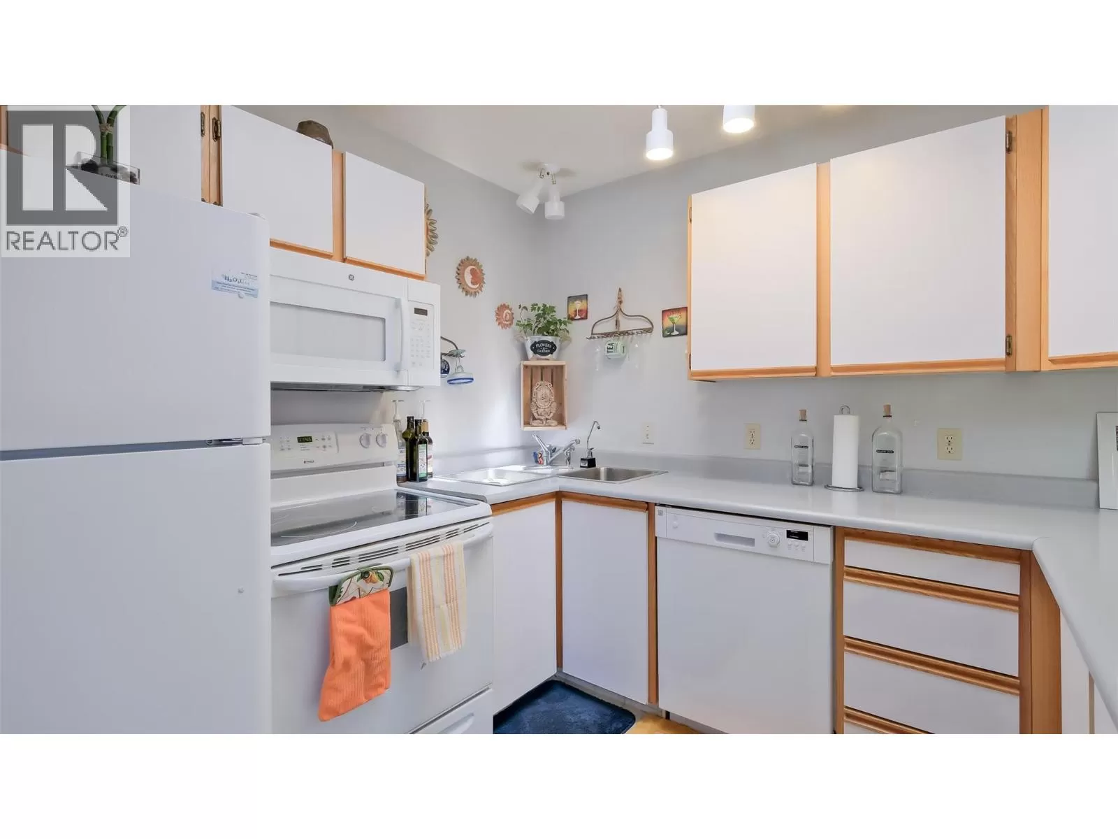 Welcome to Holiday Park Resort, a sought-after gated community in Lake Country. This quiet 2 bed, 2 bath condo is ideally located at the end of the resort, within steps of a private beach, golf course, pools and every amenity you need. The condo features an open concept living and dining area with two separate decks to take in the stunning lake and mountain views. The primary bedroom includes an ensuite, two closets and a large private covered deck. Situated on the second floor you have no one above you and your own private entry with parking right outside your home. Plenty of closets allow for ample storage throughout the unit. New washer & dryer, newer hot water on demand and furnace/AC, you'll enjoy added efficiency and reliability. Take advantage of the Okanagan summers with 3 outdoor pools, 1 indoor pool, 3 hot tubs, and a sauna. The community also offers a pool table, gym, shuffleboard, pickleball courts, playground, hair salon, community garden, convenience store and numerous activities from zumba to water aerobics and weekly social events throughout the year. Live the resort style life full time, go south in the winter or take advantage of the perfect Okanagan Summer home. (id:27476)