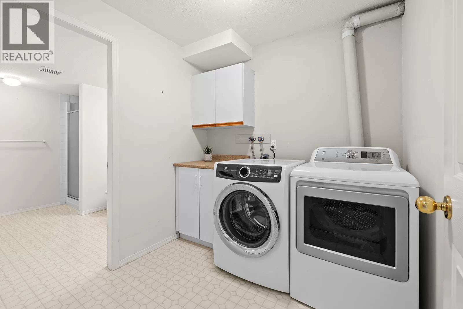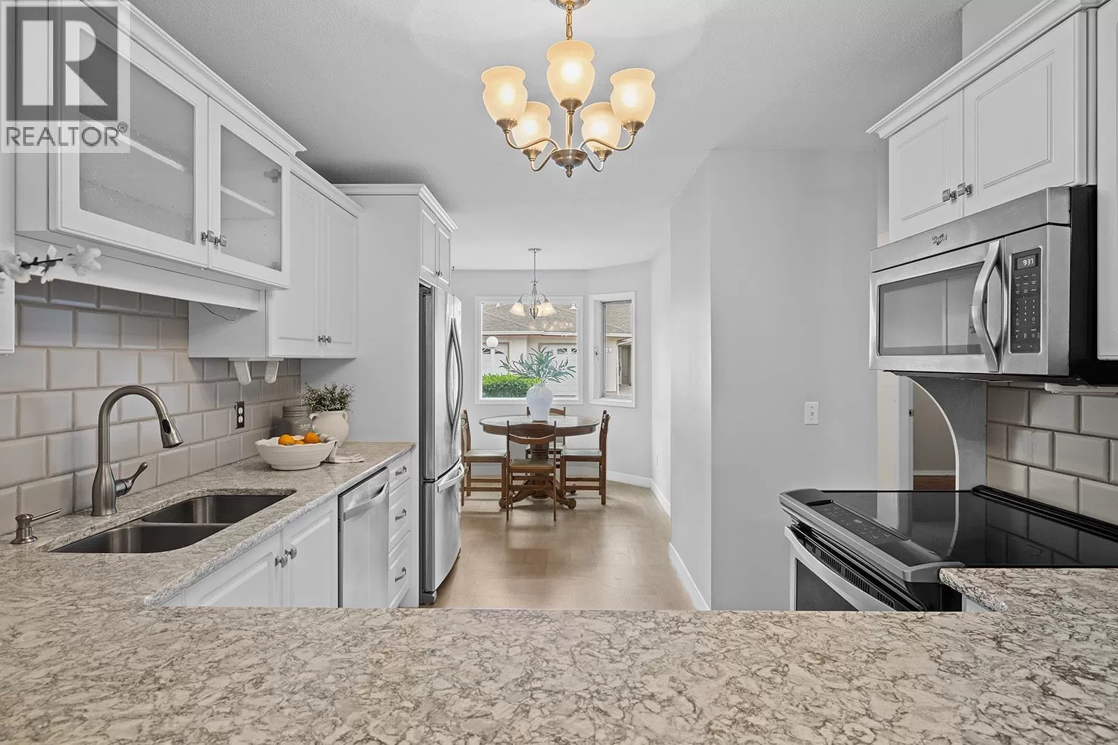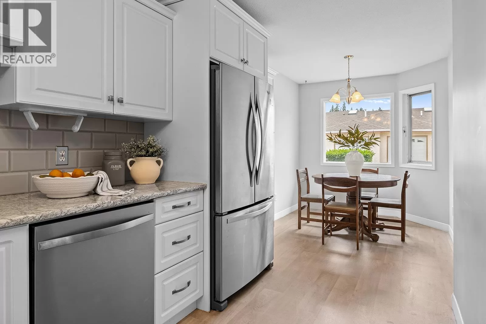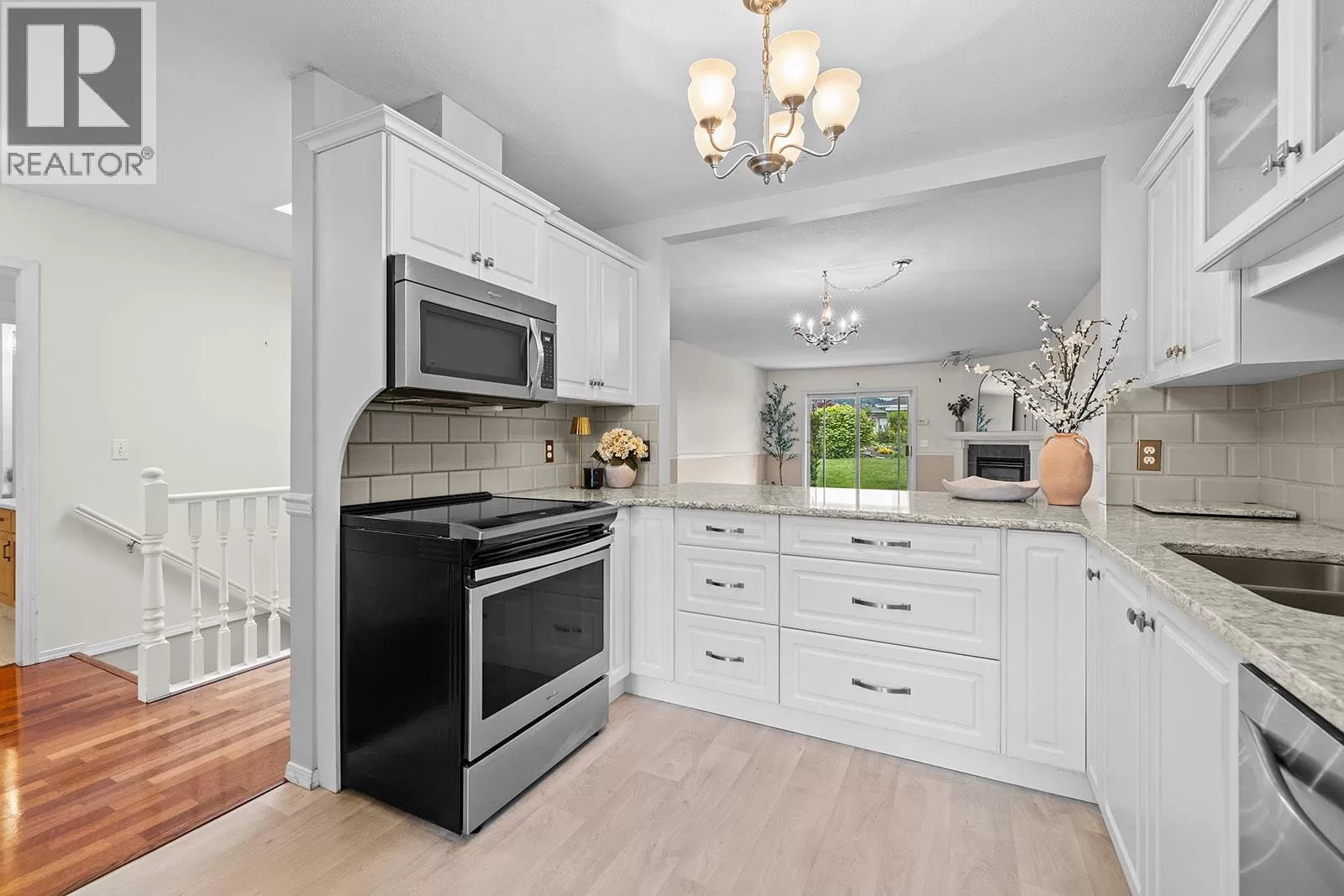 With an AMAZING LOCATION, discover comfort and convenience in this bright and spacious 3-bedroom + den, 3-bathroom townhome, perfectly nestled in a quiet, well-kept 55+ community in the heart of Kelowna. The main floor offers a thoughtful layout with a light-filled entrance with a gorgeous skylight, a primary bedroom featuring a private ensuite with an accessible WALK IIN TUB & expansive dual vanity. A second bedroom, and an additional full bathroom on your main level is perfect for convenience. Cozy up in your living room with a gas fireplace & enjoy a seamless flow into both the dining room and kitchen that has been opened up to create a space that is perfect for gathering and savouring company. The kitchen is adorned with granite countertops, bright white cabinetry, whirlpool appliances and a newer stove. Downstairs, youâll find a versatile rec room, a third full bath, and laundry areaâideal for guests or hobbies. Enjoy the ease of an attached single-car garage and low-maintenance living. Just minutes from shopping, parks, medical offices, and transit, this home offers the perfect blend of comfort, location, and lifestyle. Furnace 2016. AC 2018. HWT 2021. Electrolux 2019. (ages are approx) 1 cat or dog allowed (max 15â at shoulder and 25lbs) (id:27476)