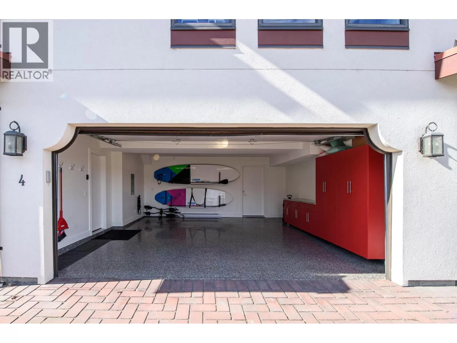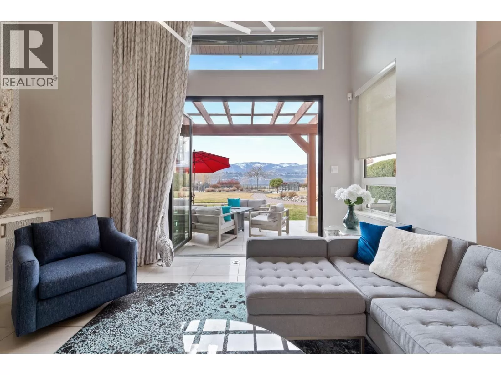 Experience the pinnacle of waterfront living at this gorgeous complex Lakeshore at Manteo, one of Kelowna's premier lakefront developments. This stunning townhome offers an expansive 3-4 bedroom layout with breathtaking lake views and access to one of Kelownaâs finest deep-water moorage locations, complete with a boat lift. Impeccably maintained, this home features high-end finishes and furnishings, exuding luxury and comfort throughout. The attached double garage provides ample storage for all your recreational gear. Situated in an ideal location, you'll find yourself just moments away from Kelownaâs most popular beaches, parks, shopping, restaurants, and charming coffee shops. Enjoy seamless indoor-outdoor living with Nano doors that open wide to a spacious lakeview patioâperfect for entertaining or unwinding by the water. Whether you're looking for a full-time residence or a resort-style retreat that you can lock and leave, this property offers the best of both worlds. Donât miss the opportunity to own this exceptional lakefront home! (id:27476)