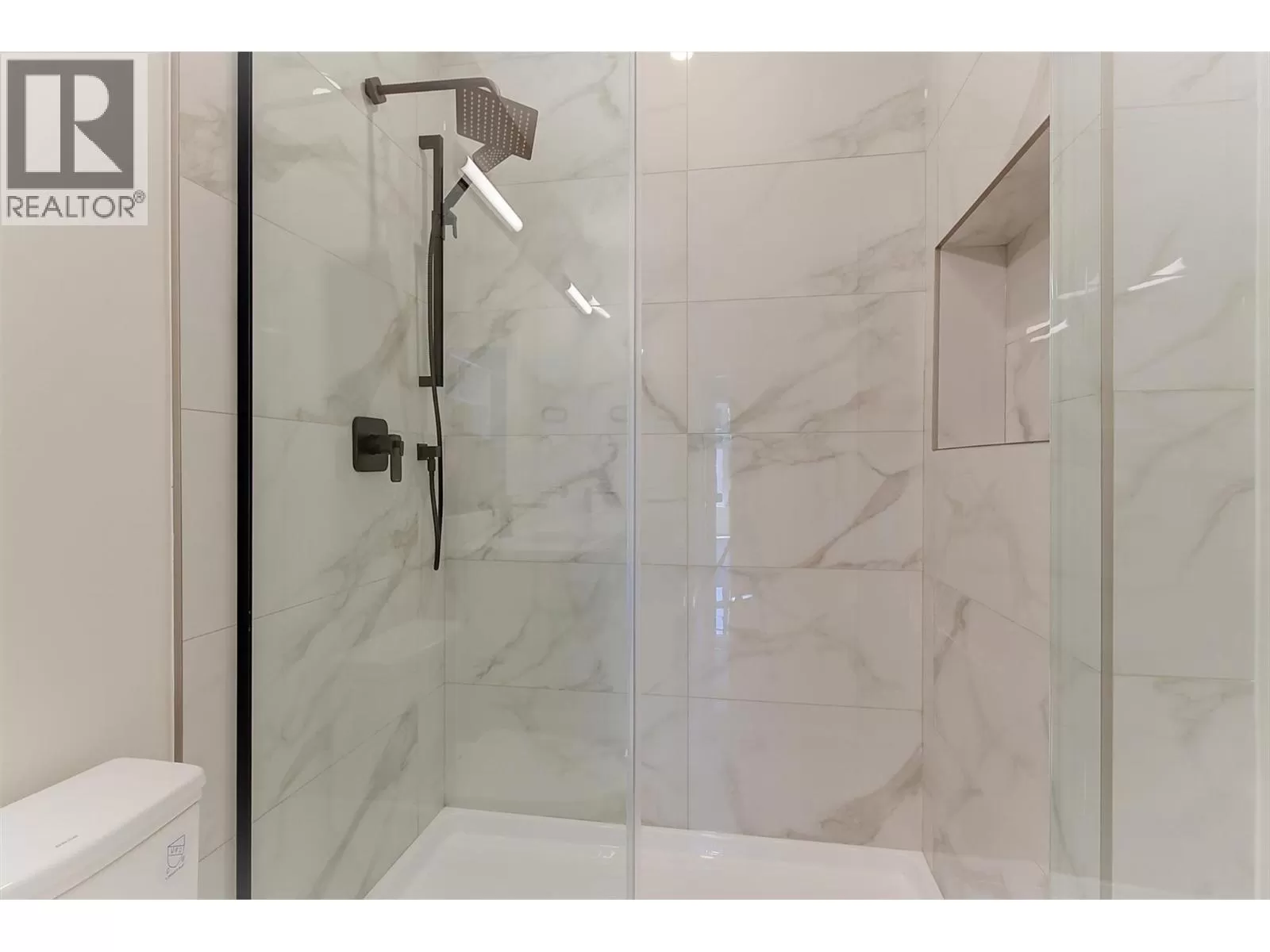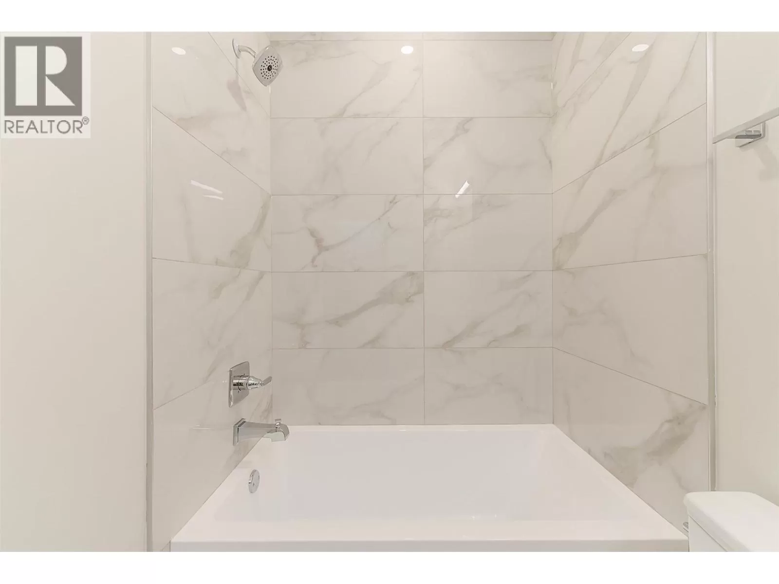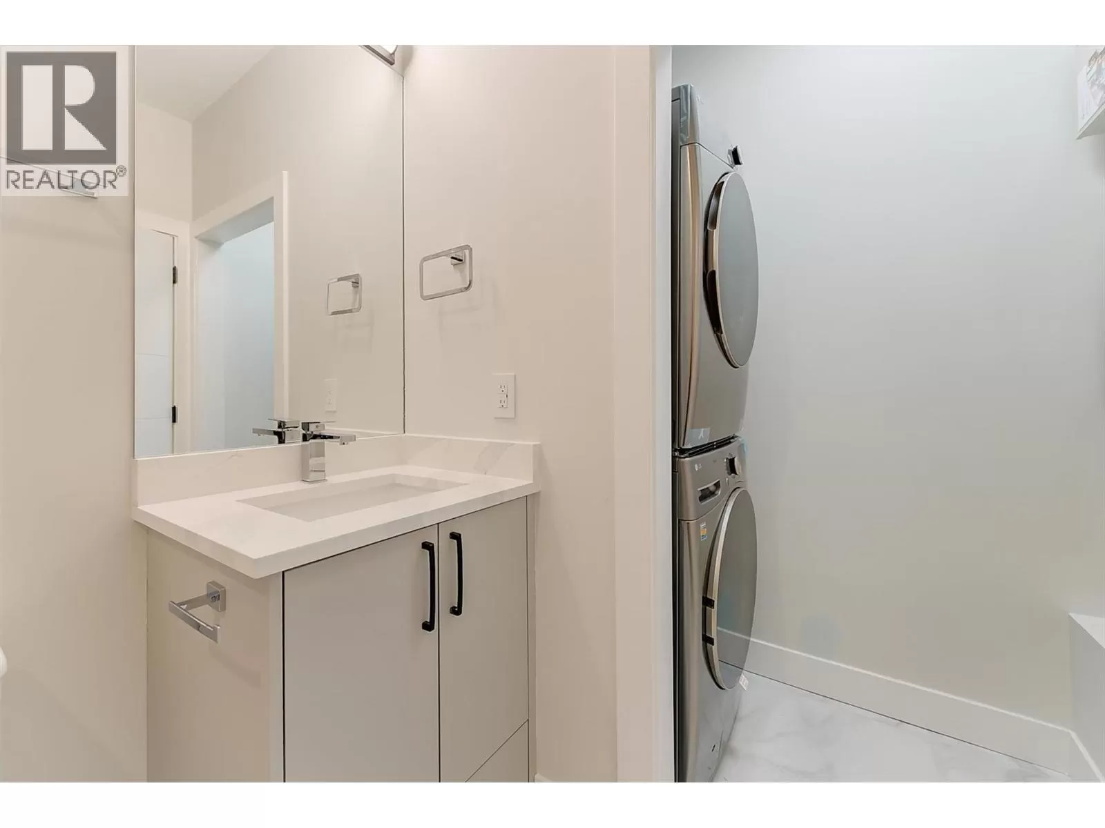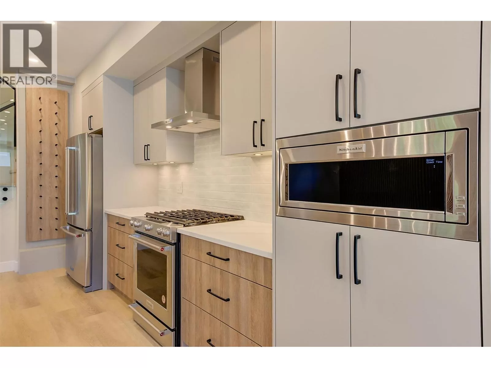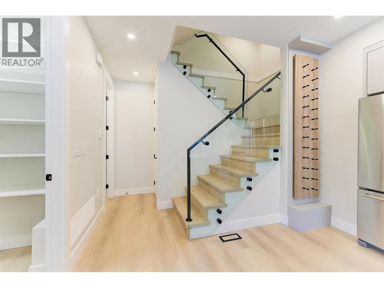 **Discover Luxury Downtown Living** Step into this custom-built, North-facing townhome, offering 3 bedrooms, 2.5 bathrooms, and two stories of exquisite design. Topped with a rooftop patio prepped for a hot tub, this home invites you to embrace the Okanaganâs signature outdoor lifestyle. Every detail has been carefully curated to exude sophistication. Expansive windows fill the space with natural light, complementing the modern exterior of concrete and wood finishes. Inside, the chef-inspired kitchen stands out with a large island, stainless steel appliances, quartz countertops, and a custom backsplash framing the gas stove and 28-inch hood range fan. Throughout the home, premium flooring, a built-in fireplace, and contemporary light fixtures enhance the luxurious ambiance. The primary suite features a spa-like ensuite with a double vanity and a sleek walk-in shower. A large crawl space on the main floor offers ample storage, while the private yard with a covered patio creates your personal oasis. Completing the home is a covered single-car garage with rough-in for an EV charging station, blending convenience with modern living. This townhome isnât just a residenceâitâs a statement of style, comfort, and urban sophistication. Make it yours and elevate your lifestyle today. (id:27476)