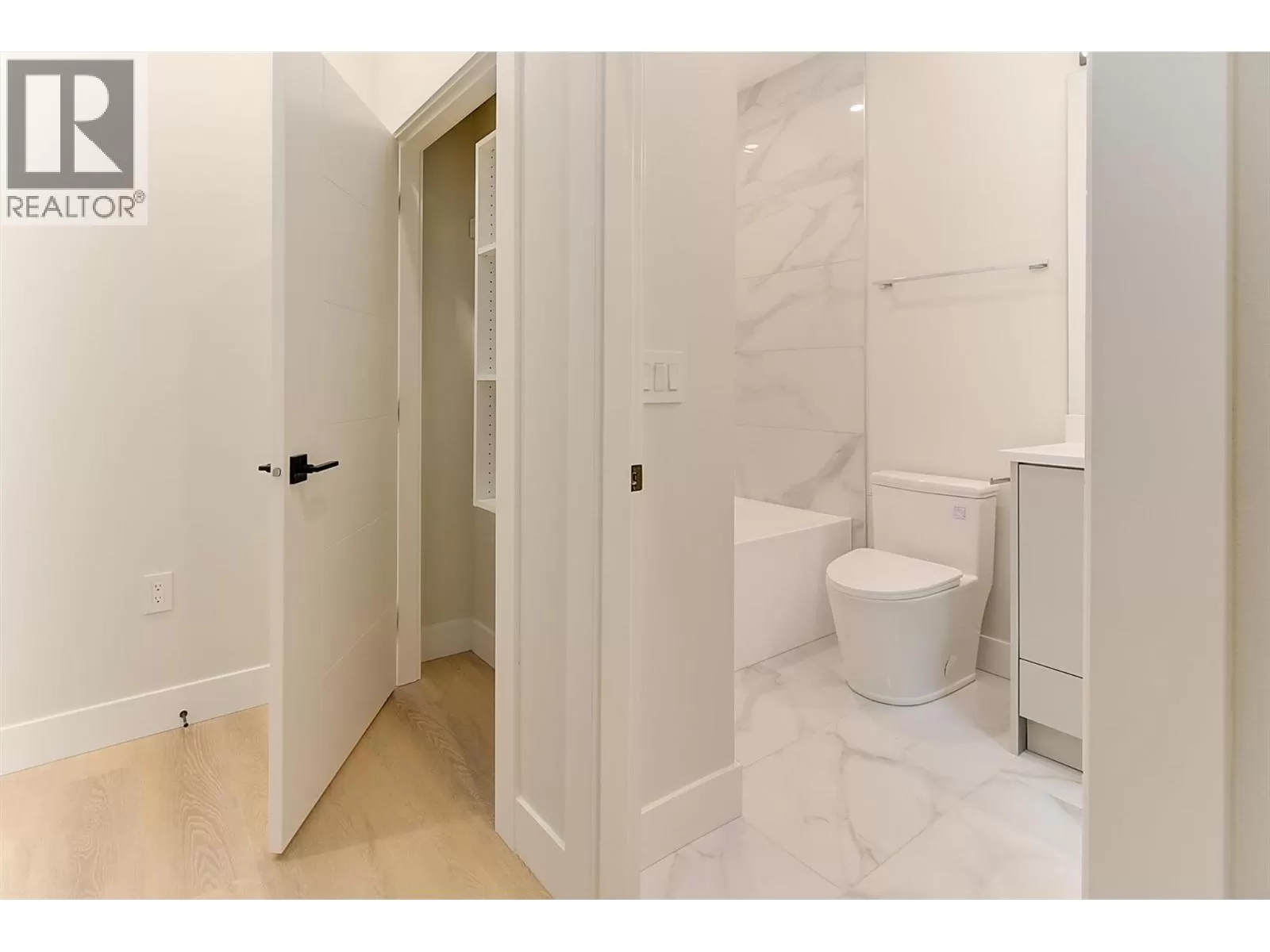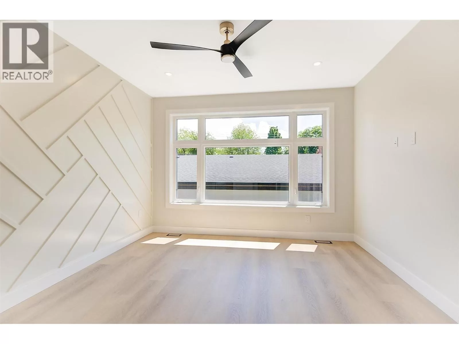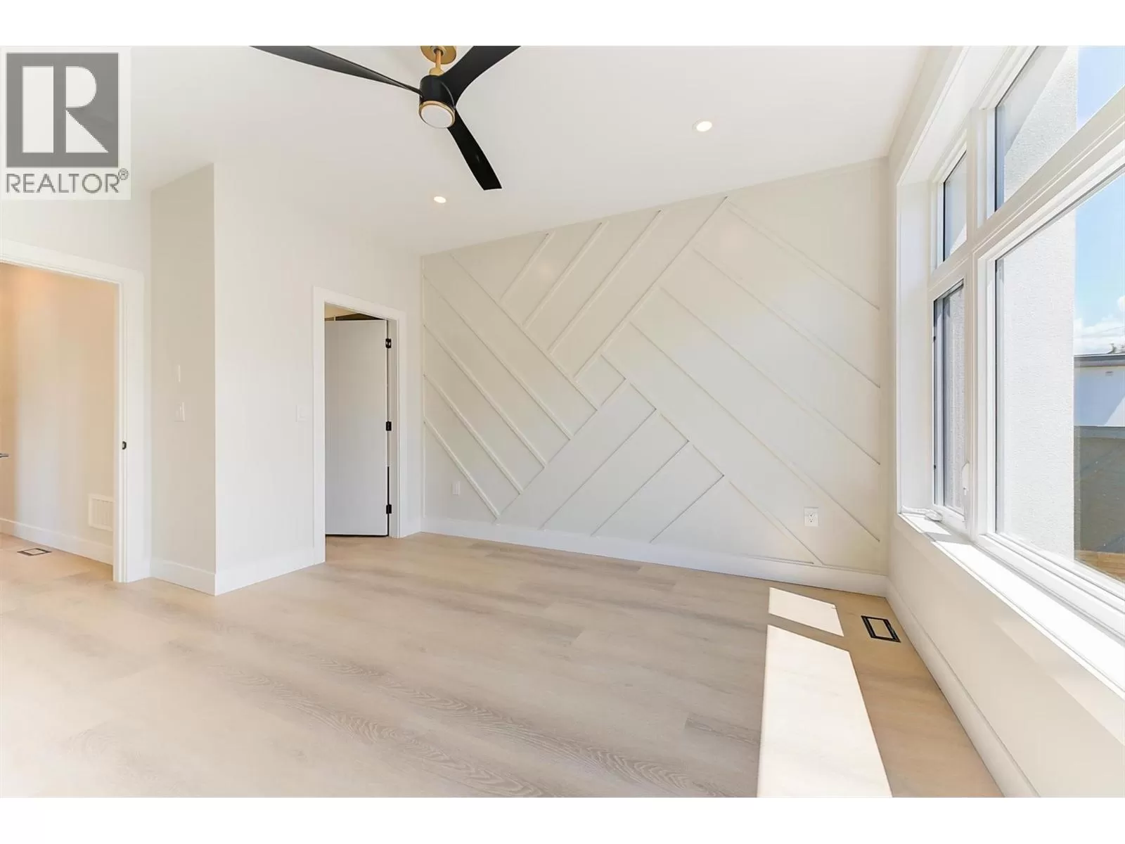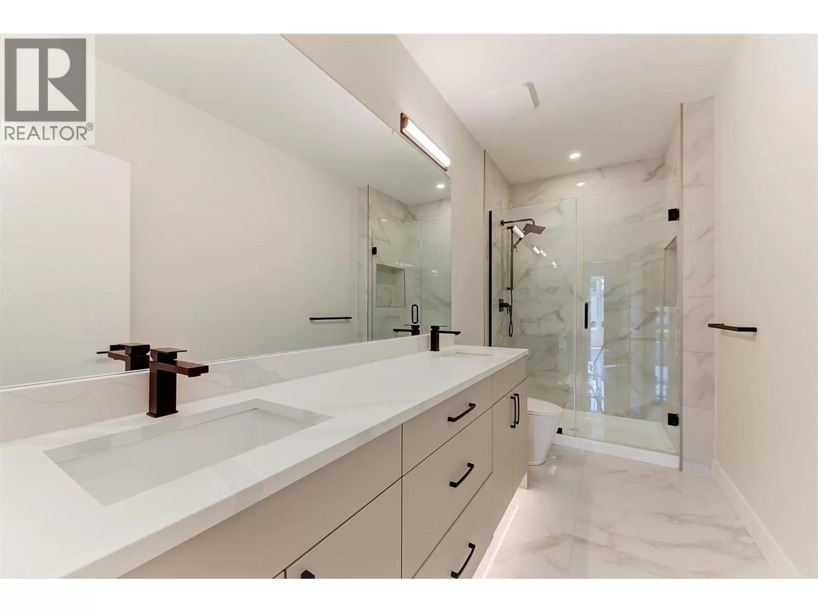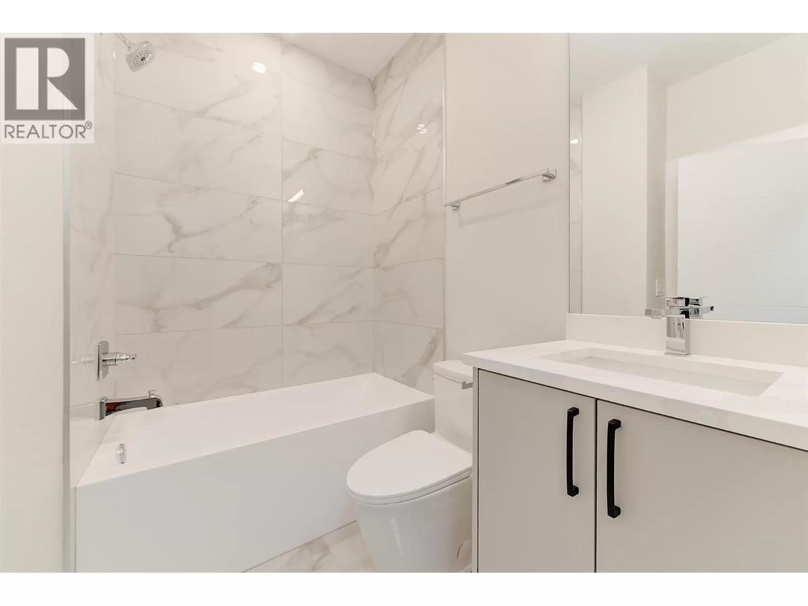 **Discover Luxury Downtown Living** Step into this custom-built, North-facing townhome, offering 3 bedrooms, 2.5 bathrooms, and two stories of exquisite design. Topped with a rooftop patio prepped for a hot tub, this home invites you to embrace the Okanaganâs signature outdoor lifestyle. Every detail has been carefully curated to exude sophistication. Expansive windows fill the space with natural light, complementing the modern exterior of concrete and wood finishes. Inside, the chef-inspired kitchen stands out with a large island, stainless steel appliances, quartz countertops, and a custom backsplash framing the gas stove and 28-inch hood range fan. Throughout the home, premium flooring, a built-in fireplace, and contemporary light fixtures enhance the luxurious ambiance. The primary suite features a spa-like ensuite with a double vanity and a sleek walk-in shower. A large crawl space on the main floor offers ample storage, while the private yard with a covered patio creates your personal oasis. Completing the home is a covered single-car garage with rough-in for an EV charging station, blending convenience with modern living. This townhome isnât just a residenceâitâs a statement of style, comfort, and urban sophistication. Make it yours and elevate your lifestyle today. (id:27476)