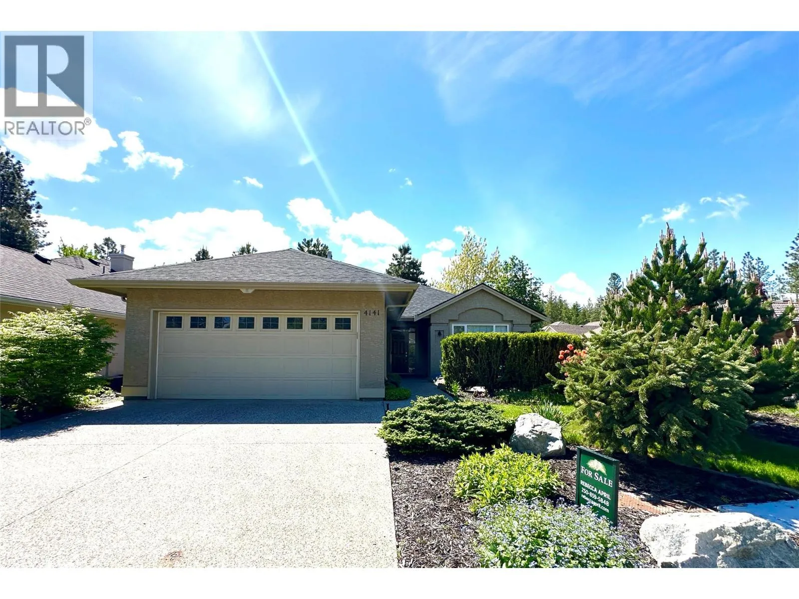 Welcome to 4141 Gallaghers Forest South! Situated on a desirable corner lot in the prestigious Gallagherâs Canyon gated community, this immaculate, turn-key home offers resort-style living just minutes from Kelowna city center. Escape the hustle and bustle while enjoying unparalleled amenities, including direct access to two championship golf courses, a driving range, club house, fitness centre, tennis courts, woodworking shop, library, games room, pool/hot tub, and pottery/art studios. Whether youâre into fitness, creative pursuits, or socializing, Gallagherâs Canyon has it all! This beautifully updated home features a bright white kitchen, SS appliances, a cozy gas fireplace, King Size Primary room, second bedroom has a built in murphy bed to allow for the flexibility you need for guests. Spa-like ensuite bathroom with a walk-in shower and soaker tub, offering both style and comfort. Enjoy outdoor living with a charming front yard courtyard, a back patio with an awning, next to serene green space for added privacy and tranquility. For outdoor enthusiasts, this location is unbeatableâjust minutes from several major parks offering hiking, biking, and even opportunities for gold panning. Donât miss your chance to own a slice of the coveted Okanagan lifestyle in this sought-after community. Call today to book your private showing! (id:27476)