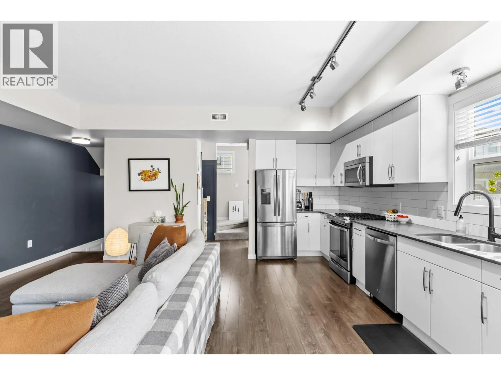Rarely available end unit in the highly desirable Brighton community in Kelownaâs Lower Mission. This immaculate home shows like new, with abundant natural light creating a bright and welcoming atmosphere. The backyard, complete with a concrete patio and gas hookup for a BBQ, is easily accessed from the kitchen and living room area, making it the perfect spot to relax or entertain on a warm summerâs day. Inside, youâll find thoughtful upgrades throughout, including quartz countertops, a gas stove, modern laminate flooring, and updated carpets. The main floor also features a pantry with plumbing already in place, offering the option to easily convert it into an additional bathroom if desired. Upstairs, spacious bedrooms both with walk in closets, provide comfort and flexibility for families or guests. The double wide garage allows for side by side parking and extra storage for all your Okanagan lifestyle gear. Brighton is a pet friendly community, allowing two pets with no size restrictions. Located in the heart of the Lower Mission, this home is just a short walk or bike ride to shopping, restaurants, schools, H2O Adventure + Fitness Centre and Okanagan Lake beaches. Downtown Kelowna is only about a 10 minute drive, giving you quick access to the cityâs vibrant waterfront, cultural district, and endless dining and entertainment options, while still enjoying the quieter residential feel of the Lower Mission. (id:27476)