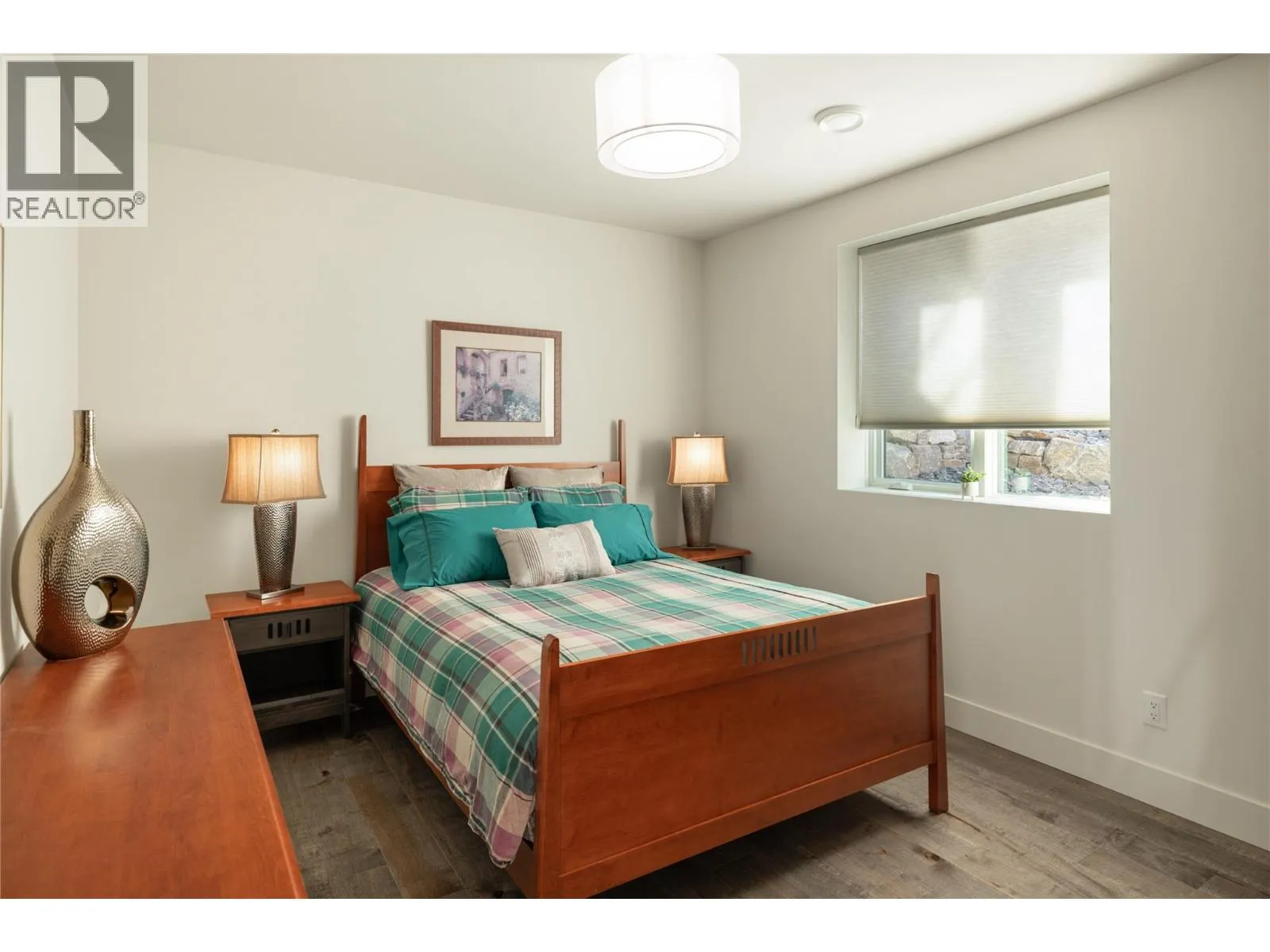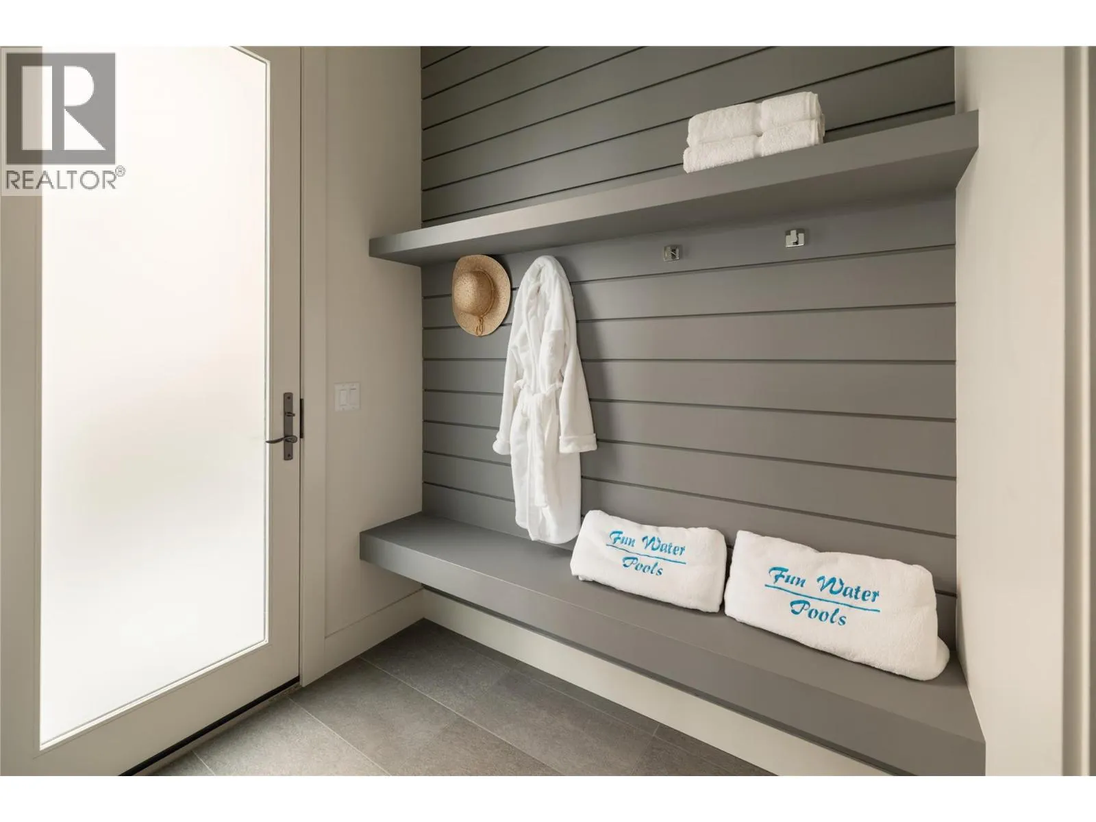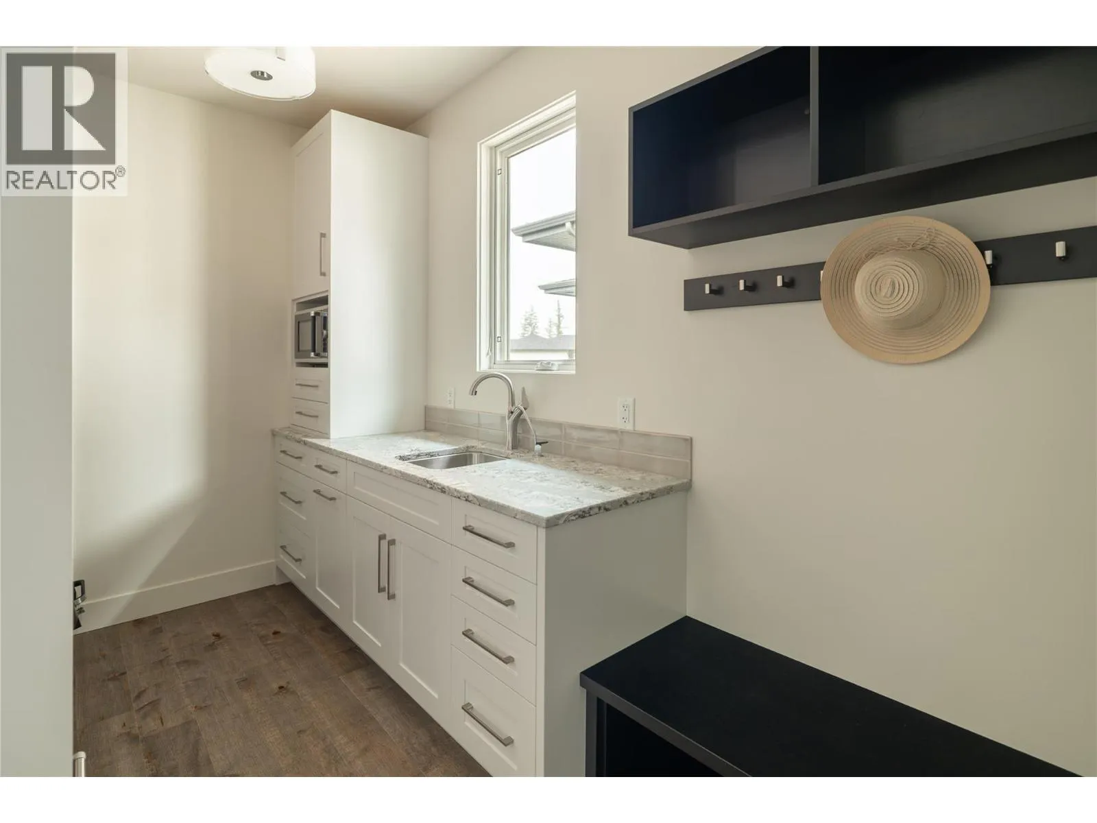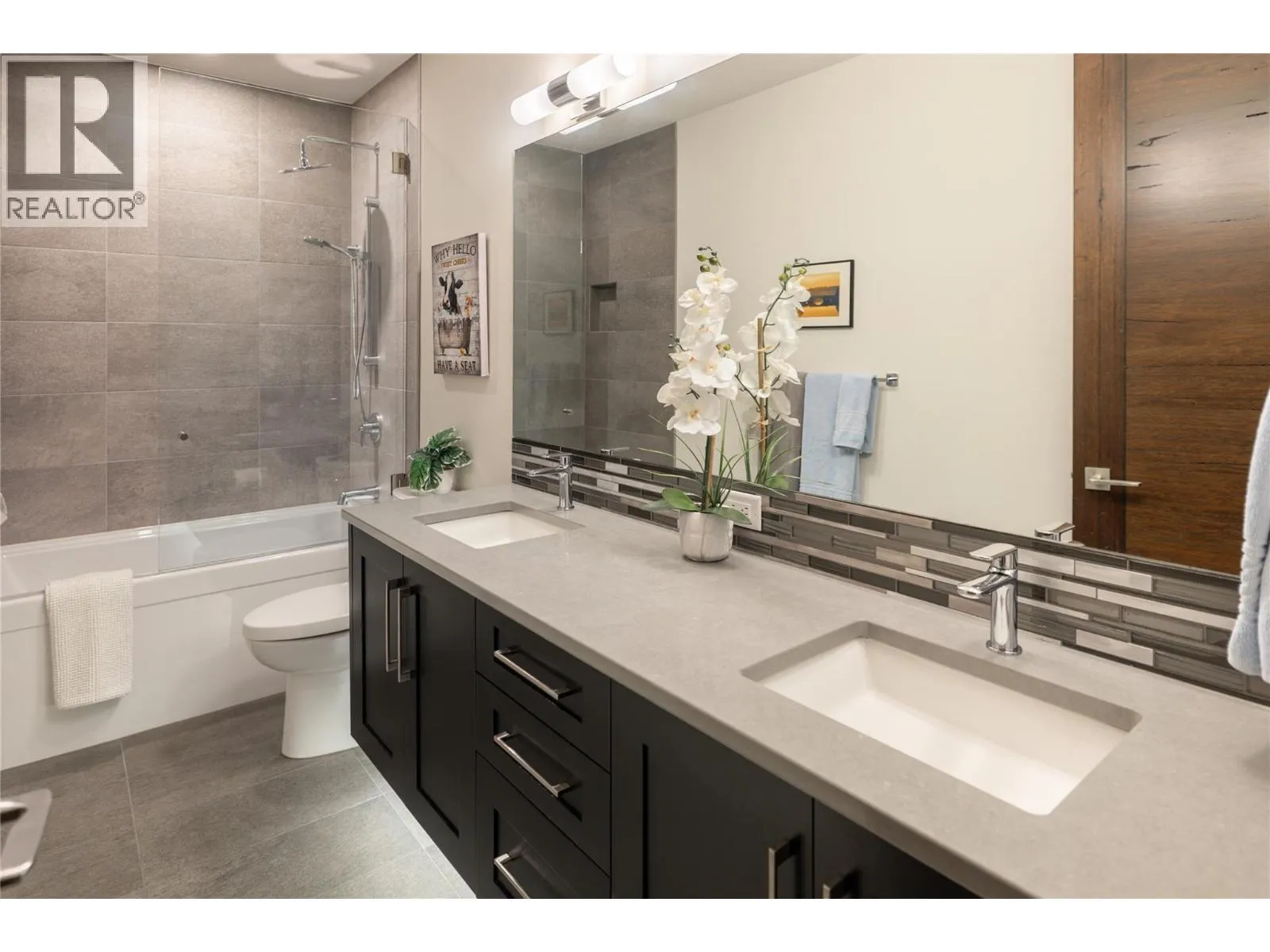 Stunning panoramic views of the lake down to Vernon, vineyards, the bridge and the city lights. Enjoy the natural green space behind the home that further enhances the views. Built by Bill Frame, this home showcases exceptional craftsmanship throughout with wide-plank wood floors, soaring ceilings, and walls of glass with the Okanagan landscape as the backdrop. The main level is a chefâs delight with Thermador appliances, functional oversized island, and butlerâs pantry. Open-concept living and dining areas flow seamlessly to the covered deck, complete with full outdoor kitchen, ceiling fan, built-in heaters, and automated blindsâperfect for year-round entertaining. Enjoy the main floor primary with serene lake views, spa-like ensuite with dual vanities, soaker tub, oversized shower, skylights, heated floors, and custom walk-in closet. An office and convenient laundry complete the main level. The lower floor is perfect for entertaining all your guests with a wet bar, temperature-controlled wine room, fitness space, and large rec and family rooms. Walls of glass open to the backyard oasis featuring a heated saltwater pool, pergola-covered hot tub, lounging areas, and fire pit. Additional highlights include Bolivian walnut doors, upgraded security, Culligan water softener, reverse-osmosis purifier, and a garage with epoxy floors, workshop, EV charger, and mezzanine. Landscaped grounds with a dining patio and water feature complete this Kettle Valley masterpiece with zero maintenance yard to enjoy the full Okanagan lifestyle (id:27476)