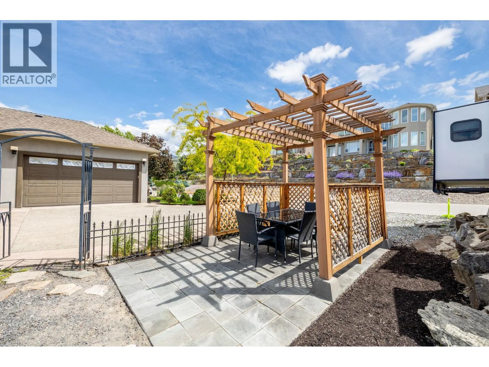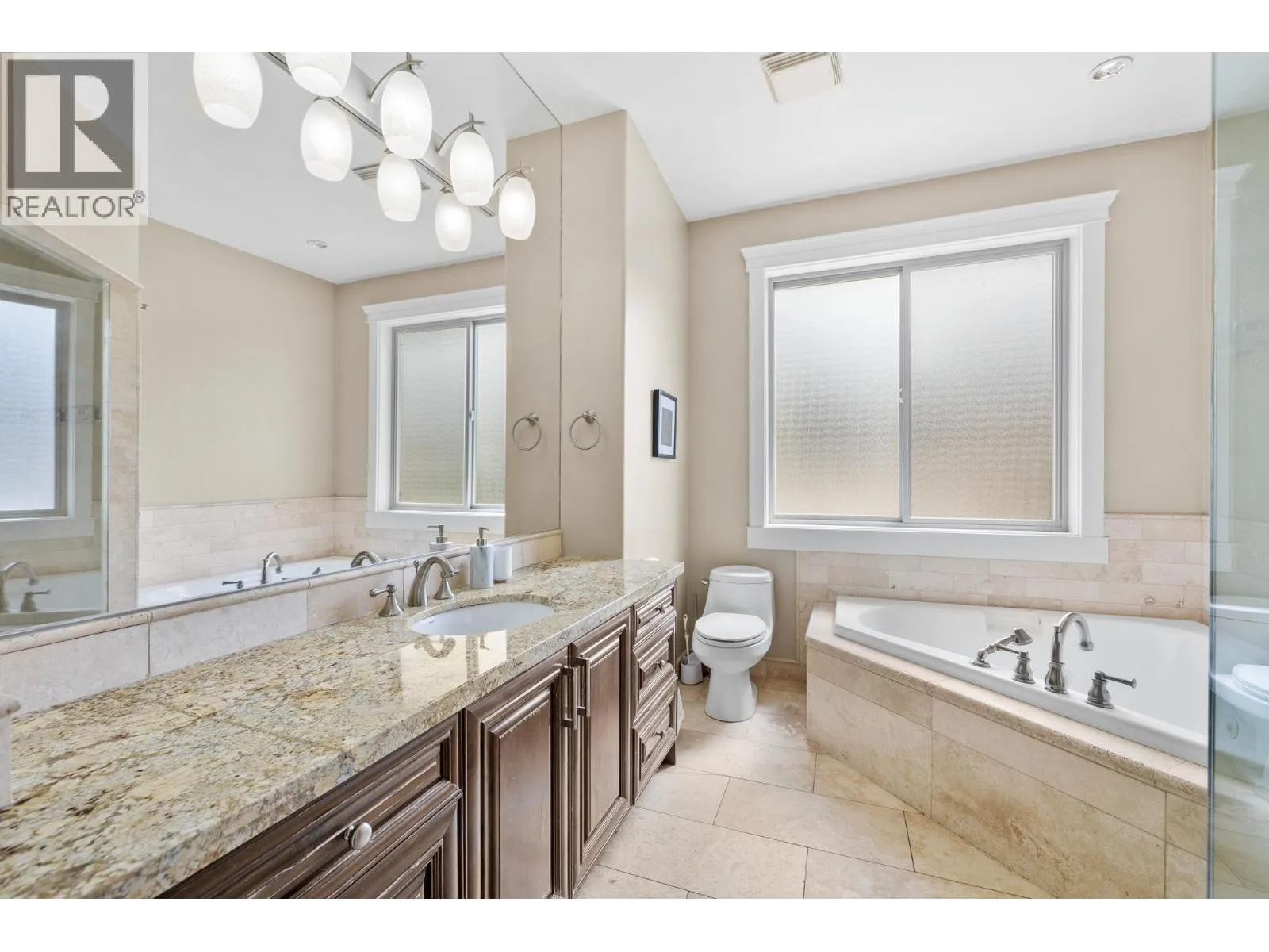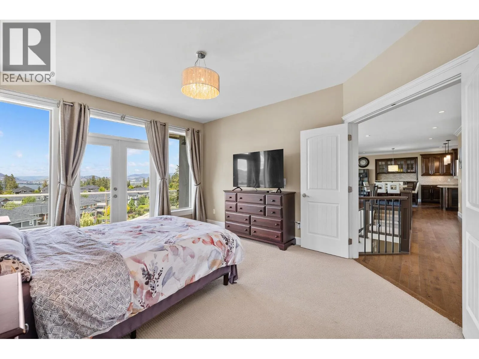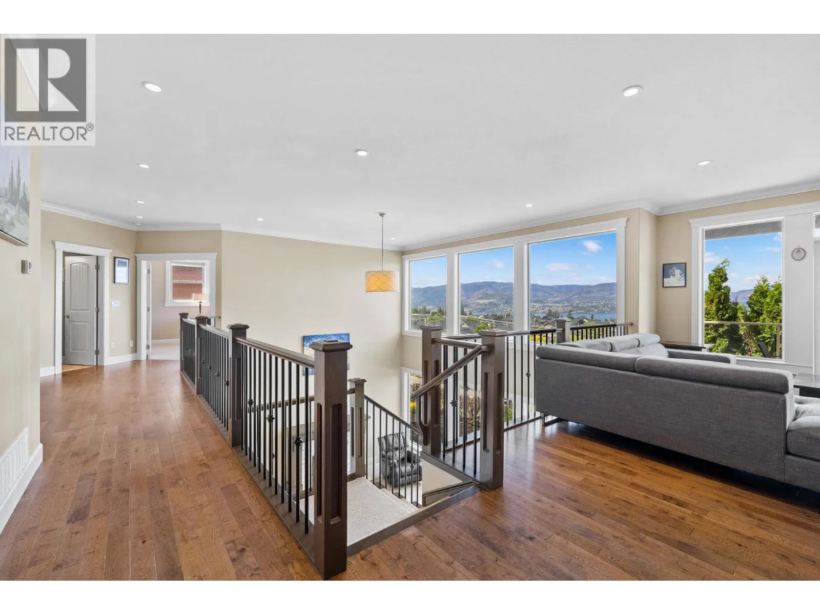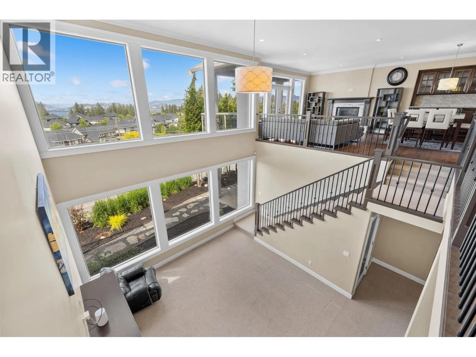 Priced to sell. This beautiful 4-bed, 3.5-bath home with an office and newly added theatre room is priced as one of the lowest in the area offering incredible value, it showcases breathtaking views of the Okanaganâs cityscape, mountains, and lake. Designed for both comfort and style, the modern kitchen features granite countertops, stainless steel appliances, and a large island perfect for gatherings. The open-concept layout flows seamlessly through the dining area to a covered patioâideal for year-round entertaining. The spacious primary master retreat includes a private deck, walk-through closet, and luxurious ensuite with steam shower and jetted tub. The lower level adds versatility with three bedrooms, including a private guest suite with its own ensuite and separate entranceâproviding excellent suite potential for extended family or rental income. The theatre room offers even more flexibility for entertainment, a gym, or office space. Pride of ownership is evident throughout, with the hot water tank, furnace, and yard all professionally maintained. Outside, enjoy two decks, a pergola-covered patio, and meticulously landscaped gardens. A rare combination of location, condition, and unmatched valueâthis home truly wonât last. (id:27476)