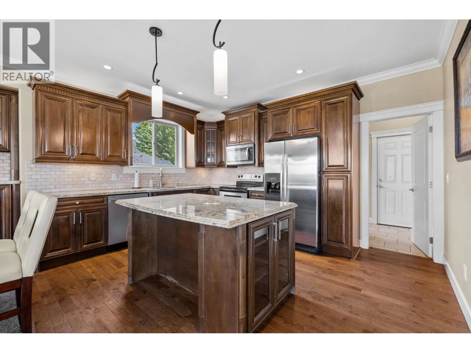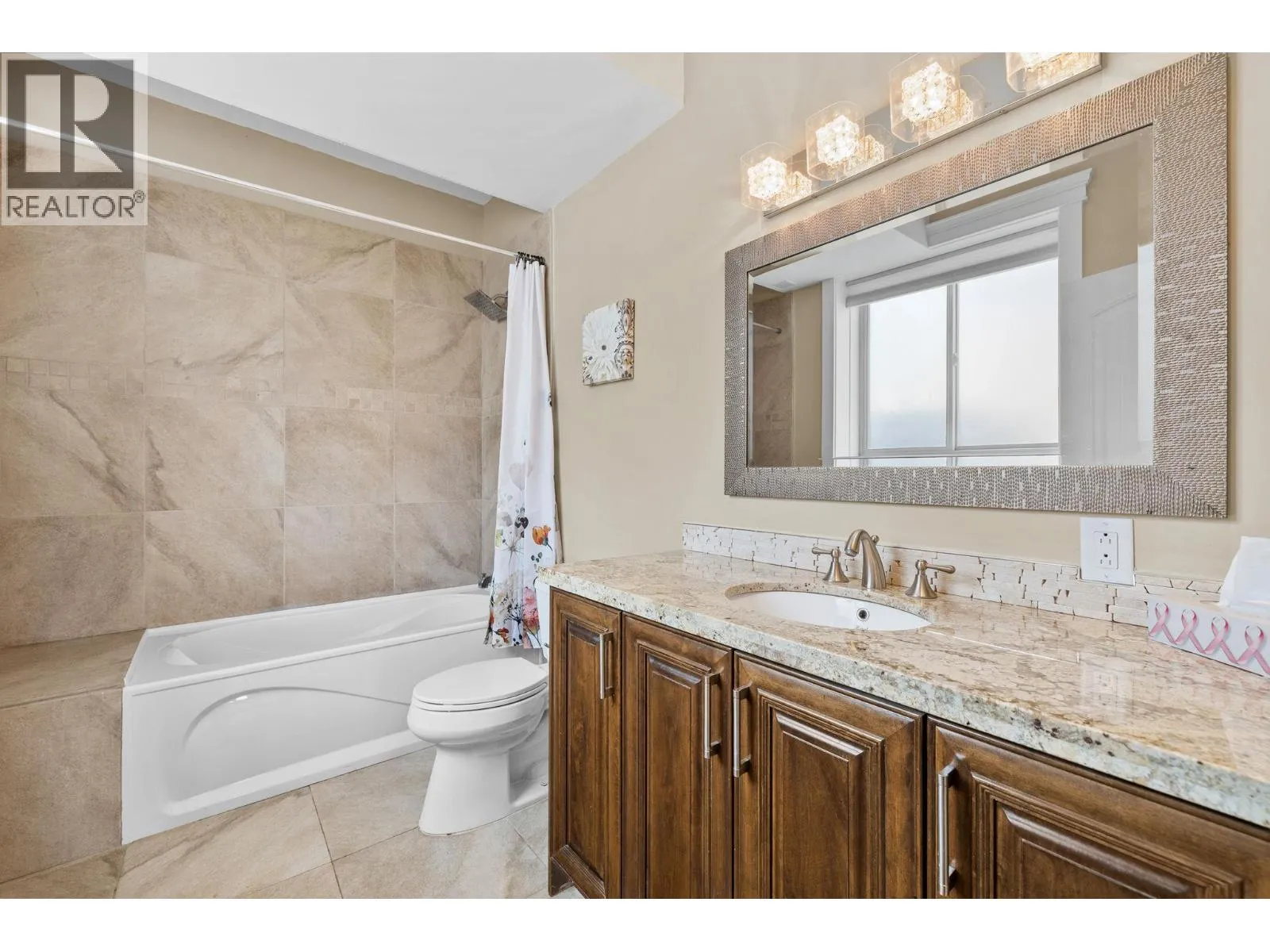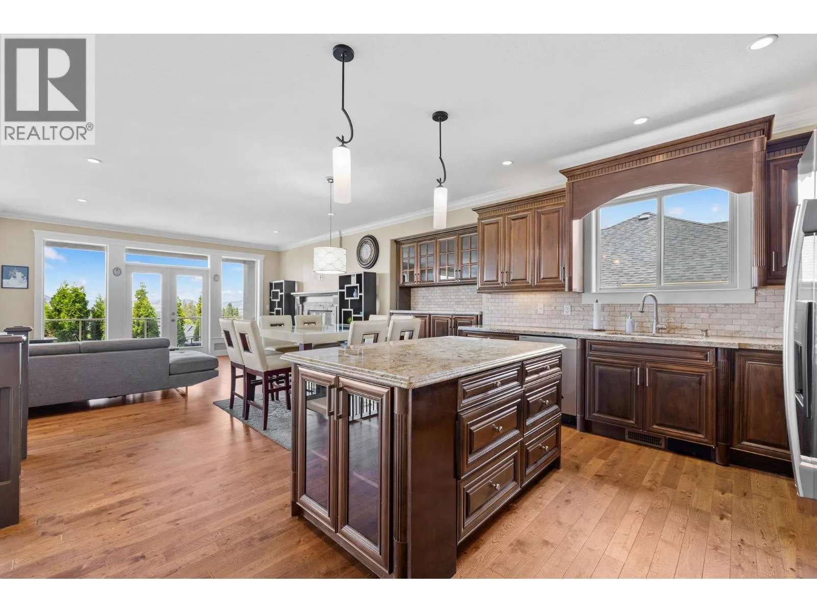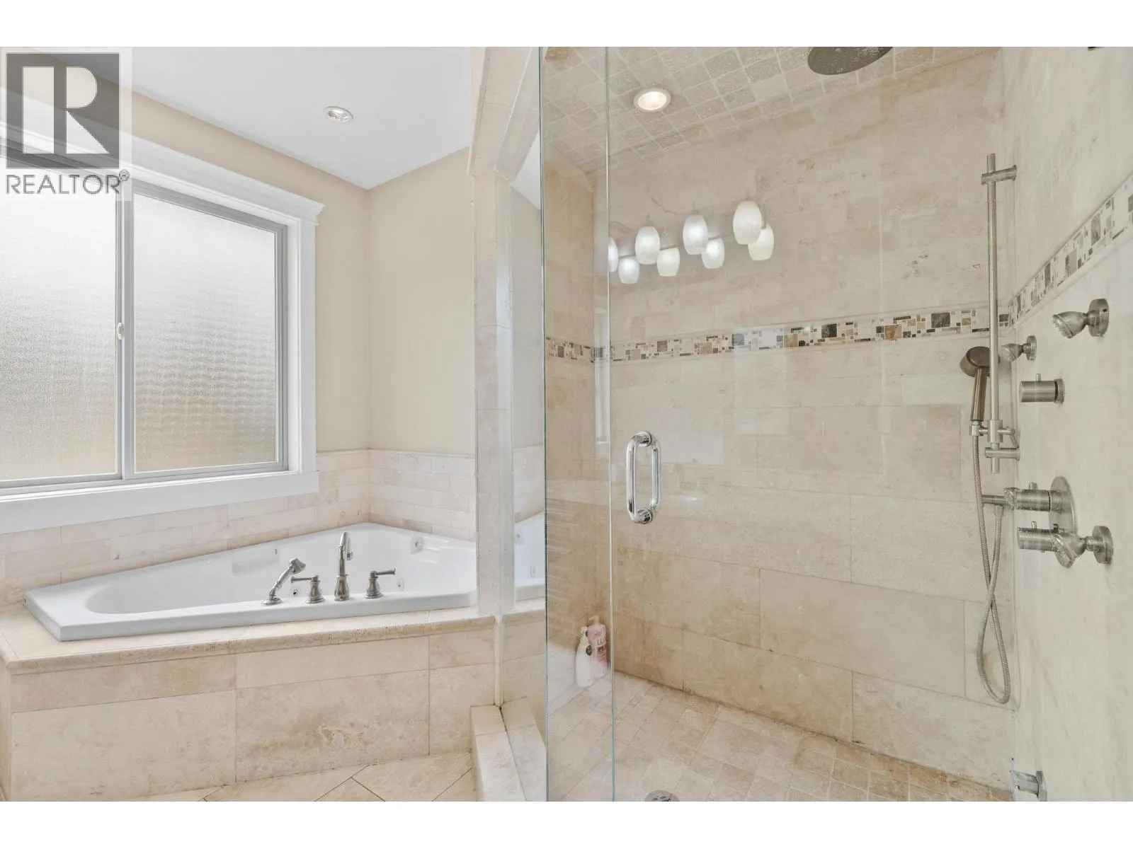 Priced to sell. This beautiful 4-bed, 3.5-bath home with an office and newly added theatre room is priced as one of the lowest in the area offering incredible value, it showcases breathtaking views of the Okanaganâs cityscape, mountains, and lake. Designed for both comfort and style, the modern kitchen features granite countertops, stainless steel appliances, and a large island perfect for gatherings. The open-concept layout flows seamlessly through the dining area to a covered patioâideal for year-round entertaining. The spacious primary master retreat includes a private deck, walk-through closet, and luxurious ensuite with steam shower and jetted tub. The lower level adds versatility with three bedrooms, including a private guest suite with its own ensuite and separate entranceâproviding excellent suite potential for extended family or rental income. The theatre room offers even more flexibility for entertainment, a gym, or office space. Pride of ownership is evident throughout, with the hot water tank, furnace, and yard all professionally maintained. Outside, enjoy two decks, a pergola-covered patio, and meticulously landscaped gardens. A rare combination of location, condition, and unmatched valueâthis home truly wonât last. (id:27476)