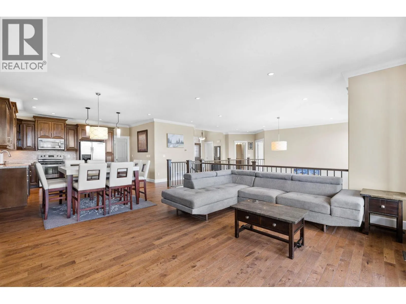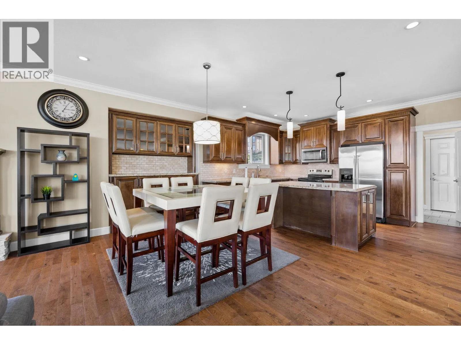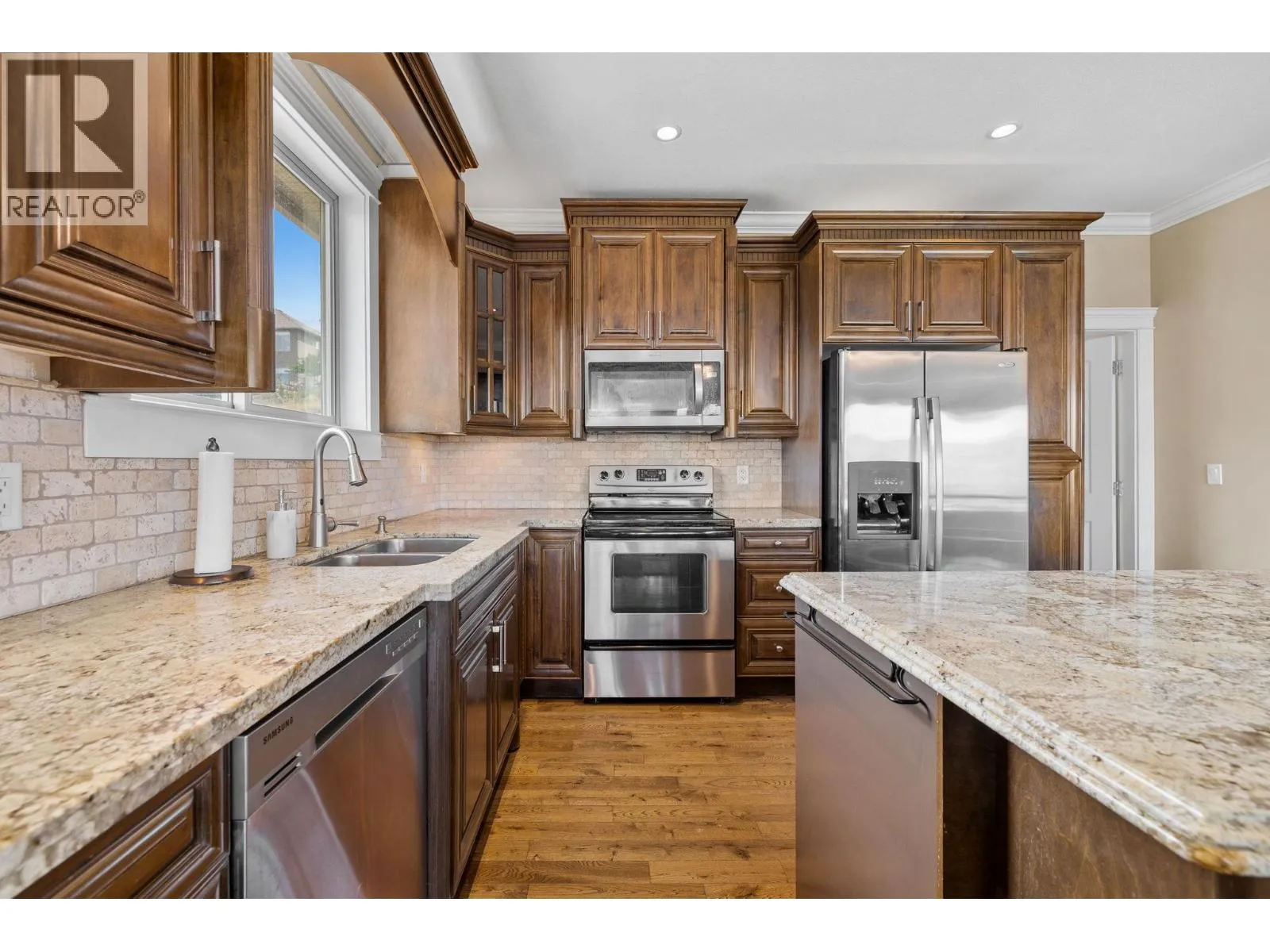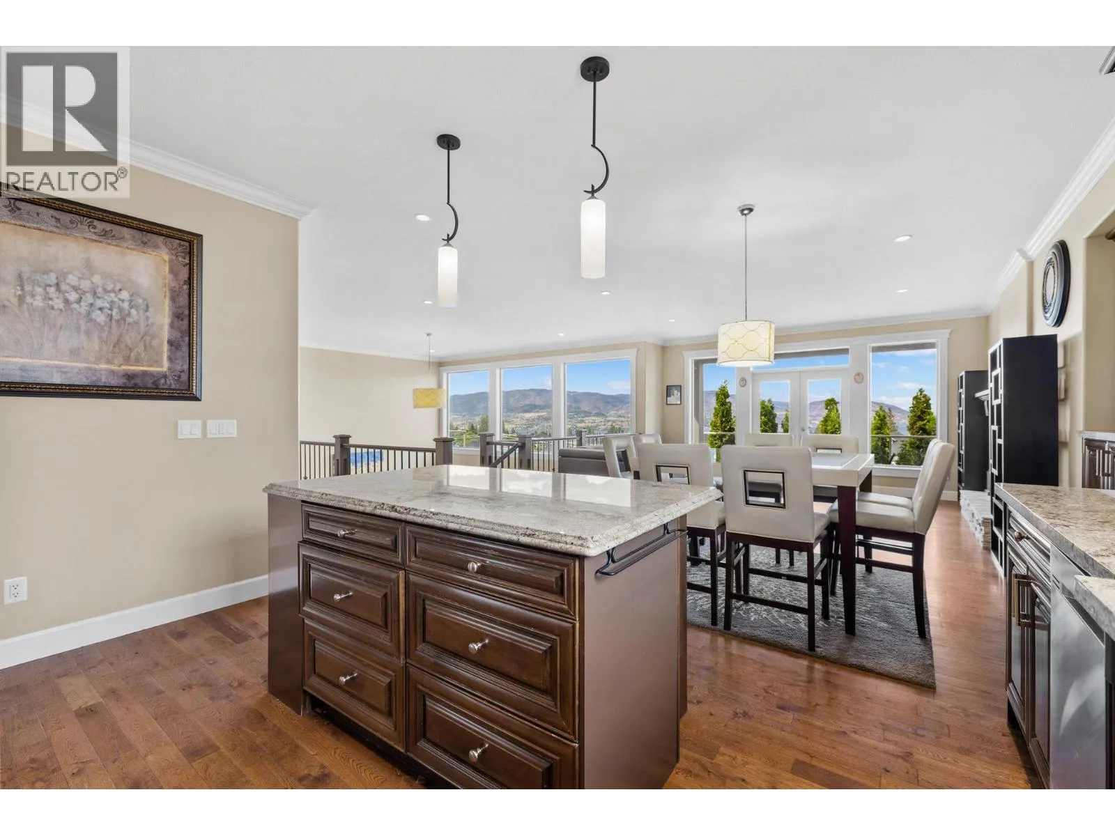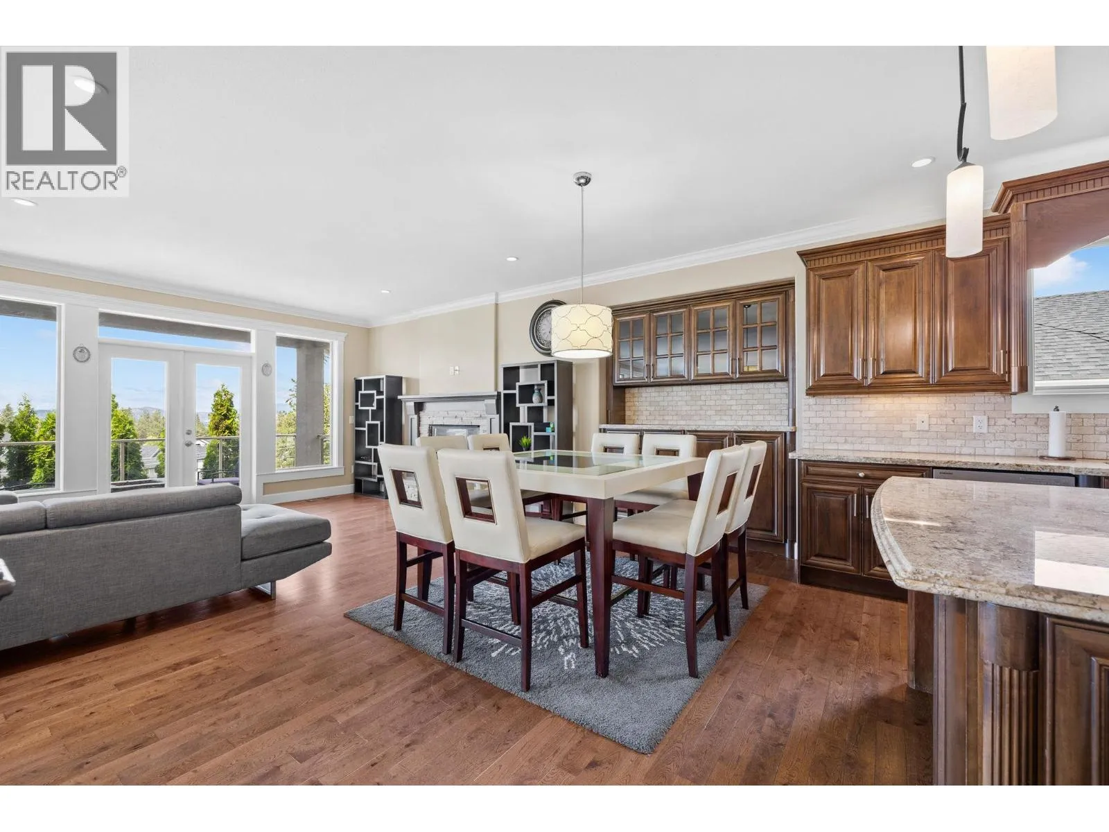 Priced to sell. This beautiful 4-bed, 3.5-bath home with an office and newly added theatre room is priced as one of the lowest in the area offering incredible value, it showcases breathtaking views of the Okanaganâs cityscape, mountains, and lake. Designed for both comfort and style, the modern kitchen features granite countertops, stainless steel appliances, and a large island perfect for gatherings. The open-concept layout flows seamlessly through the dining area to a covered patioâideal for year-round entertaining. The spacious primary master retreat includes a private deck, walk-through closet, and luxurious ensuite with steam shower and jetted tub. The lower level adds versatility with three bedrooms, including a private guest suite with its own ensuite and separate entranceâproviding excellent suite potential for extended family or rental income. The theatre room offers even more flexibility for entertainment, a gym, or office space. Pride of ownership is evident throughout, with the hot water tank, furnace, and yard all professionally maintained. Outside, enjoy two decks, a pergola-covered patio, and meticulously landscaped gardens. A rare combination of location, condition, and unmatched valueâthis home truly wonât last. (id:27476)