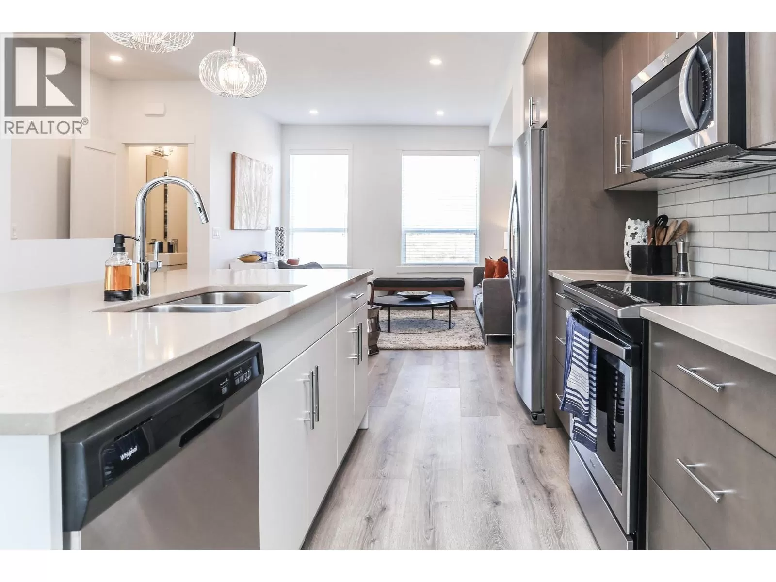 MOVE-IN READY! (Photos feature the Sigma, light, colour scheme; the unit for sale is the Omega, white, colour scheme) This is a standout opportunity, especially for first-time buyers, thanks to an unbeatable location: just a short walk to UBCO, five minutes to the airport and shopping, and only five minutes to the award-winning Okanagan Rail Trail that links downtown and beyond. Inside, every home is packed with modern upgrades: stainless steel appliances, full-size laundry, central A/C with gas-forced air heat, window coverings, and a two-car garage. Whether youâre moving in yourself, renting out, or investing for your kids while they attend UBCO, this property checks every box. The Delta II floor plan at Academy Ridge combines sleek style with everyday convenience, offering 3 bedrooms, 2.5 bathrooms, soaring 9-ft ceilings, and premium finishes. Low strata fees and pet-friendly bylaws make it ideal for students, professionals, or investors alike. Donât wait, schedule your showing today! (Photos shown are of a similar unit.) (id:27476)