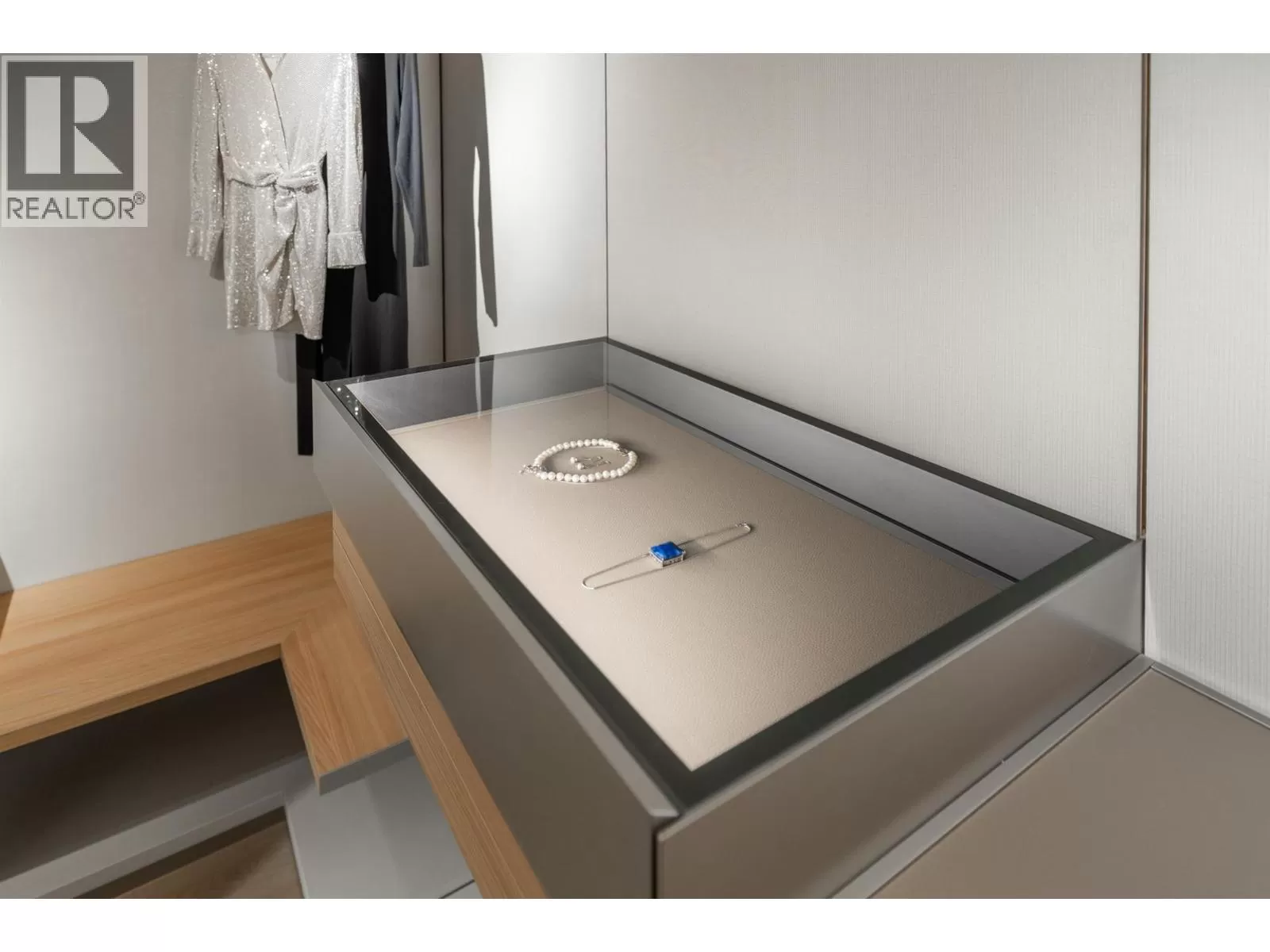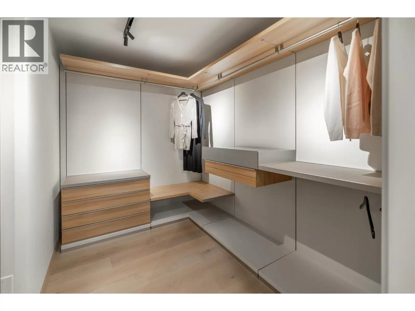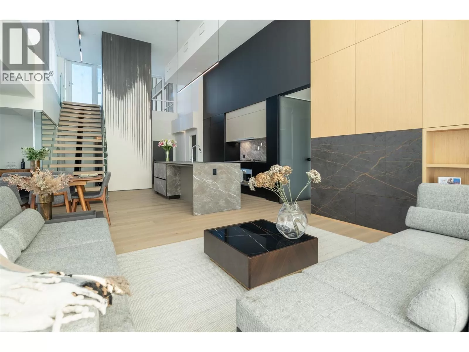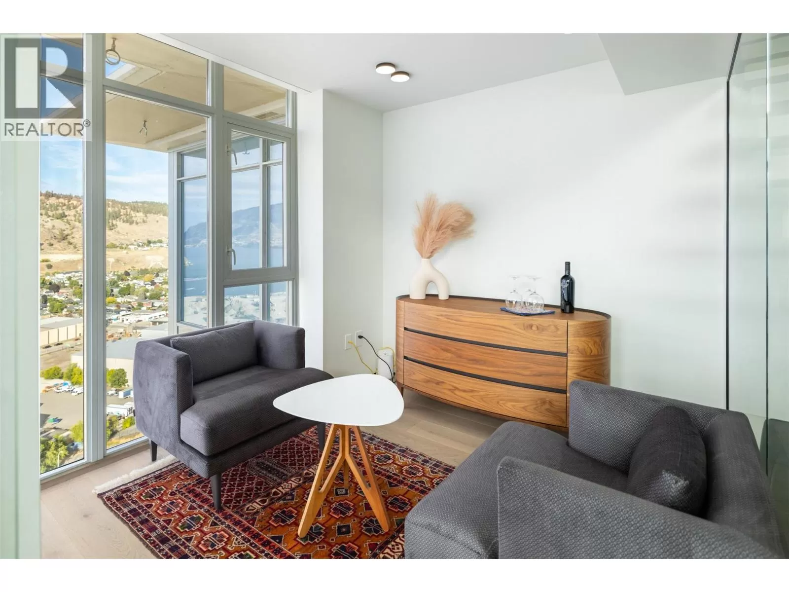 Welcome to Penthouse 1 at Waterscapes, an exceptional residence offering panoramic views of downtown Kelowna, Okanagan Lake, & the surrounding mountains. This fully renovated and redesigned penthouse is stunning & boasts a modern, sophisticated living space & an additional 1,400 sq ft rooftop terrace for outdoor living. The interior was designed with high-end finishes: hydronic in-floor heating throughout, engineered hardwood floors, porcelain countertops, Magnetic track lighting w/ moveable light components, & Integrated LED strips throughout. The open-concept layout features 17-foot ceilings, expansive windows, & a floating LED-lit staircase with glass railings leading to the rooftop patio. The Poliform kitchen is a culinary masterpiece with Gaggenau appliances (a gas cooktop, soft-touch fridge). Enjoy sensational lake views from the primary retreat. The spa-inspired en suite features Dornbracht fixtures and a spacious rain shower with a fully customized Poliform walk-in closet. One addâl bed w/ an en suite and a glass-enclosed office complete the space. SMART home technology: Ecobee thermostat, motorized solar shades, Lutron lighting. The private rooftop terrace features 3 gas lines, power outlets, a waterline, and plans for an outdoor kitchen, pergola, and fire pit. W 2 prime underground parking stalls, 3 storage lockers, and access to Waterscapesâ Cascade Lounge amenities, including a pool, gym, and sauna, this penthouse combines luxury, comfort, and community living. (id:27476)