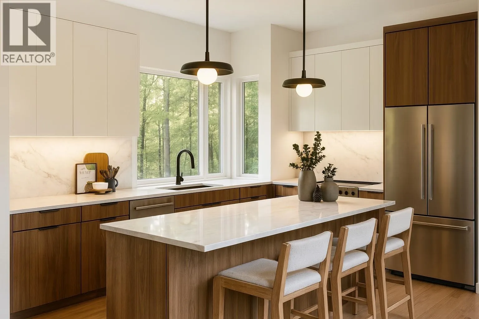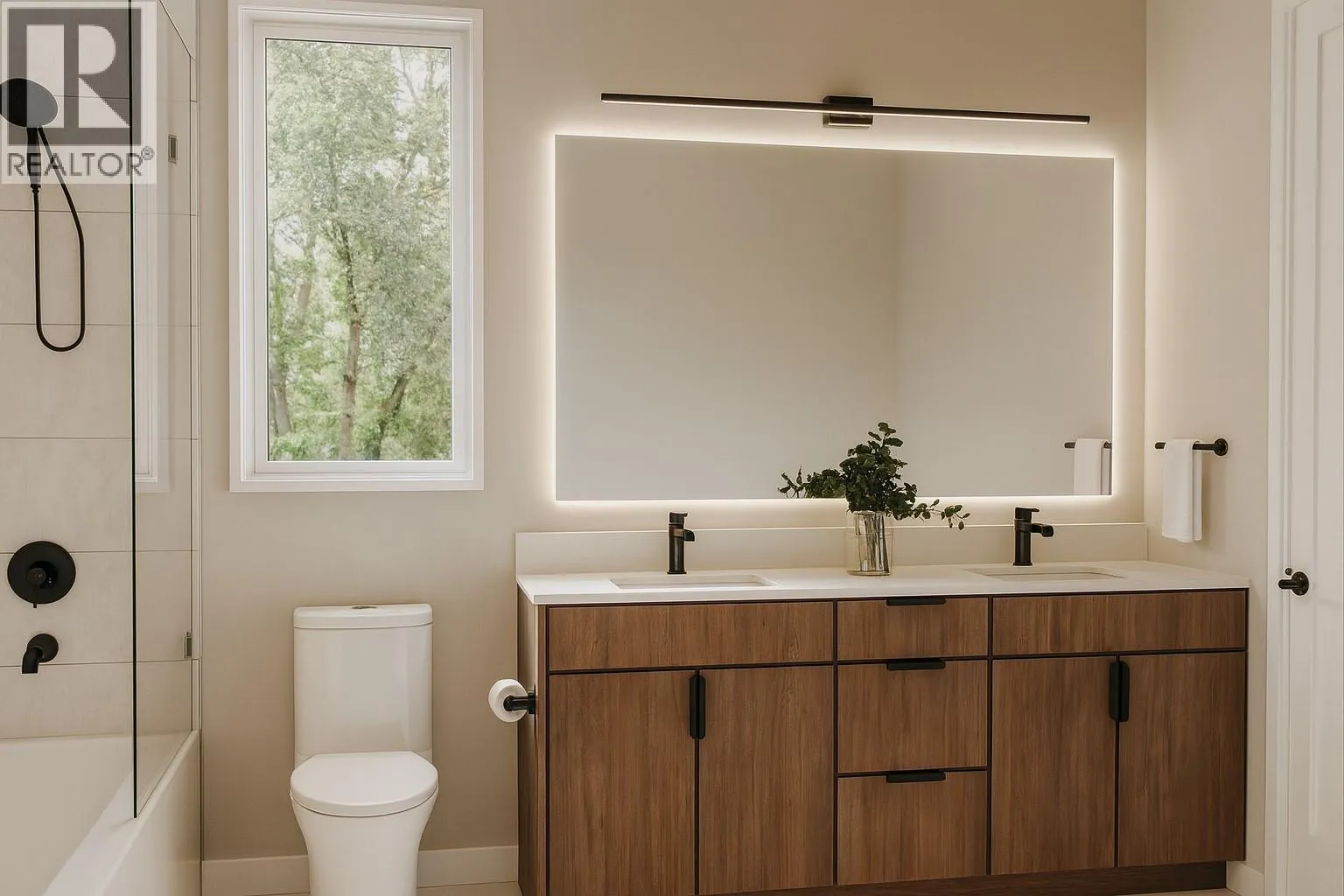 Welcome to Juniper Grove at McKinley Beach, single-family homes surrounding Arrowroot Pond in the Hilltown neighborhood. Lot 9 is a thoughtfully designed 3-bedroom plus den, 4-bath residence highlighted by two primary bedrooms, each with its own ensuite, creating an ideal layout for multi-generational living, hosting guests, or offering additional privacy and flexibility for todayâs lifestyle. The open-concept design features a modern kitchen, a welcoming fireplace, and a wrap-around deck with views of the natural surroundings. With ample parking and stylish mid-century modern finishes, the home combines everyday functionality with contemporary elegance. Juniper Grove offers the best of the McKinley Beach lifestyle, with easy access to trails, playgrounds, and the beach, along with the nearby amenity centre featuring a pool, hot tub, gym, and yoga room. The neighborhood is connected, family-friendly, and designed for both relaxation and recreation, while still being just minutes from Kelowna International Airport, UBCO, and downtown Kelowna. Move-in is scheduled for January/February 2026, making this an exceptional opportunity to own in one of Kelownaâs most sought-after lakefront communities. (id:27476)